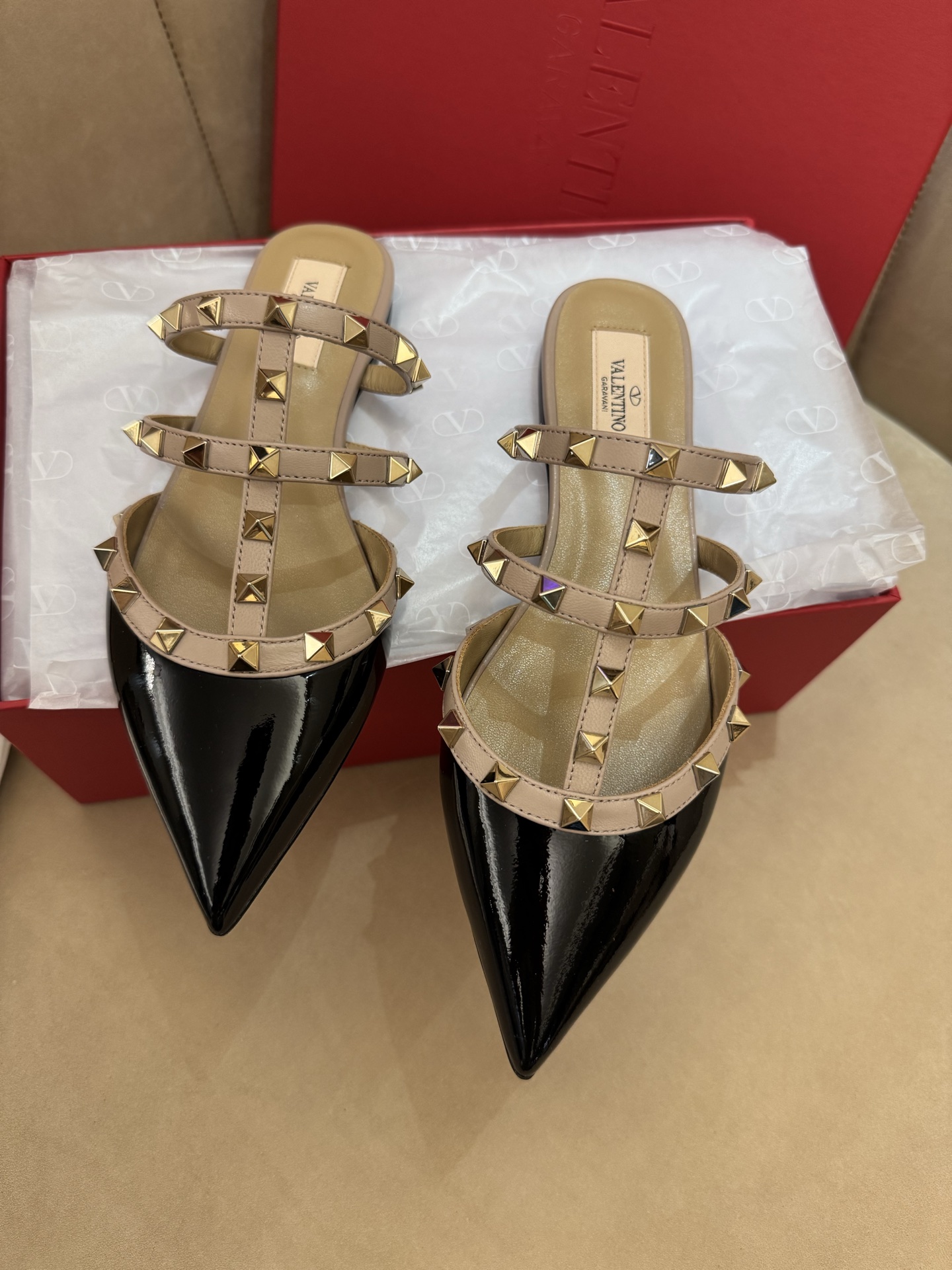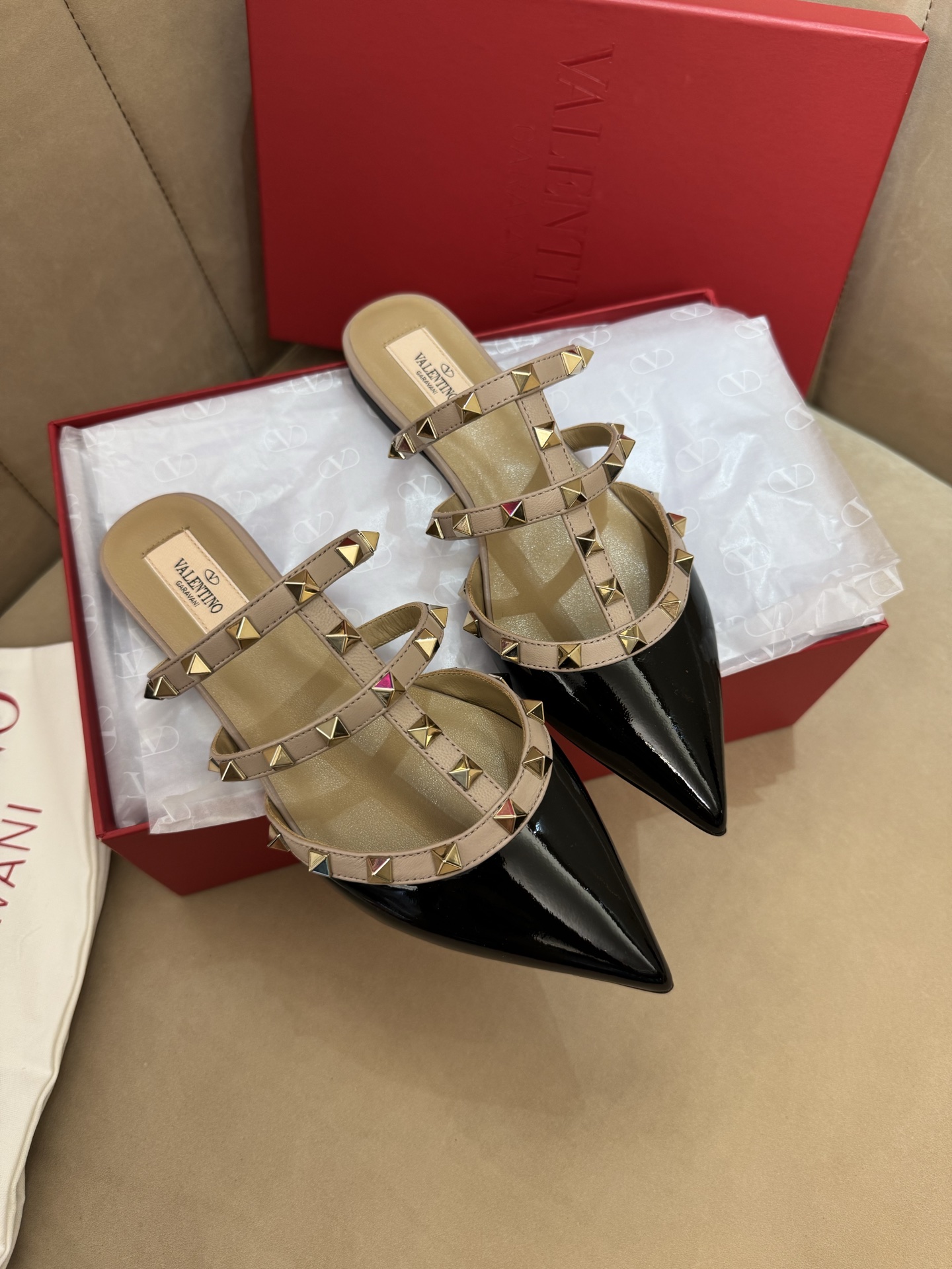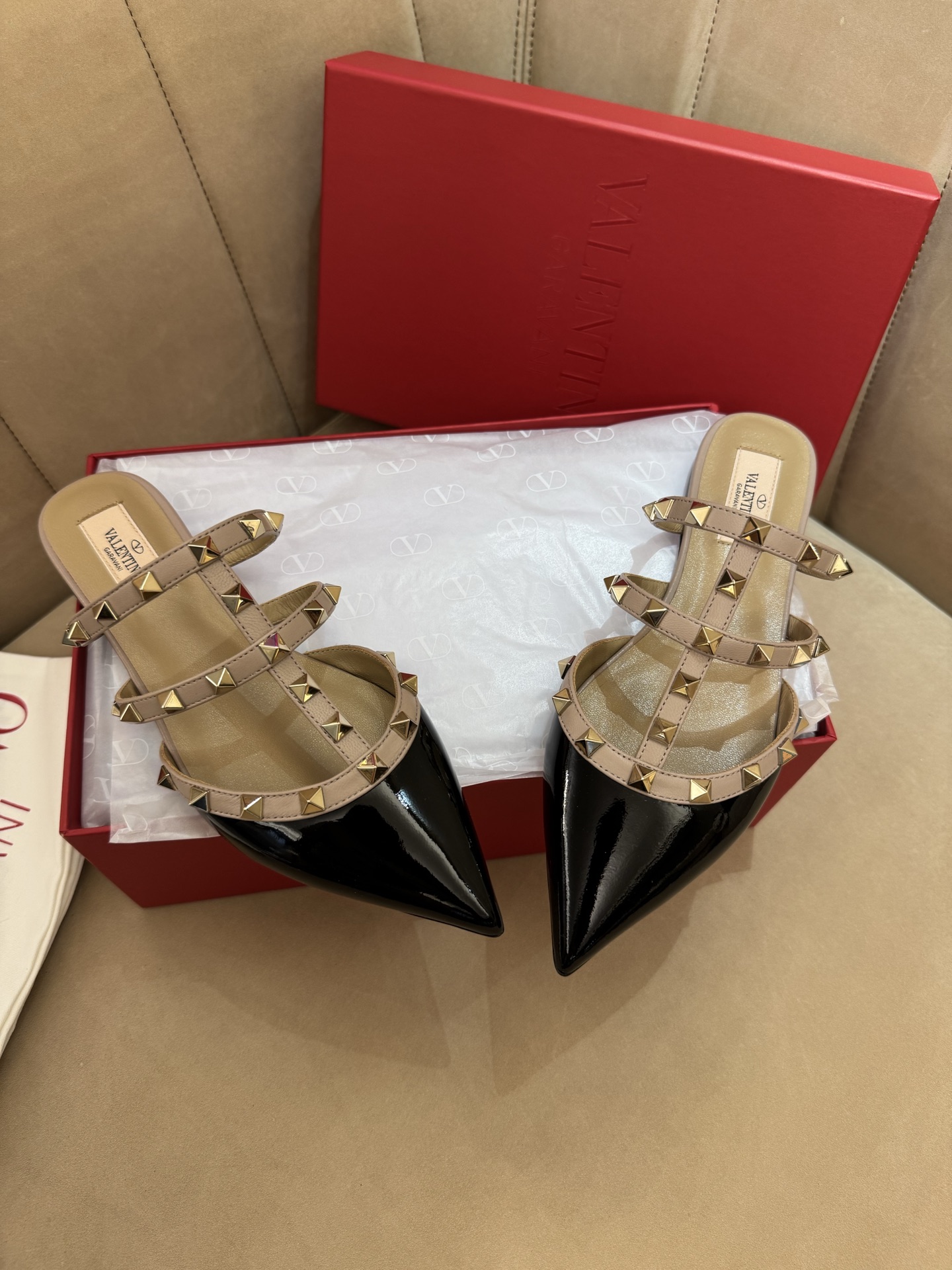這款鞋子是AAAAA 1:1 質量(非常棒). 使用了和原版一模一樣的材料. 商標部分也保持了和瓦倫蒂諾/Valentino一樣. 圖片拍攝是實物鞋子拍攝, 您所收到的實物保證和我們圖片一模一樣.