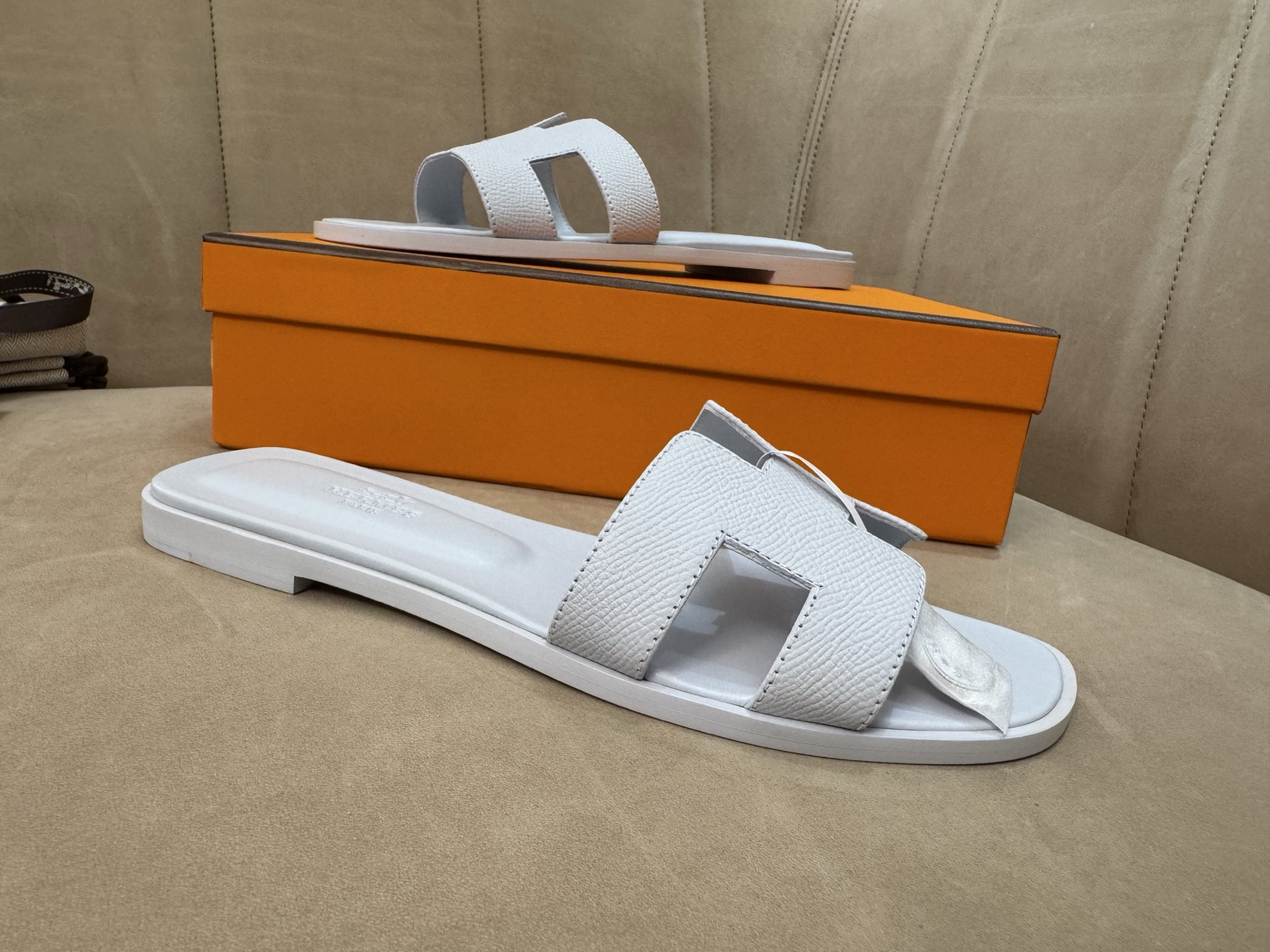 這款鞋子是AAAAA 1:1 質量(非常棒). 使用了和原版一模一樣的材料. 商標部分也保持了和愛馬仕/Hermes一樣. 圖片拍攝是實物鞋子拍攝, 您所收到的實物保證和我們圖片一模一樣.