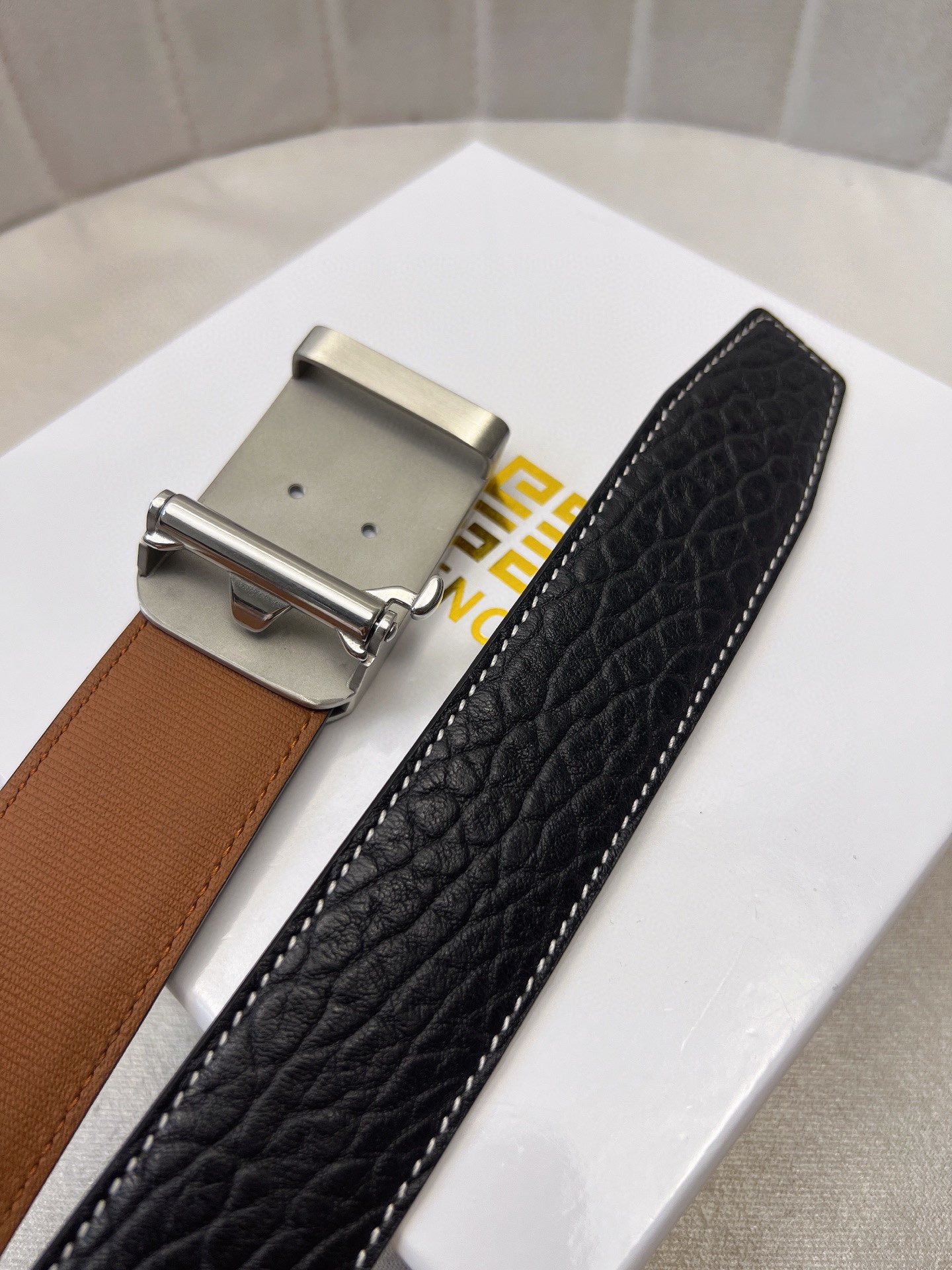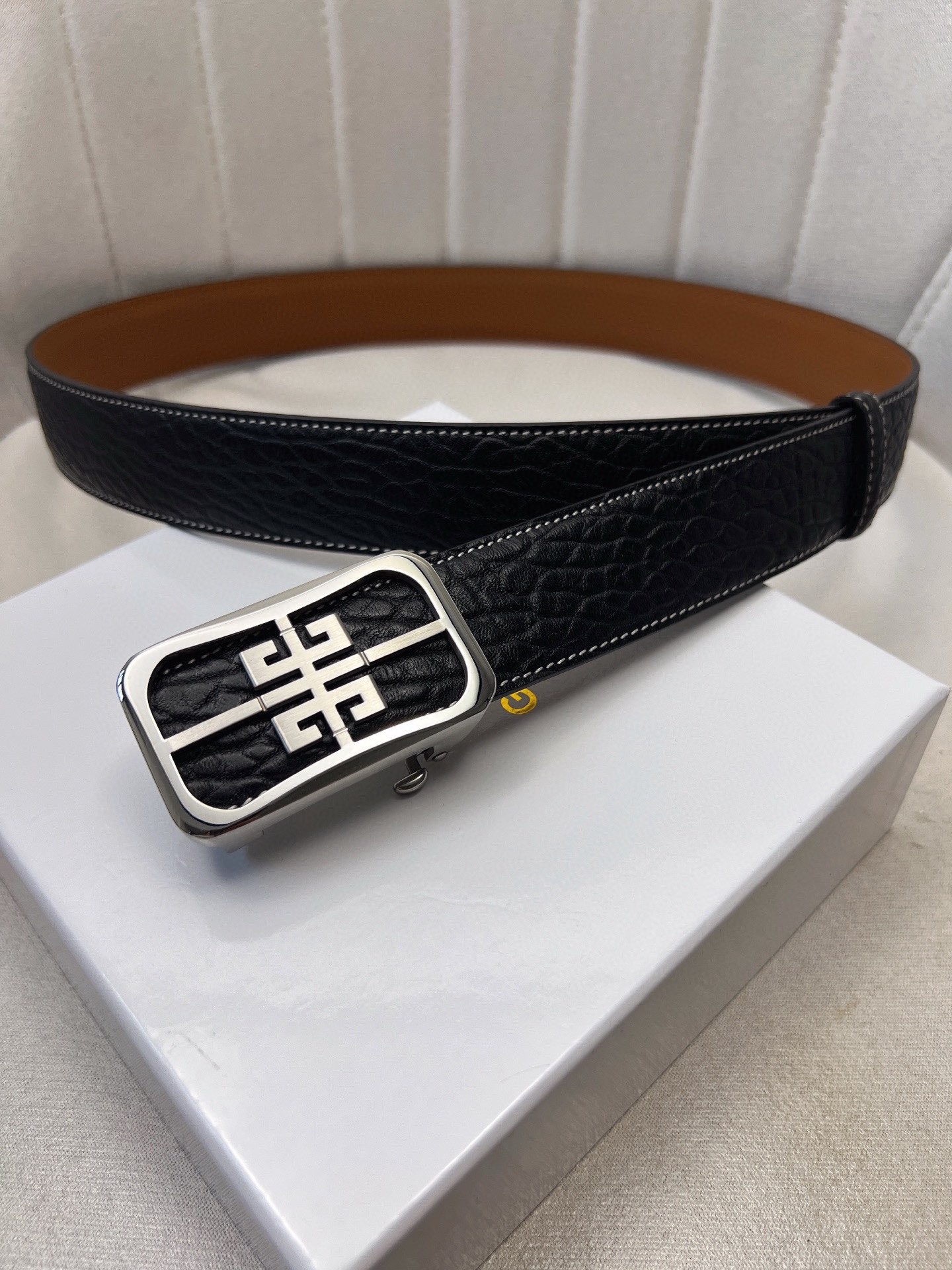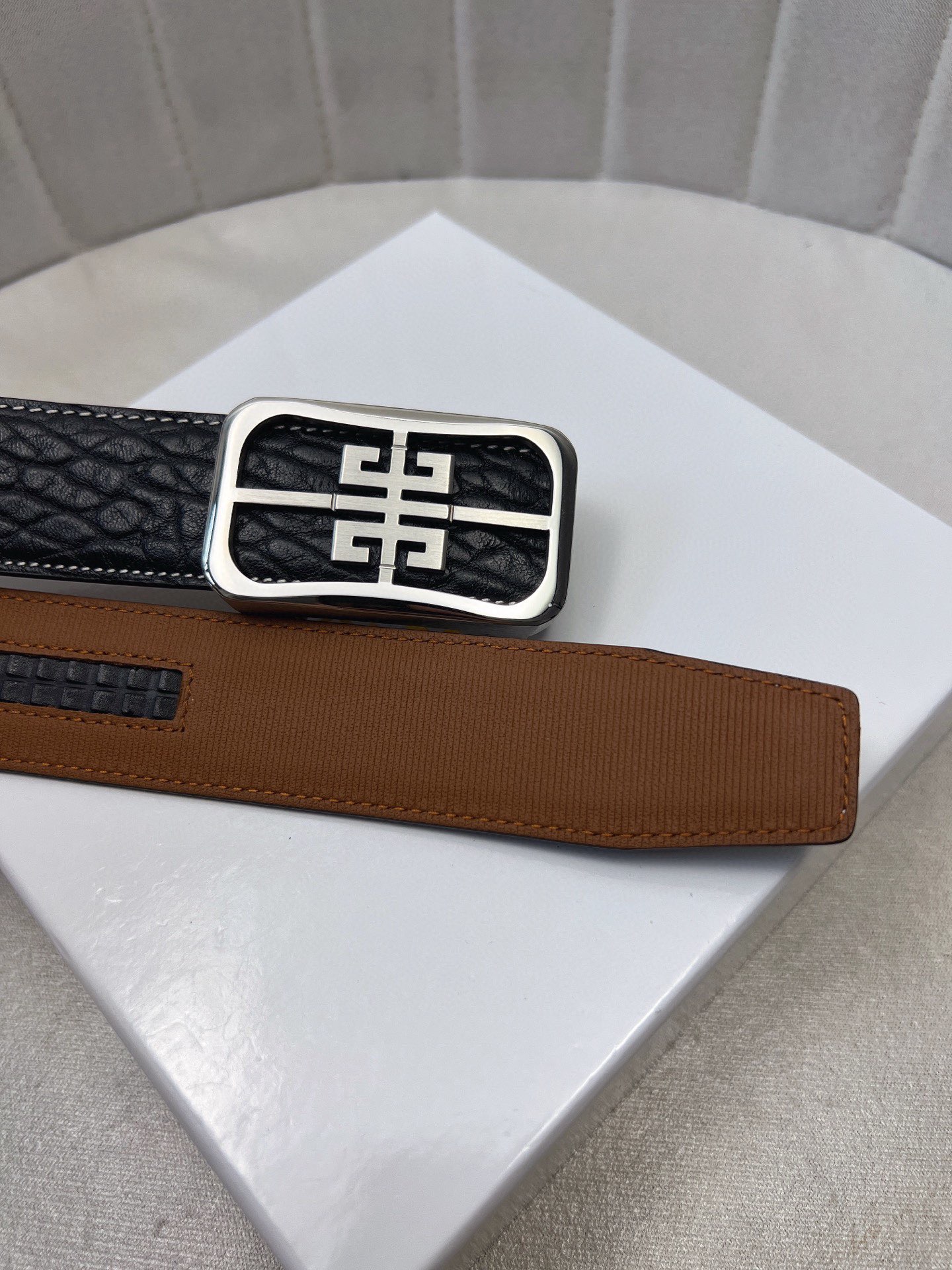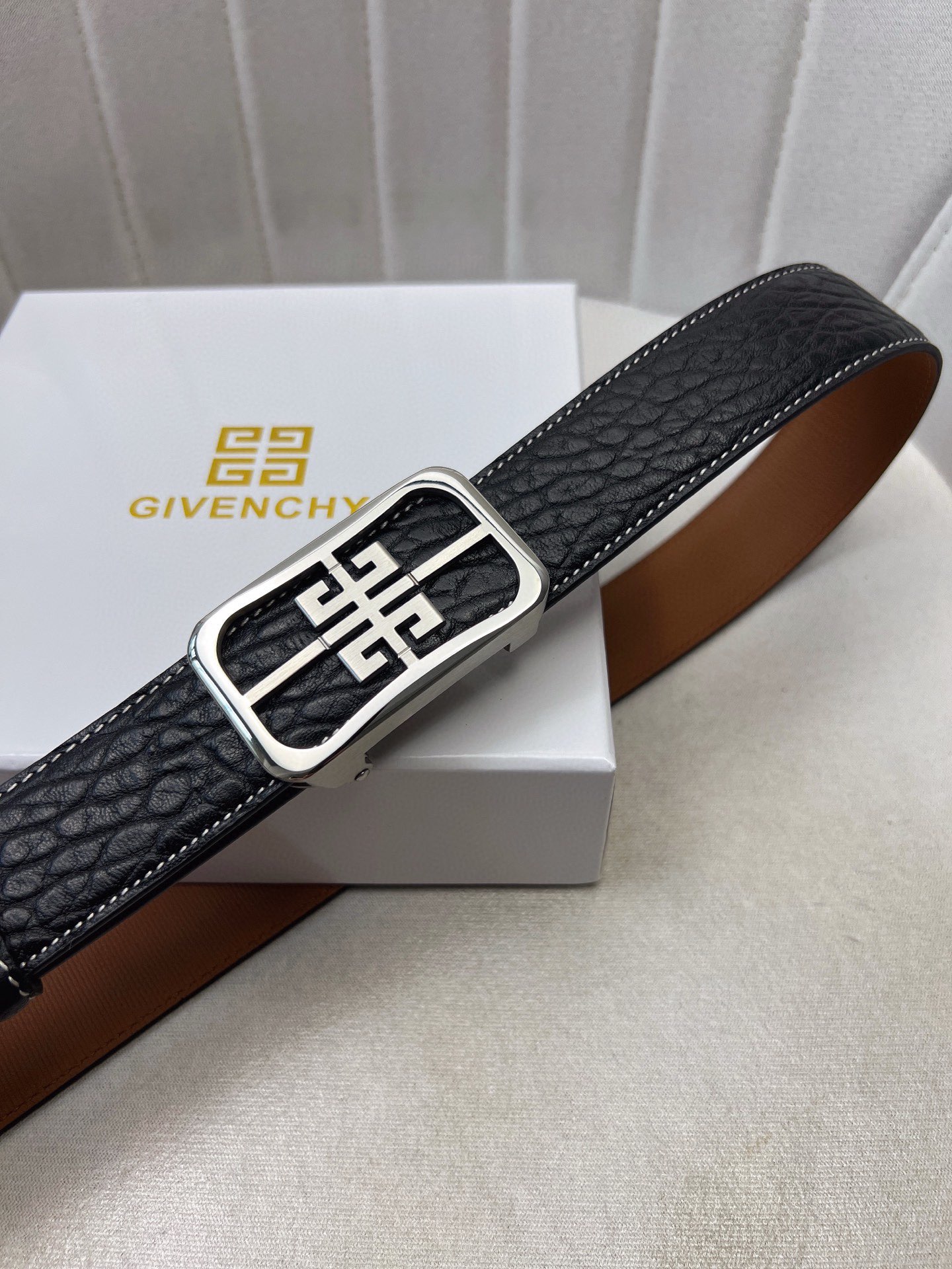 這款皮帶是AAAAA 1:1 質量(非常棒). 使用了和原版一模一樣的材料. 商標部分也保持了和紀梵希/Givenchy一樣. 圖片拍攝是實物皮帶拍攝, 您所收到的實物保證和我們圖片一模一樣.