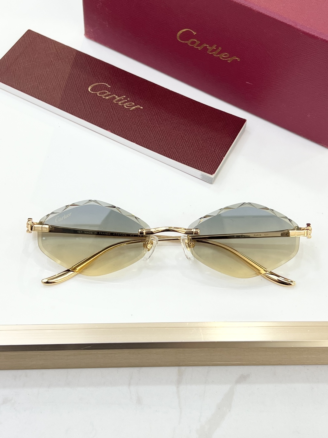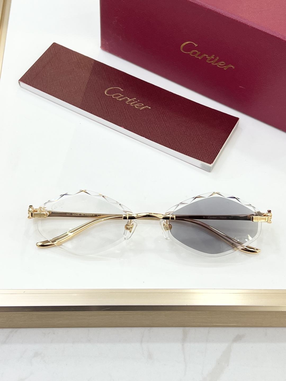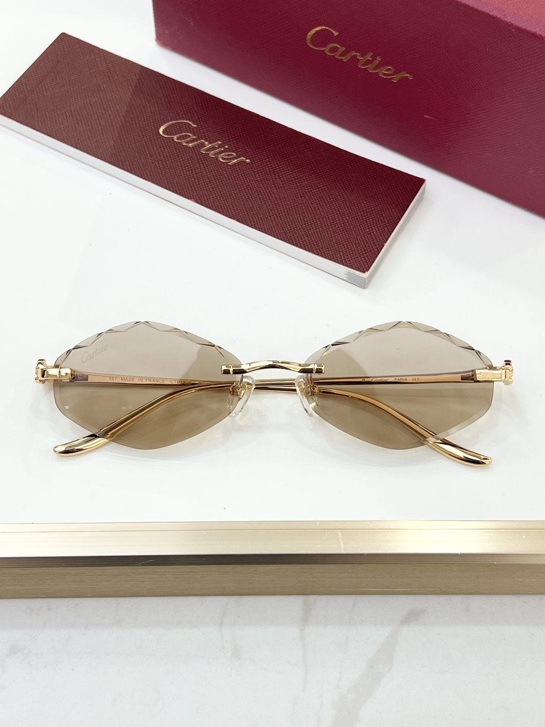 這款太陽眼鏡是AAAAA 1:1 質量(非常棒). 使用了和原版一模一樣的材料. 商標部分也保持了和卡地亞/Cartier一樣. 圖片拍攝是實物太陽眼鏡拍攝, 您所收到的實物保證和我們圖片一模一樣.