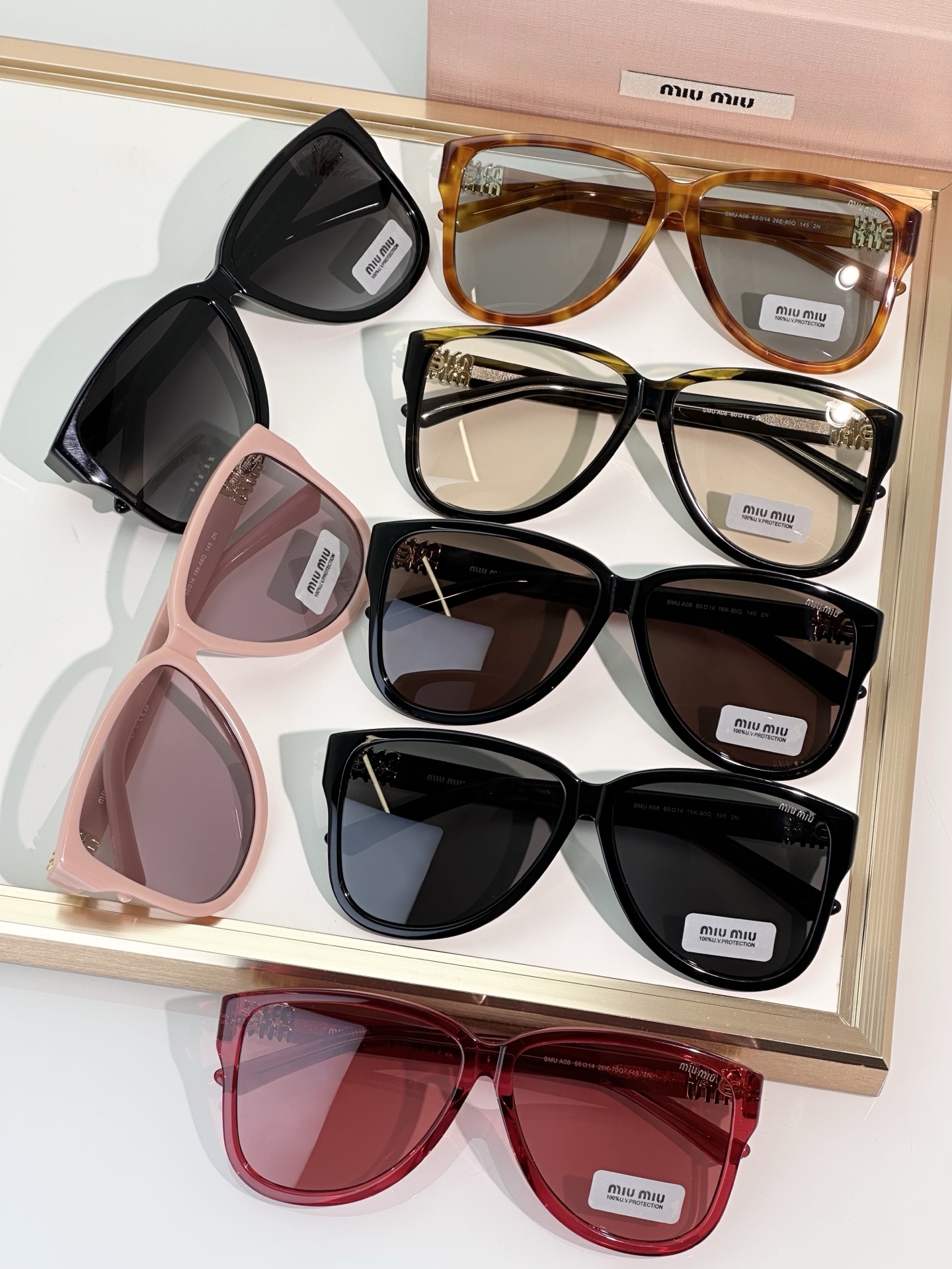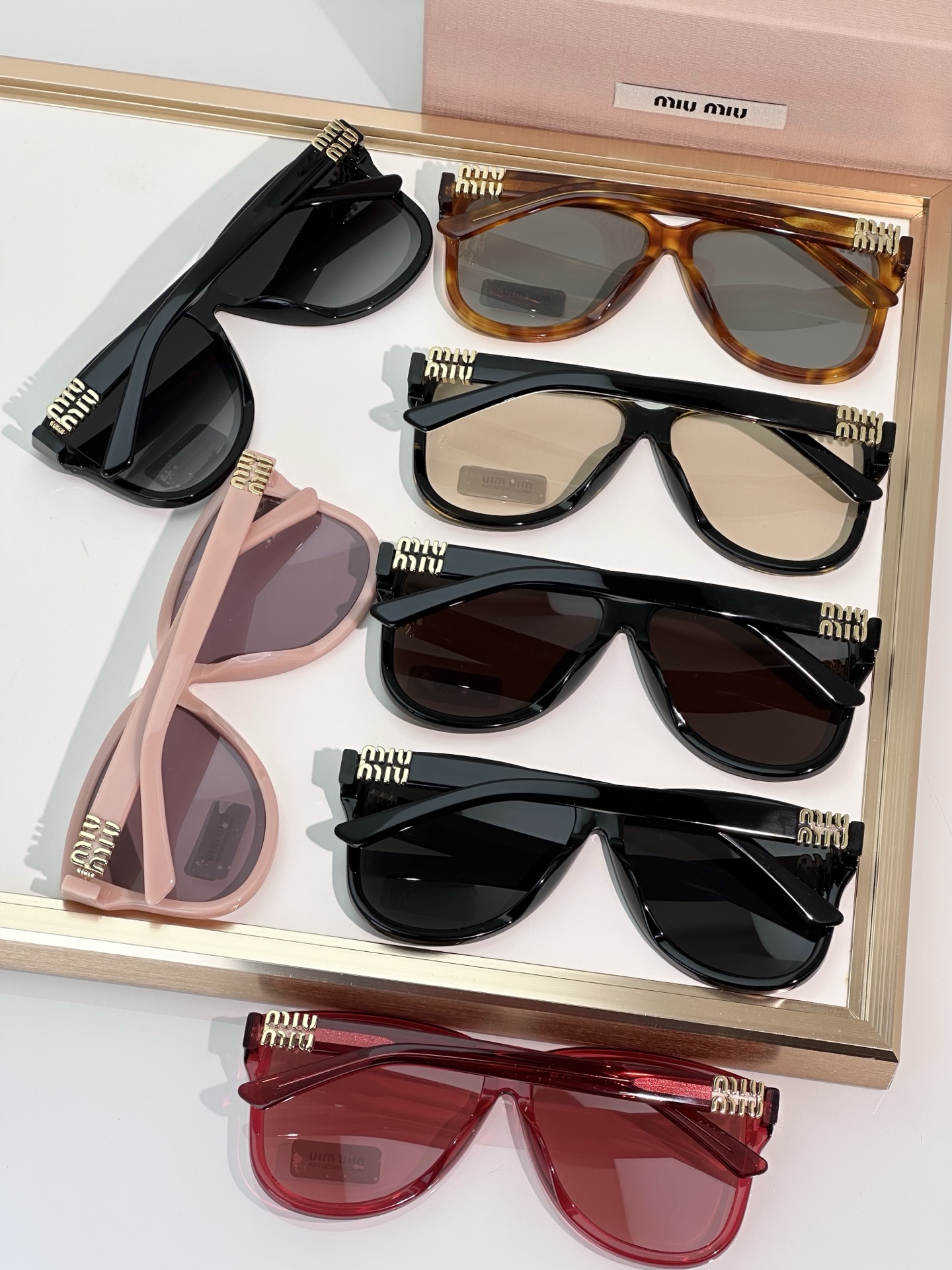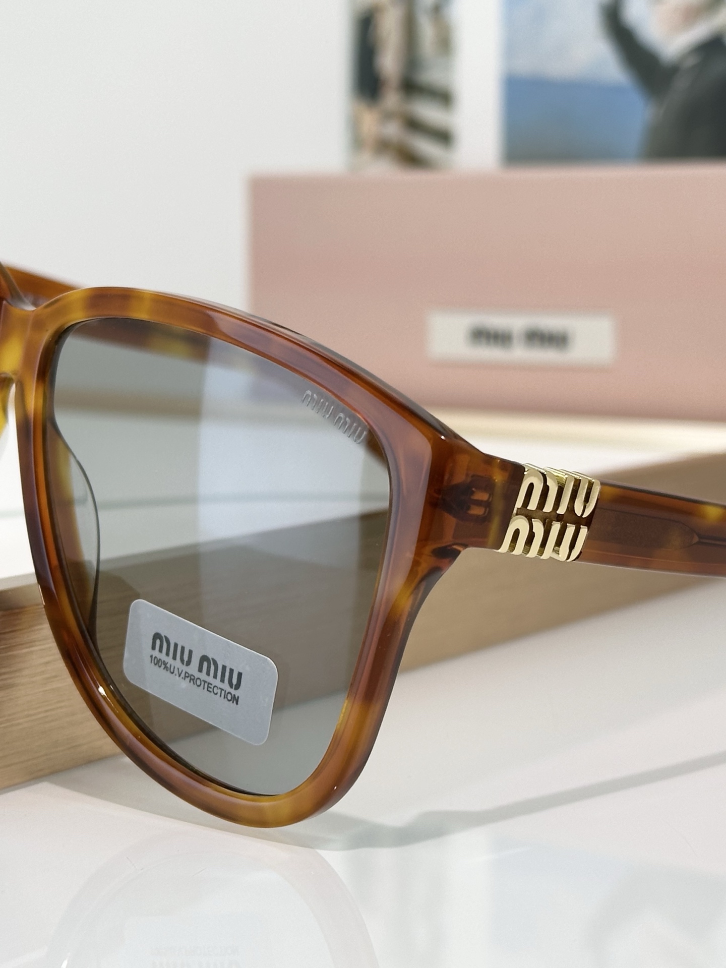 這款太陽眼鏡是AAAAA 1:1 質量(非常棒). 使用了和原版一模一樣的材料. 商標部分也保持了和繆繆/Miu Miu一樣. 圖片拍攝是實物太陽眼鏡拍攝, 您所收到的實物保證和我們圖片一模一樣.