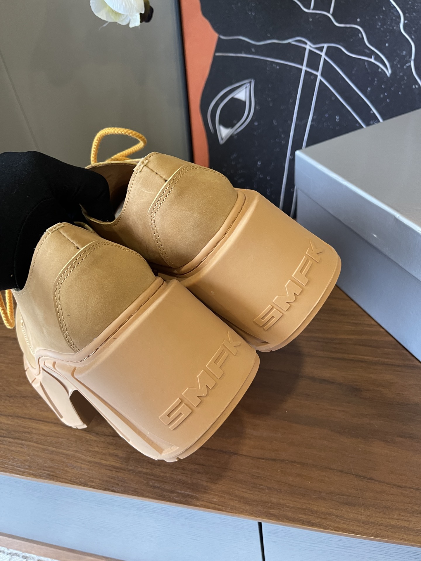 這款鞋子是AAAAA 1:1 質量(非常棒). 使用了和原版一模一樣的材料. 商標部分也保持了和SMFK一樣. 圖片拍攝是實物鞋子拍攝, 您所收到的實物保證和我們圖片一模一樣.