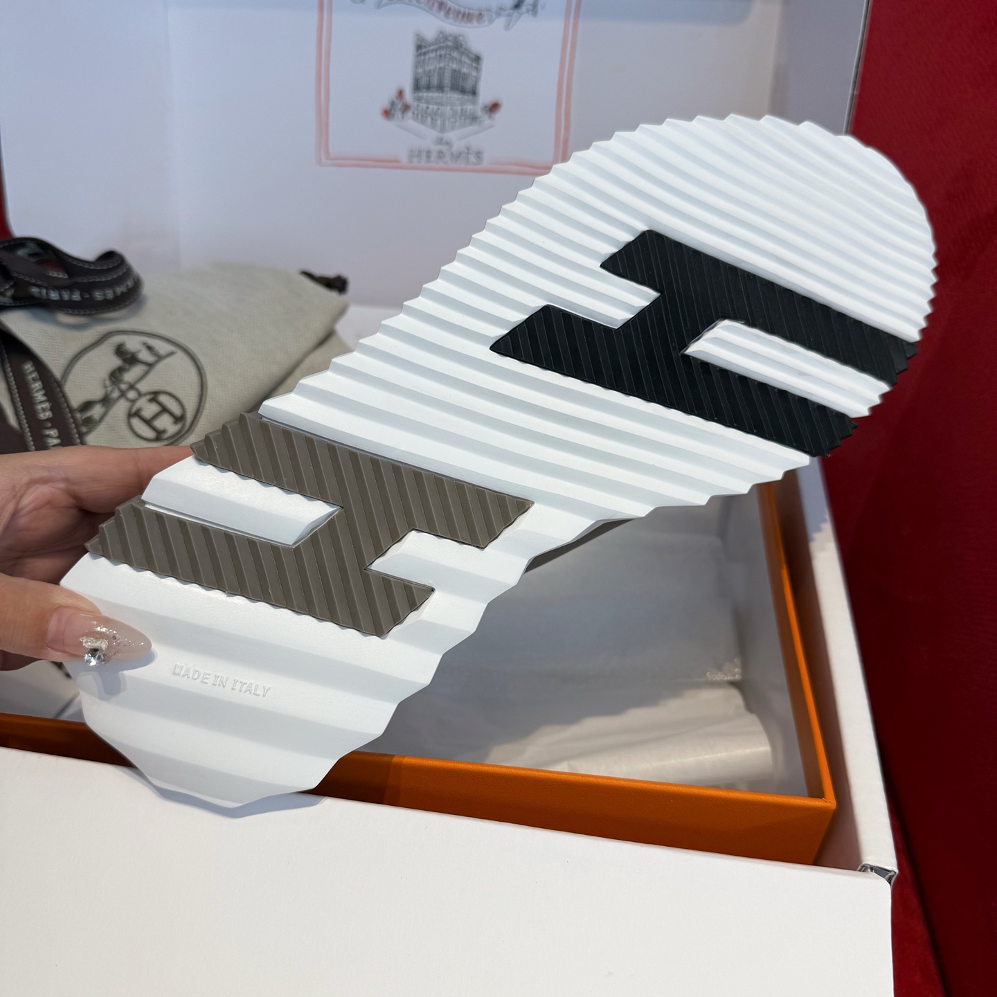 這款鞋子是AAAAA 1:1 質量(非常棒). 使用了和原版一模一樣的材料. 商標部分也保持了和愛馬仕/Hermes一樣. 圖片拍攝是實物鞋子拍攝, 您所收到的實物保證和我們圖片一模一樣.