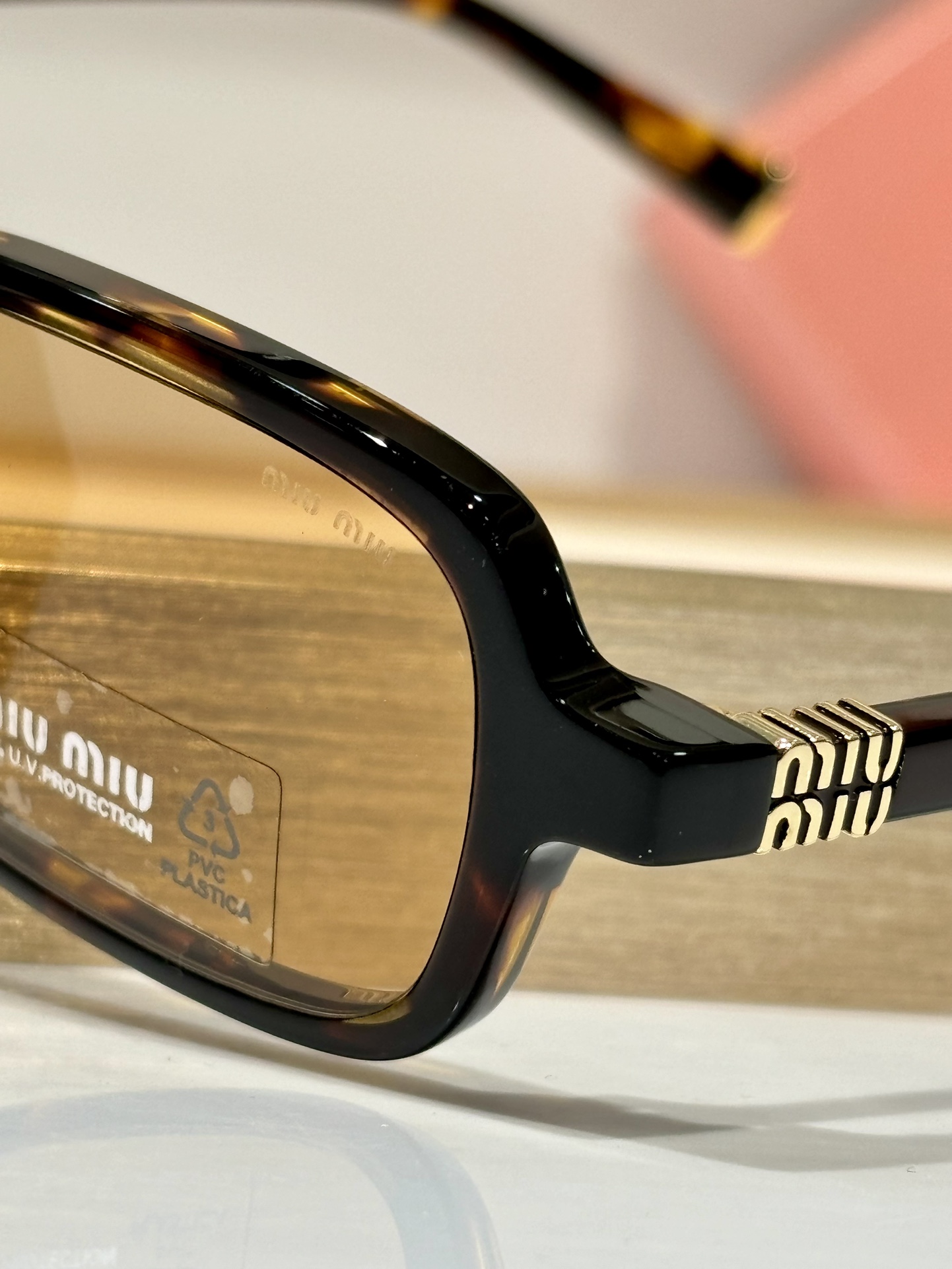 這款太陽眼鏡是AAAAA 1:1 質量(非常棒). 使用了和原版一模一樣的材料. 商標部分也保持了和繆繆/Miu Miu一樣. 圖片拍攝是實物太陽眼鏡拍攝, 您所收到的實物保證和我們圖片一模一樣.