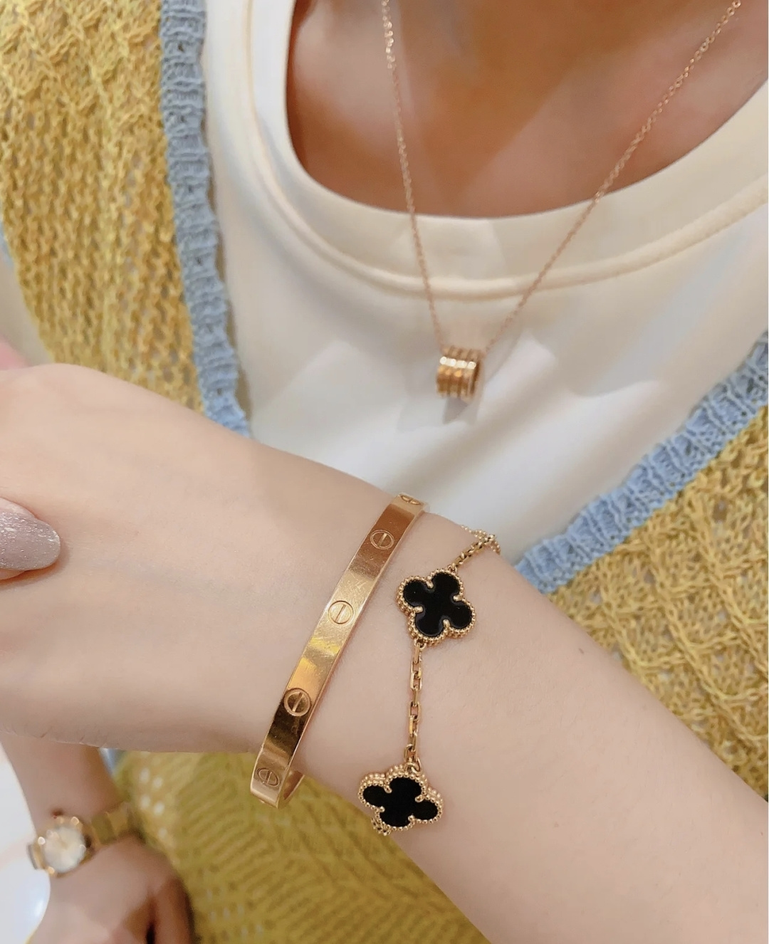 這款首飾是AAAAA 1:1 質量(非常棒). 使用了和原版一模一樣的材料. 商標部分也保持了和一樣. 圖片拍攝是實物首飾拍攝, 您所收到的實物保證和我們圖片一模一樣.