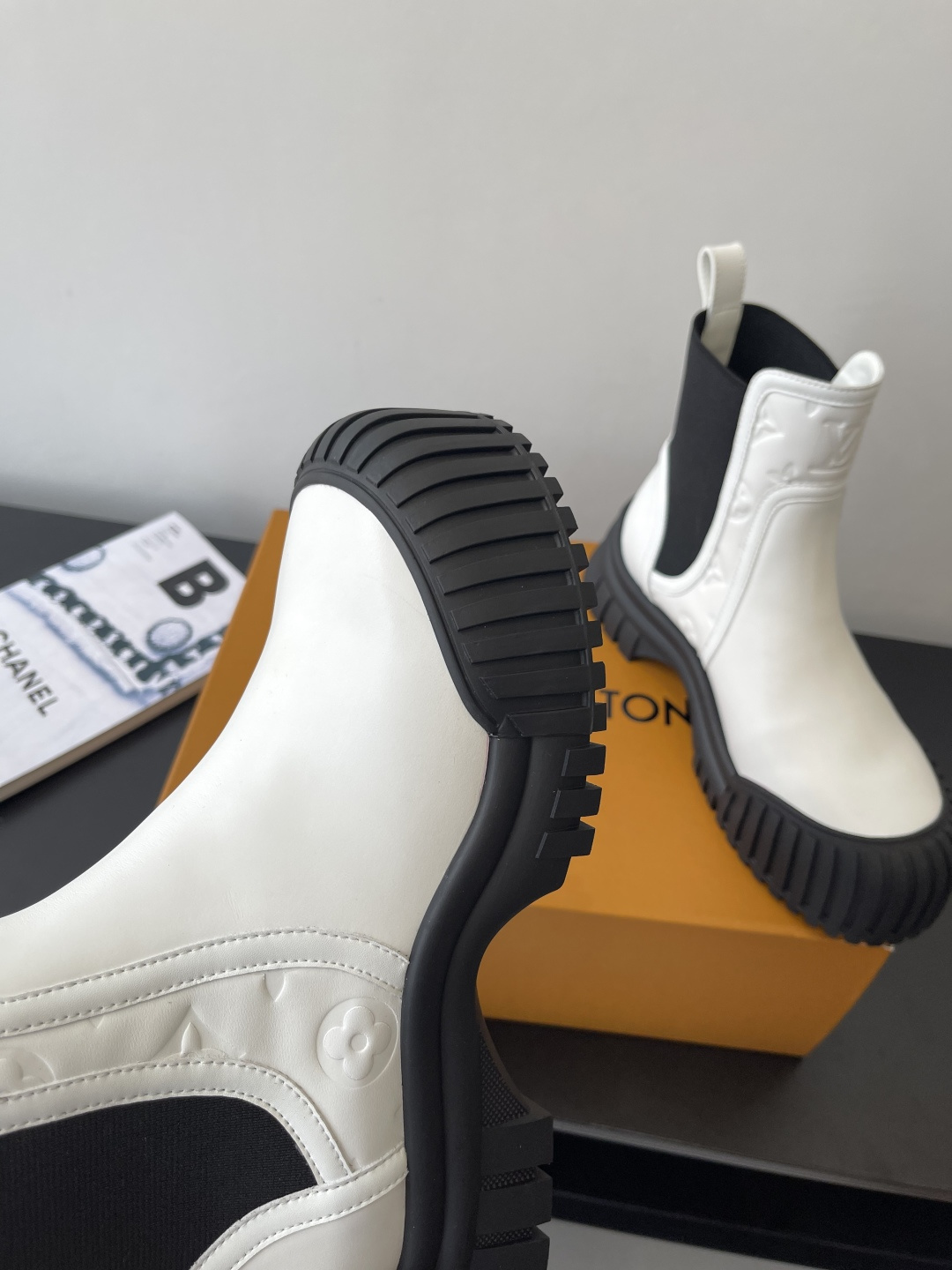 這款鞋子是AAAAA 1:1 質量(非常棒). 使用了和原版一模一樣的材料. 商標部分也保持了和路易威登/Louis Vuitton一樣. 圖片拍攝是實物鞋子拍攝, 您所收到的實物保證和我們圖片一模一樣.