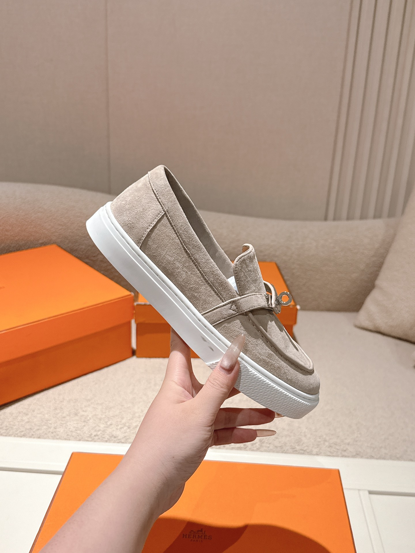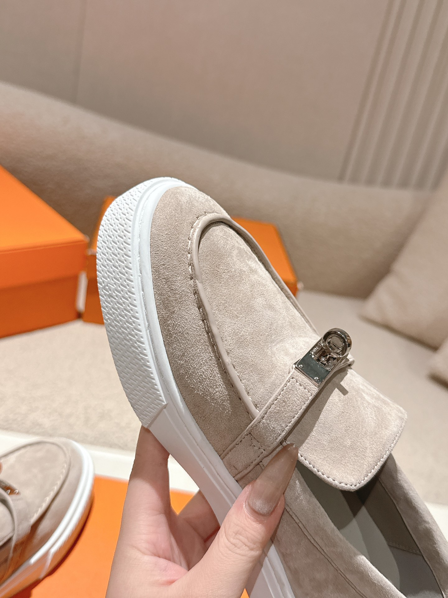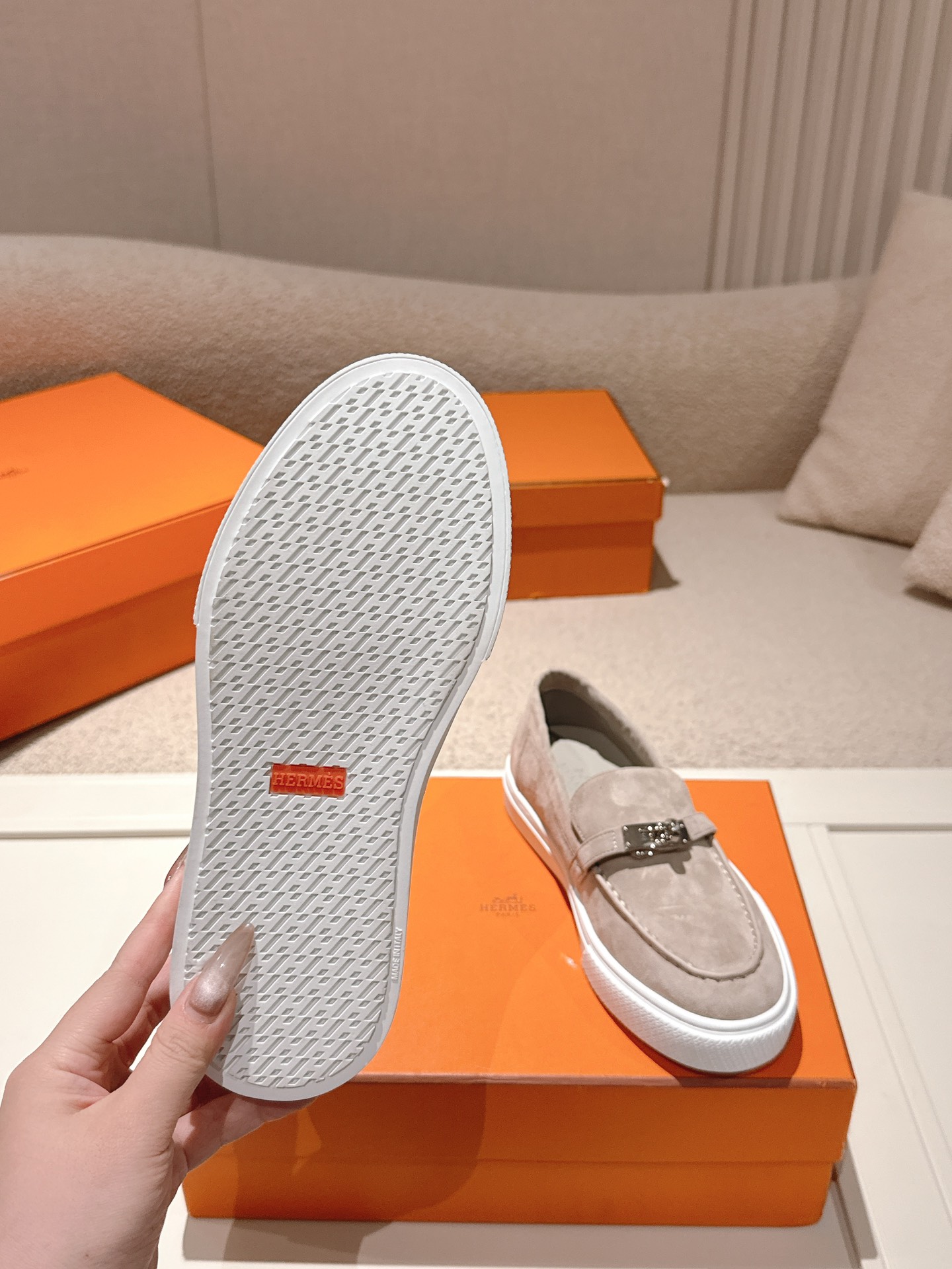 這款鞋子是AAAAA 1:1 質量(非常棒). 使用了和原版一模一樣的材料. 商標部分也保持了和愛馬仕/Hermes一樣. 圖片拍攝是實物鞋子拍攝, 您所收到的實物保證和我們圖片一模一樣.