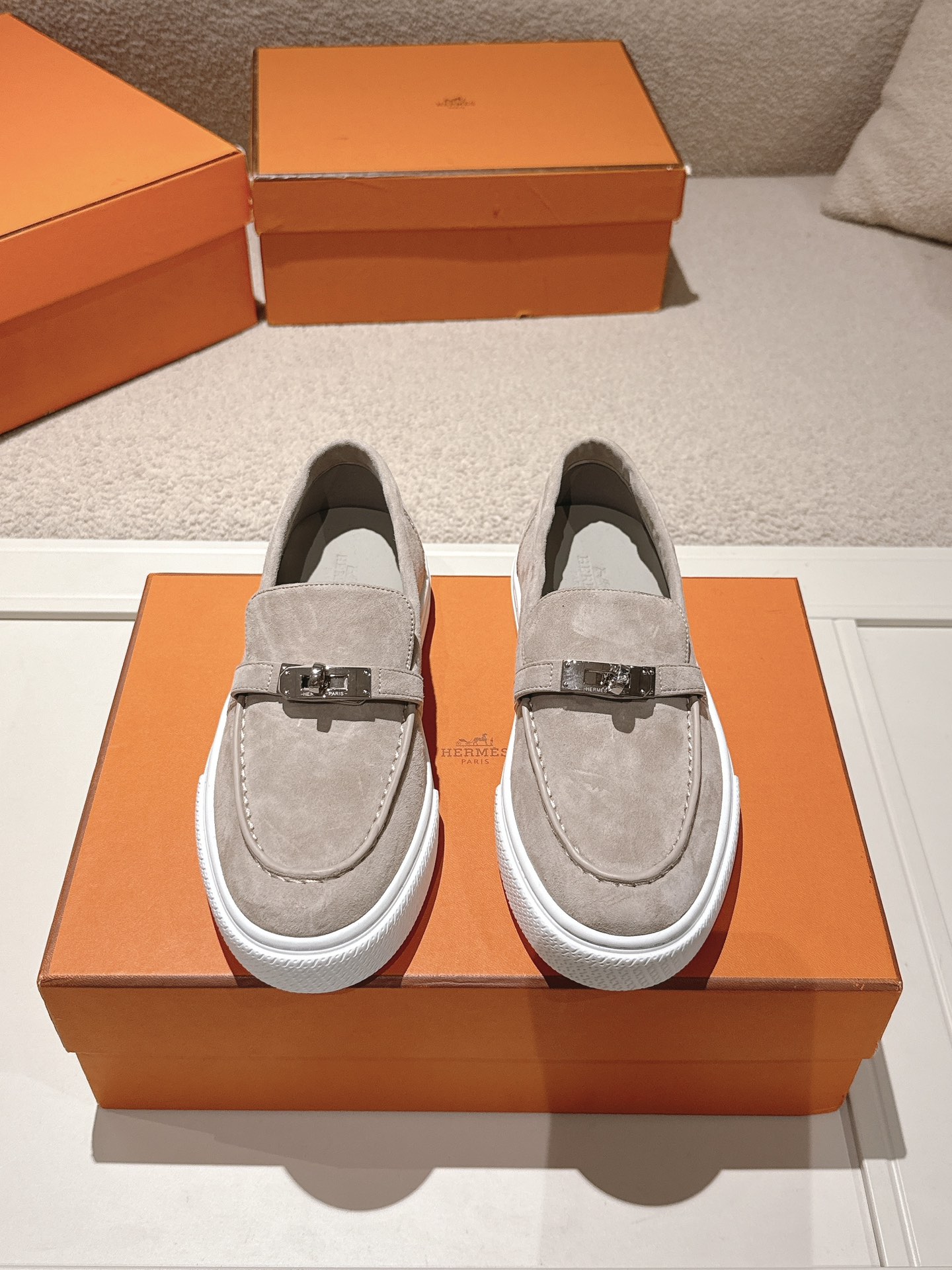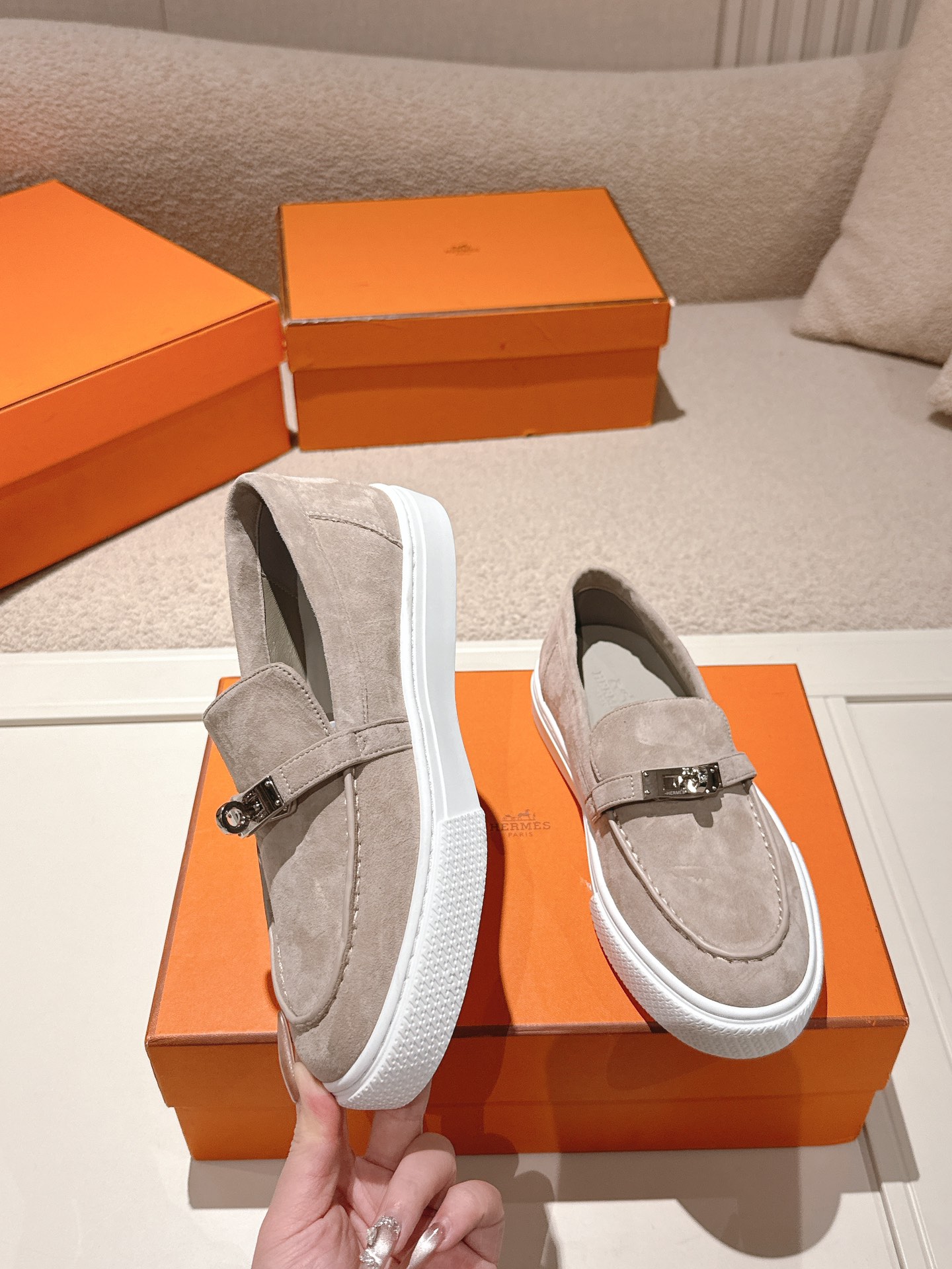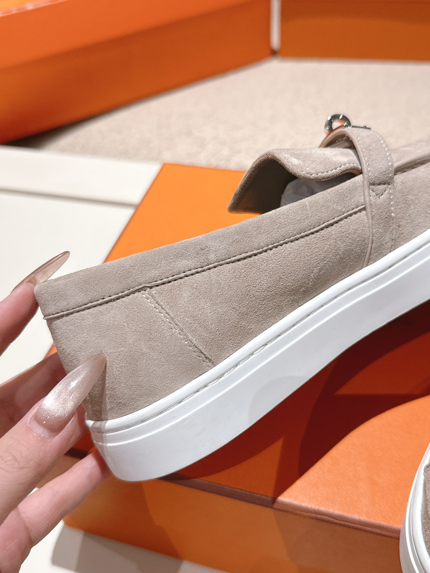 這款鞋子是AAAAA 1:1 質量(非常棒). 使用了和原版一模一樣的材料. 商標部分也保持了和愛馬仕/Hermes一樣. 圖片拍攝是實物鞋子拍攝, 您所收到的實物保證和我們圖片一模一樣.