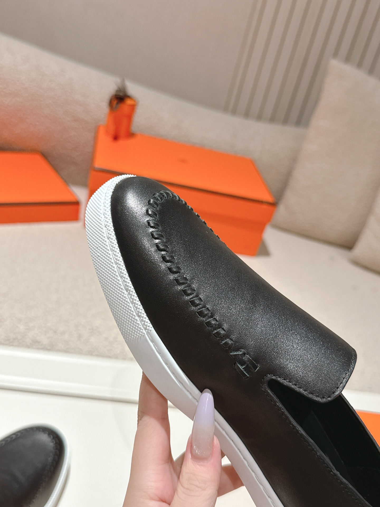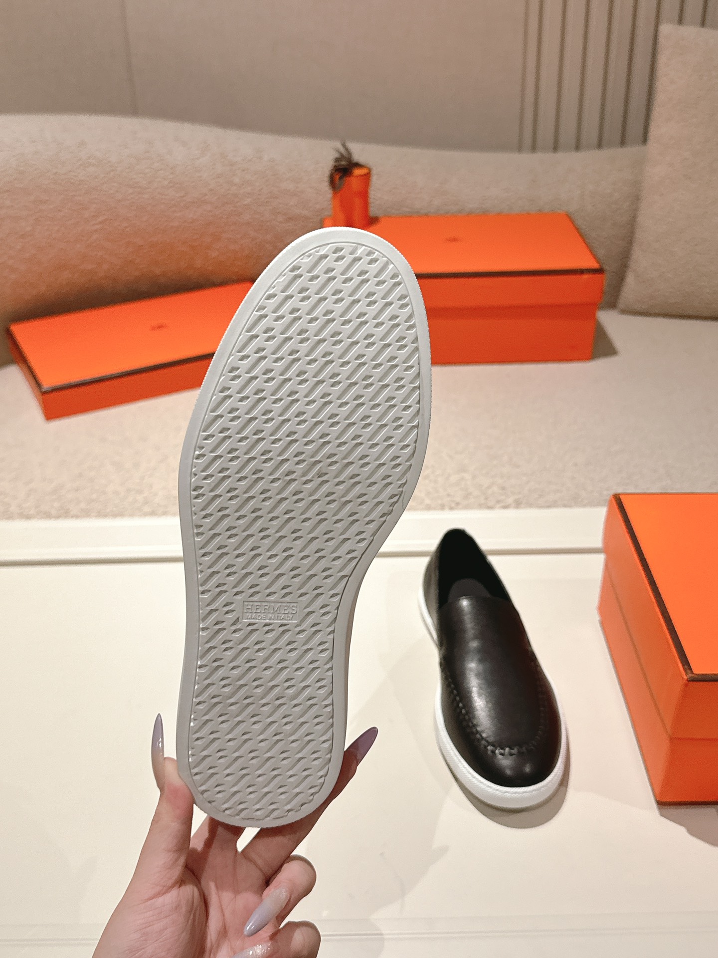 這款鞋子是AAAAA 1:1 質量(非常棒). 使用了和原版一模一樣的材料. 商標部分也保持了和愛馬仕/Hermes一樣. 圖片拍攝是實物鞋子拍攝, 您所收到的實物保證和我們圖片一模一樣.