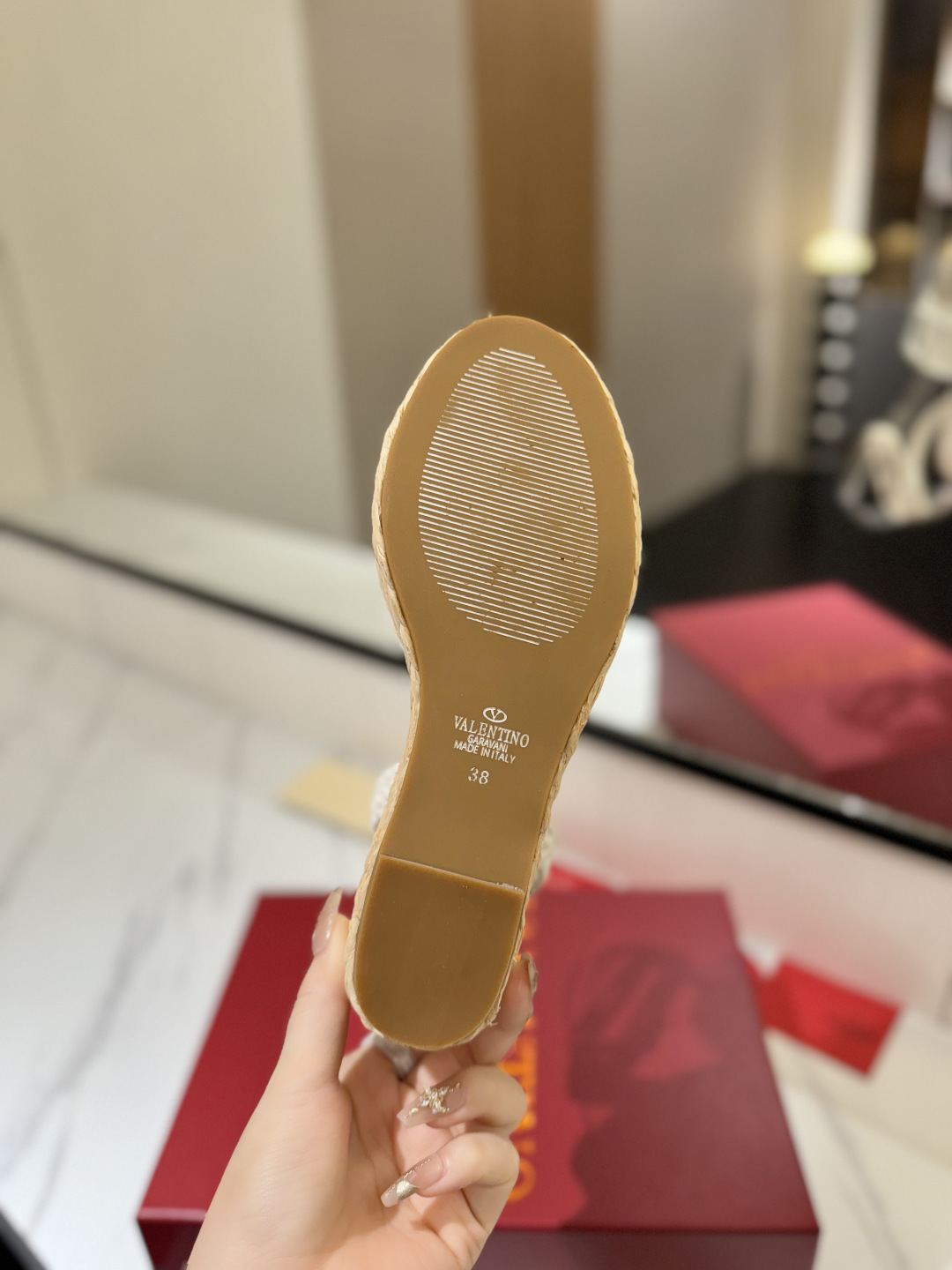 這款鞋子是AAAAA 1:1 質量(非常棒). 使用了和原版一模一樣的材料. 商標部分也保持了和瓦倫蒂諾/Valentino一樣. 圖片拍攝是實物鞋子拍攝, 您所收到的實物保證和我們圖片一模一樣.