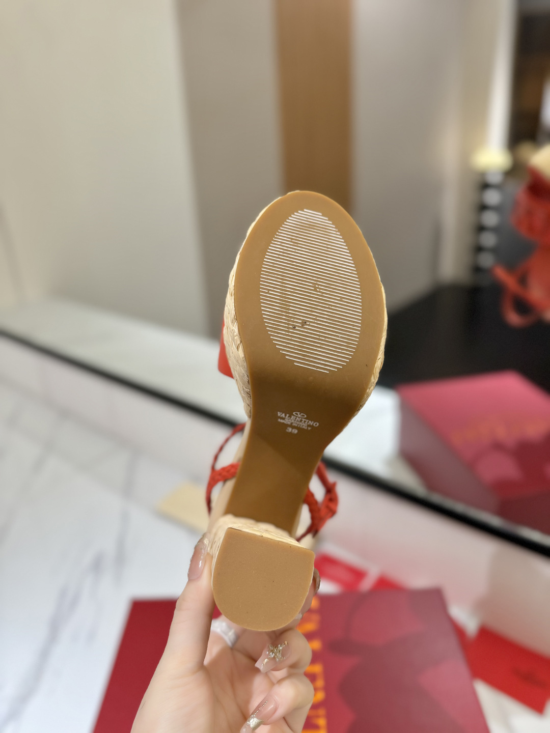 這款鞋子是AAAAA 1:1 質量(非常棒). 使用了和原版一模一樣的材料. 商標部分也保持了和瓦倫蒂諾/Valentino一樣. 圖片拍攝是實物鞋子拍攝, 您所收到的實物保證和我們圖片一模一樣.