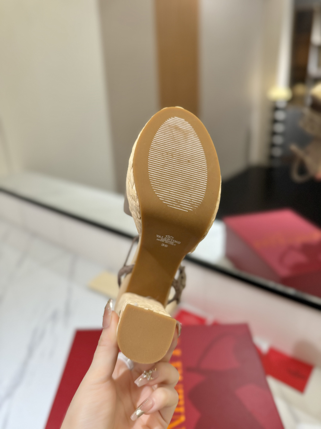 這款鞋子是AAAAA 1:1 質量(非常棒). 使用了和原版一模一樣的材料. 商標部分也保持了和瓦倫蒂諾/Valentino一樣. 圖片拍攝是實物鞋子拍攝, 您所收到的實物保證和我們圖片一模一樣.