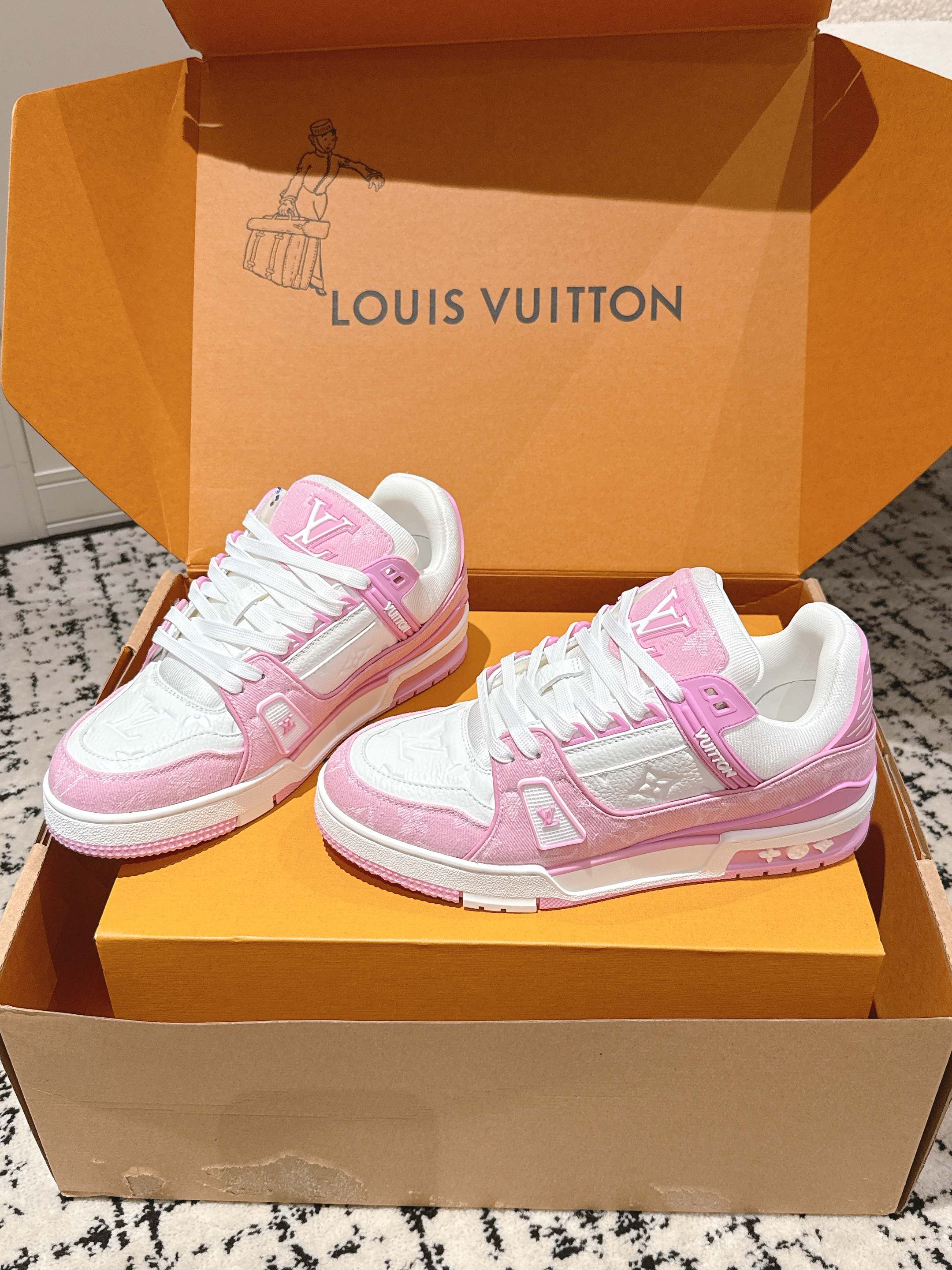 這款鞋子是AAAAA 1:1 質量(非常棒). 使用了和原版一模一樣的材料. 商標部分也保持了和路易威登/Louis Vuitton一樣. 圖片拍攝是實物鞋子拍攝, 您所收到的實物保證和我們圖片一模一樣.