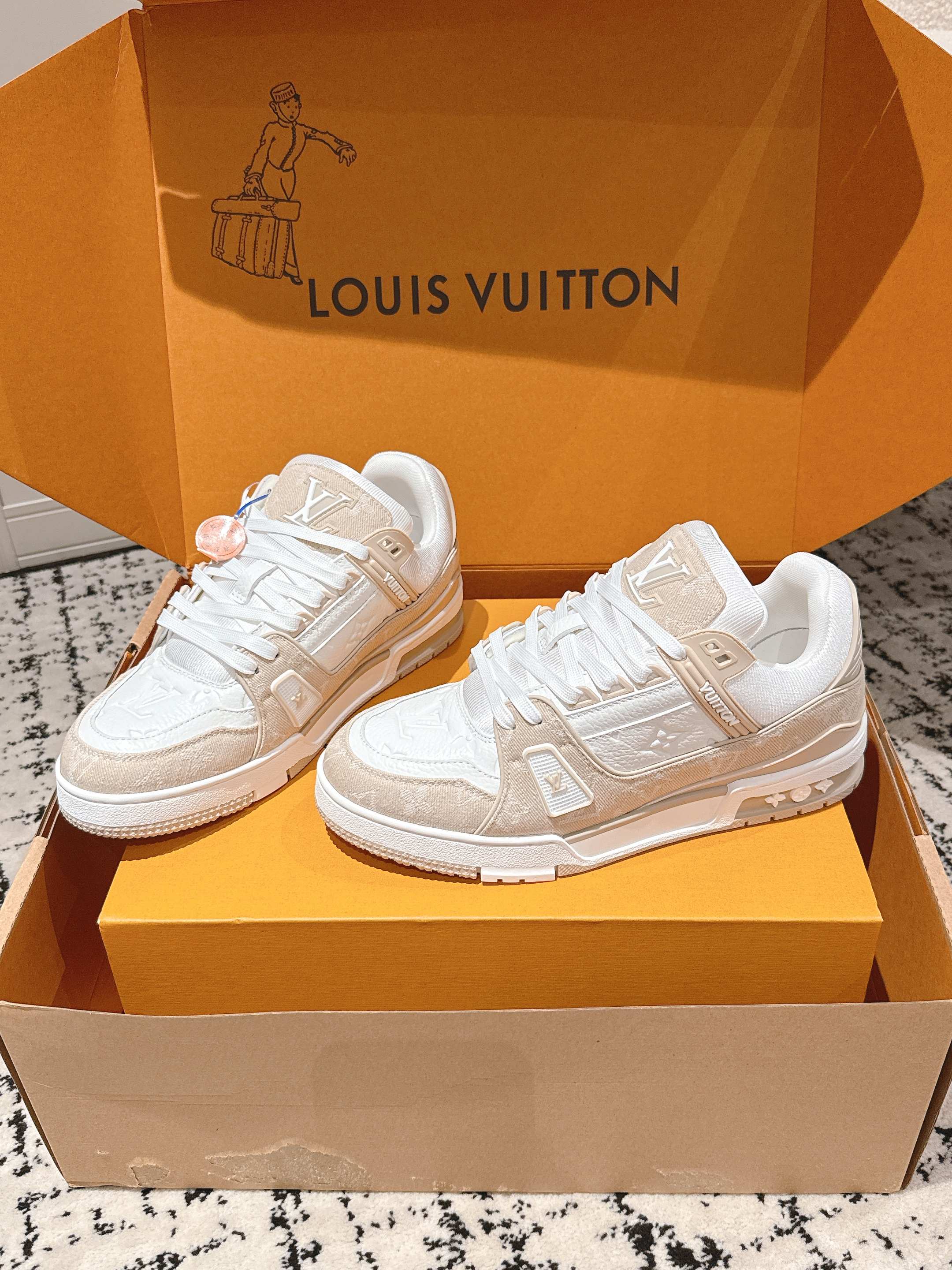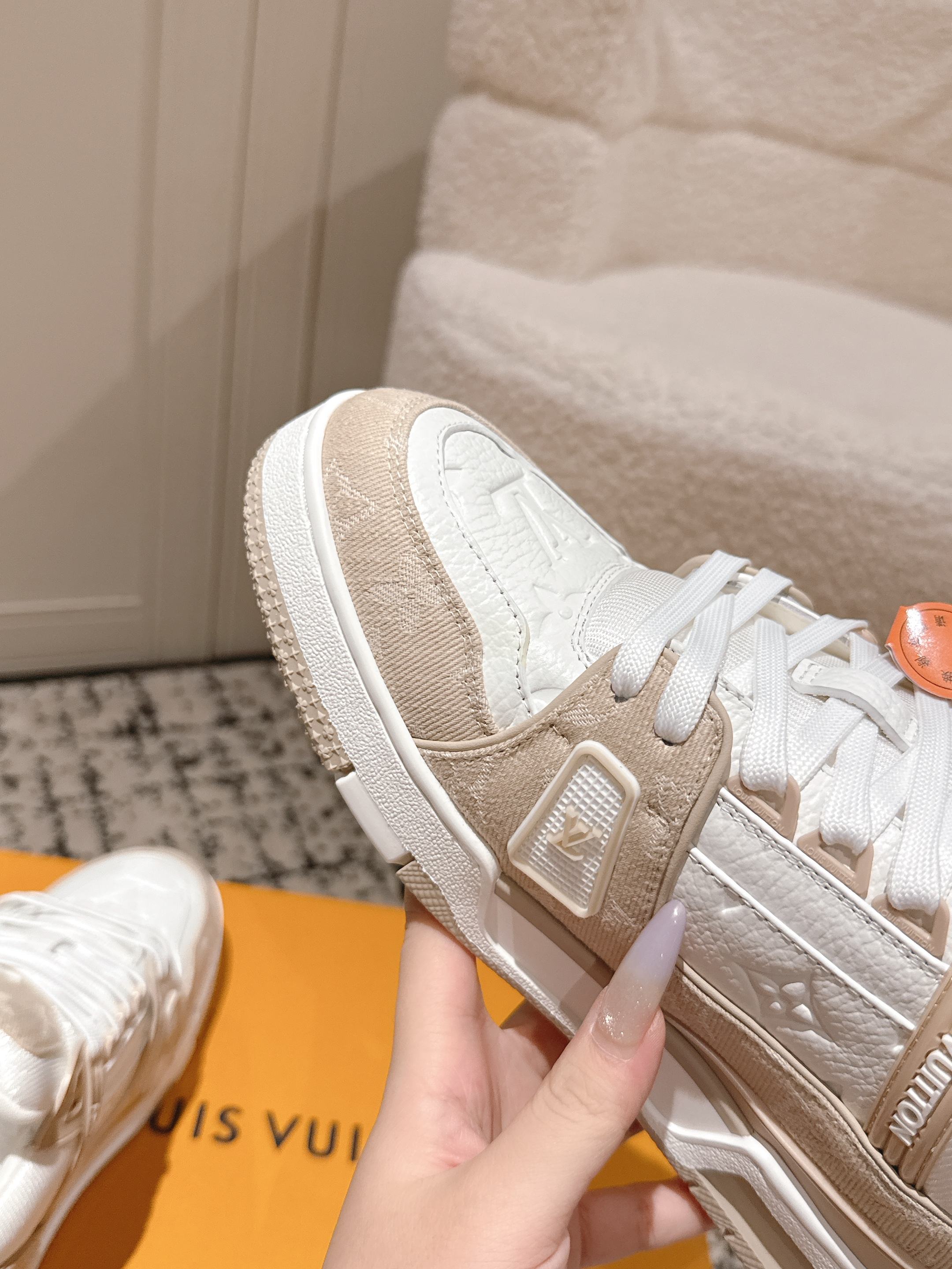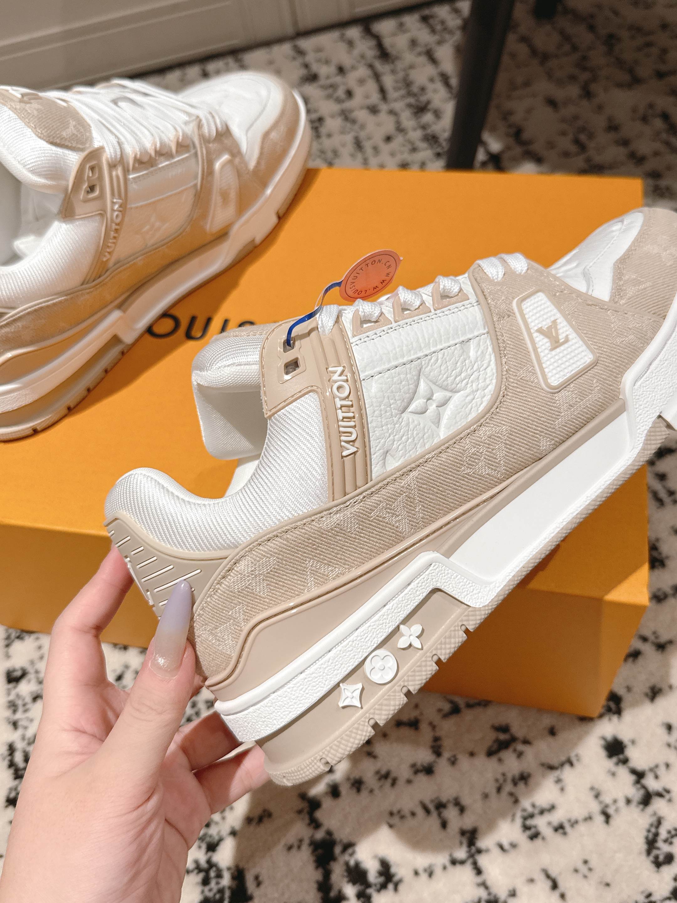 這款鞋子是AAAAA 1:1 質量(非常棒). 使用了和原版一模一樣的材料. 商標部分也保持了和路易威登/Louis Vuitton一樣. 圖片拍攝是實物鞋子拍攝, 您所收到的實物保證和我們圖片一模一樣.