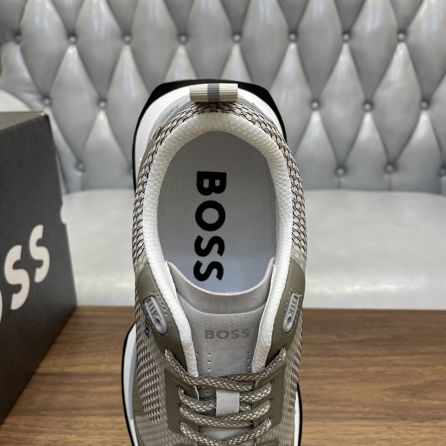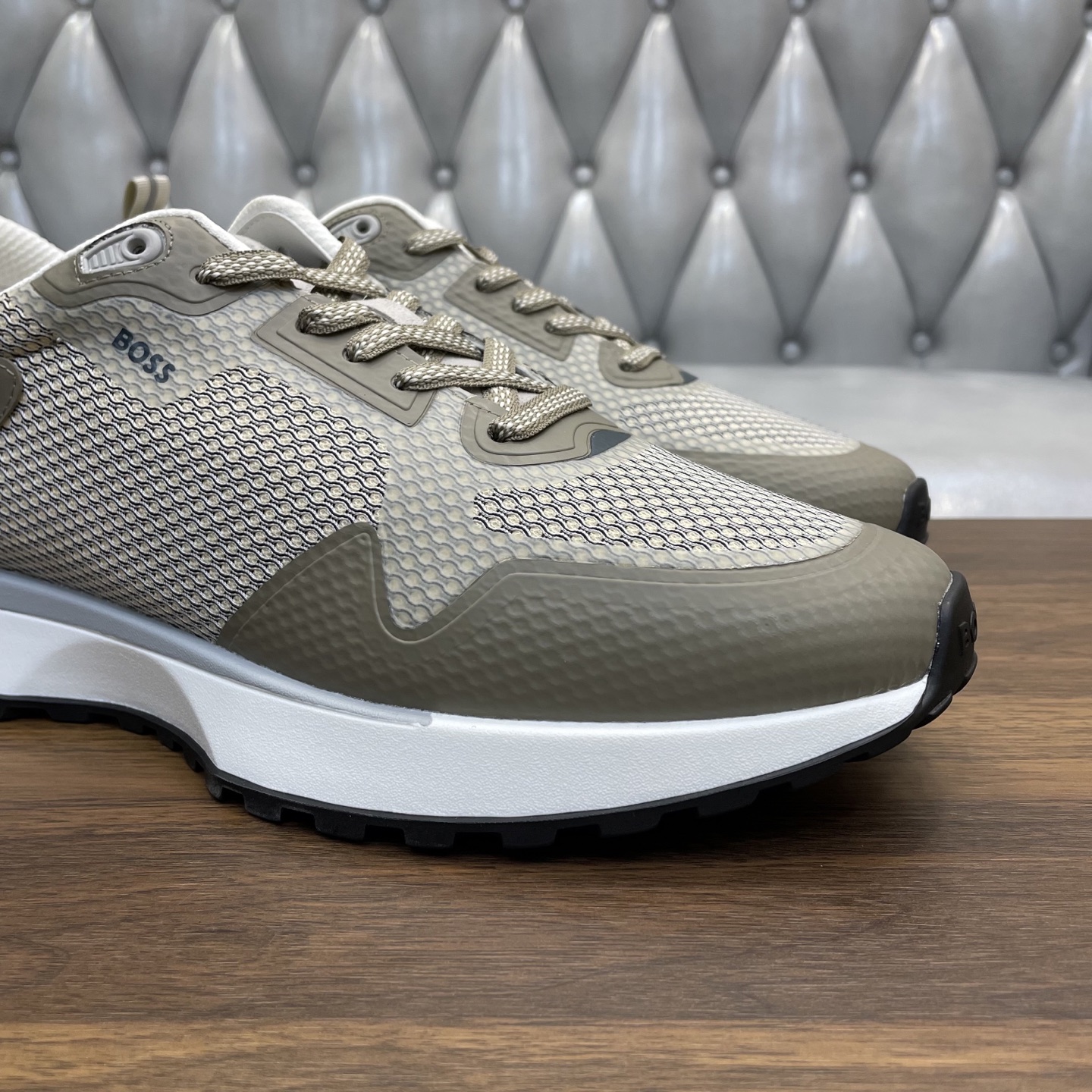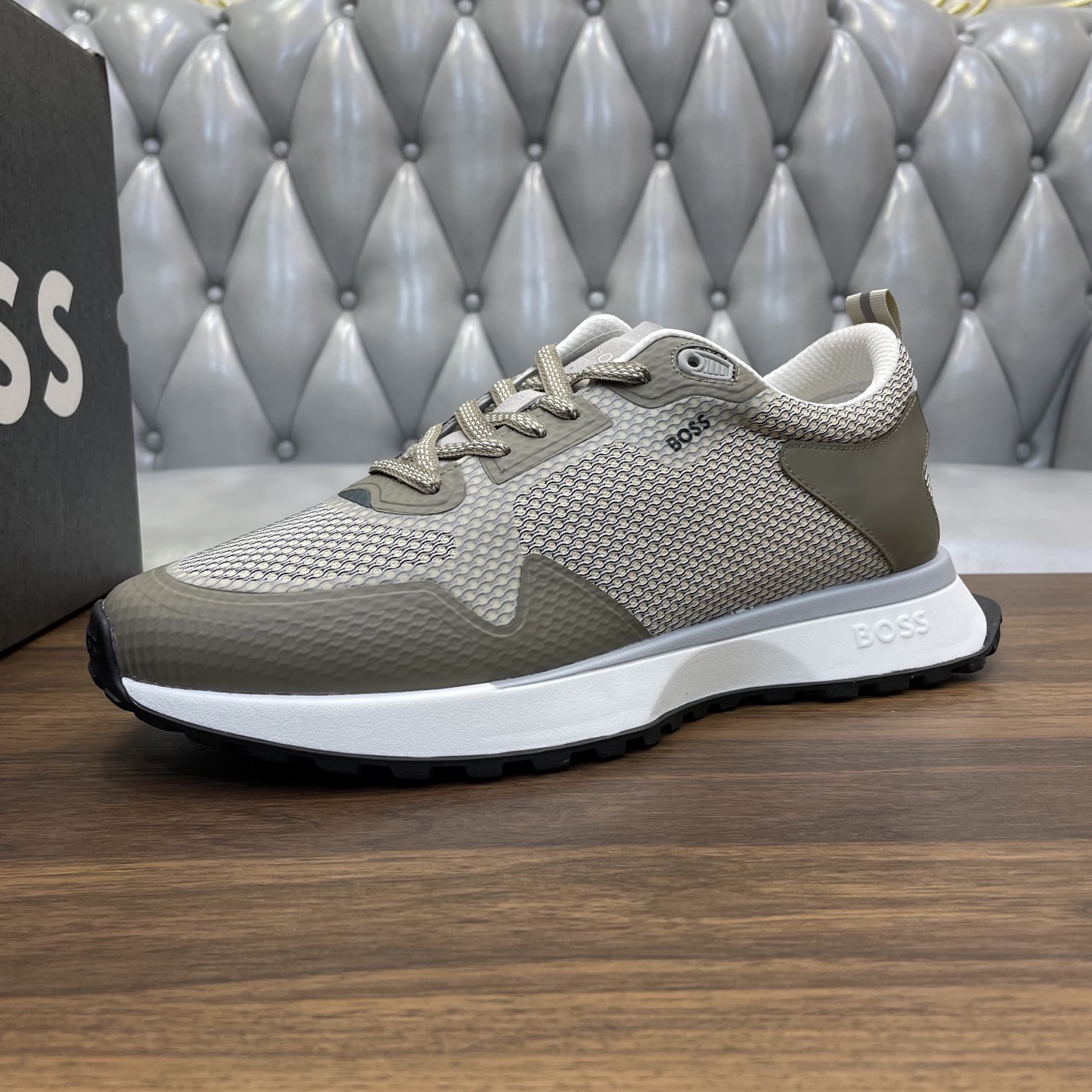 這款鞋子是AAAAA 1:1 質量(非常棒). 使用了和原版一模一樣的材料. 商標部分也保持了和BOSS一樣. 圖片拍攝是實物鞋子拍攝, 您所收到的實物保證和我們圖片一模一樣.