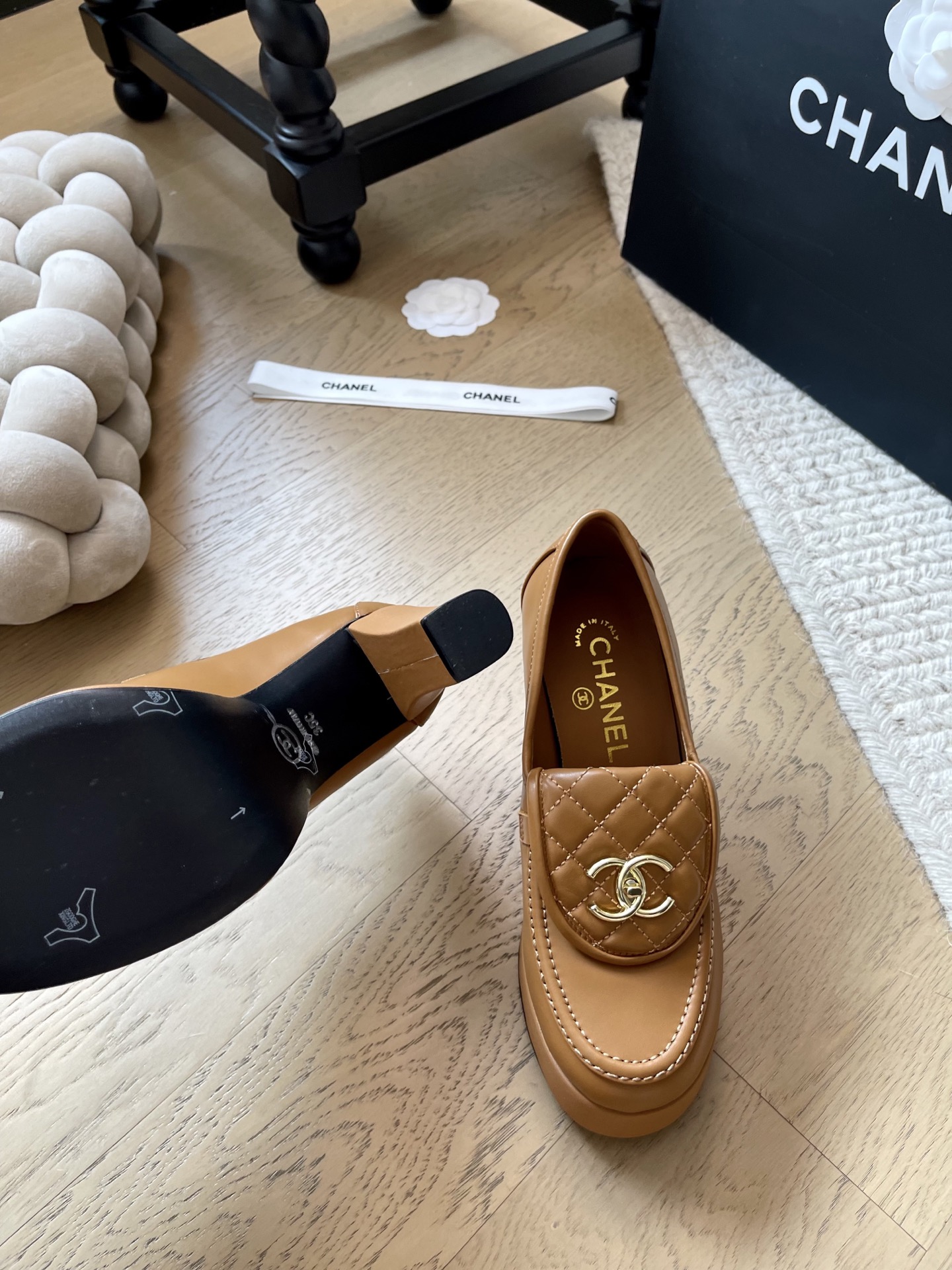 這款鞋子是AAAAA 1:1 質量(非常棒). 使用了和原版一模一樣的材料. 商標部分也保持了和香奈兒/Chanel一樣. 圖片拍攝是實物鞋子拍攝, 您所收到的實物保證和我們圖片一模一樣.