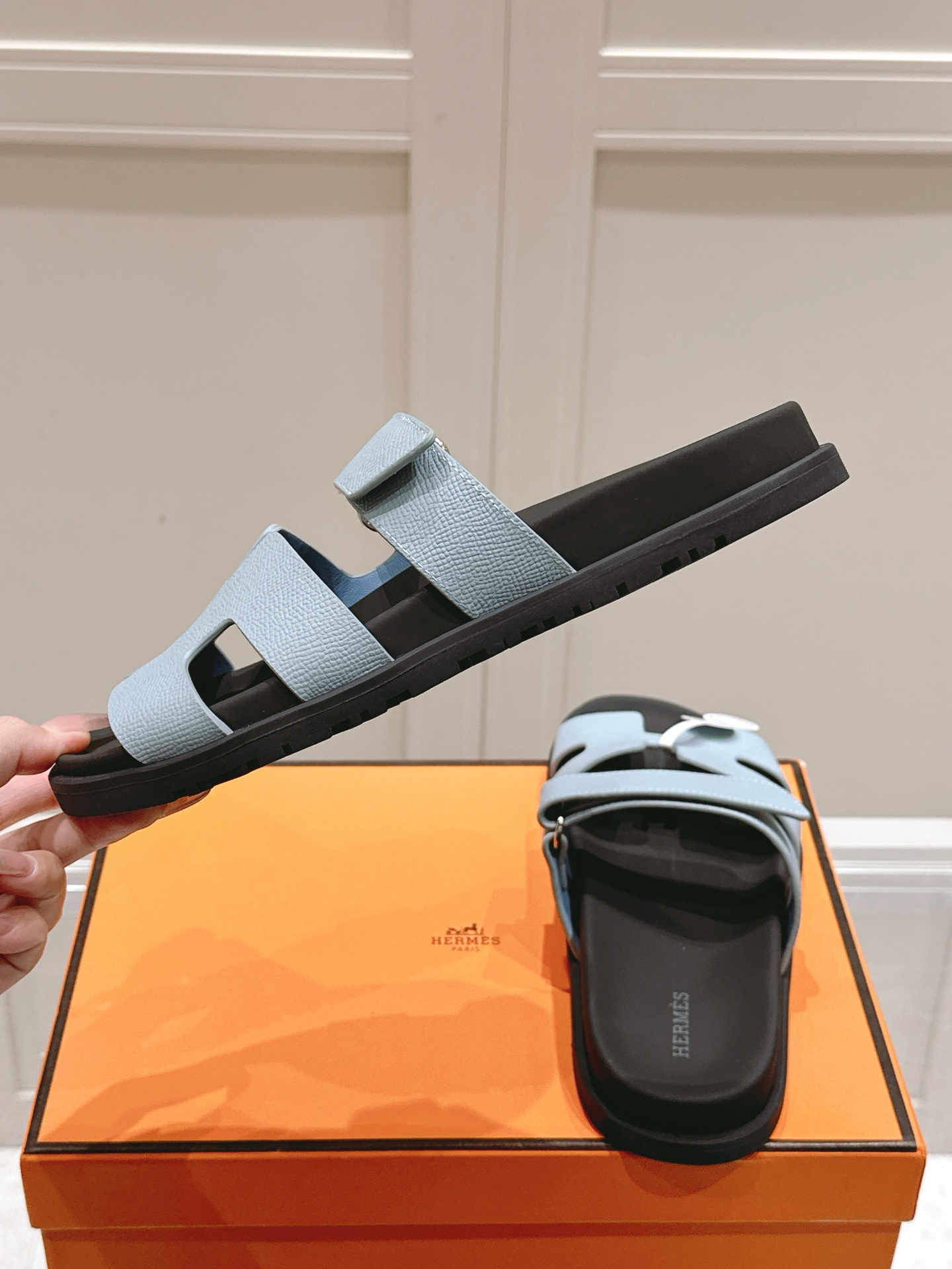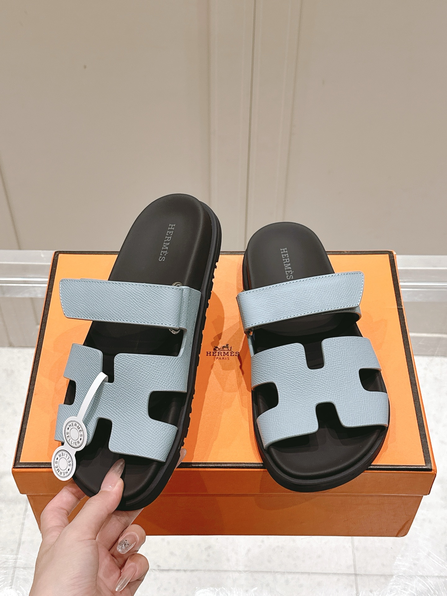 這款鞋子是AAAAA 1:1 質量(非常棒). 使用了和原版一模一樣的材料. 商標部分也保持了和愛馬仕/Hermes一樣. 圖片拍攝是實物鞋子拍攝, 您所收到的實物保證和我們圖片一模一樣.