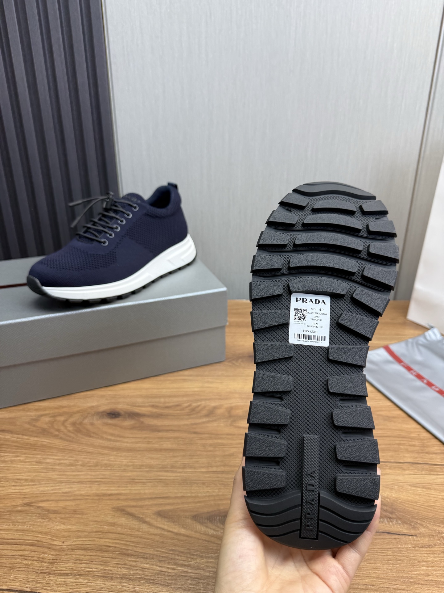 這款鞋子是AAAAA 1:1 質量(非常棒). 使用了和原版一模一樣的材料. 商標部分也保持了和普拉達/Prada一樣. 圖片拍攝是實物鞋子拍攝, 您所收到的實物保證和我們圖片一模一樣.