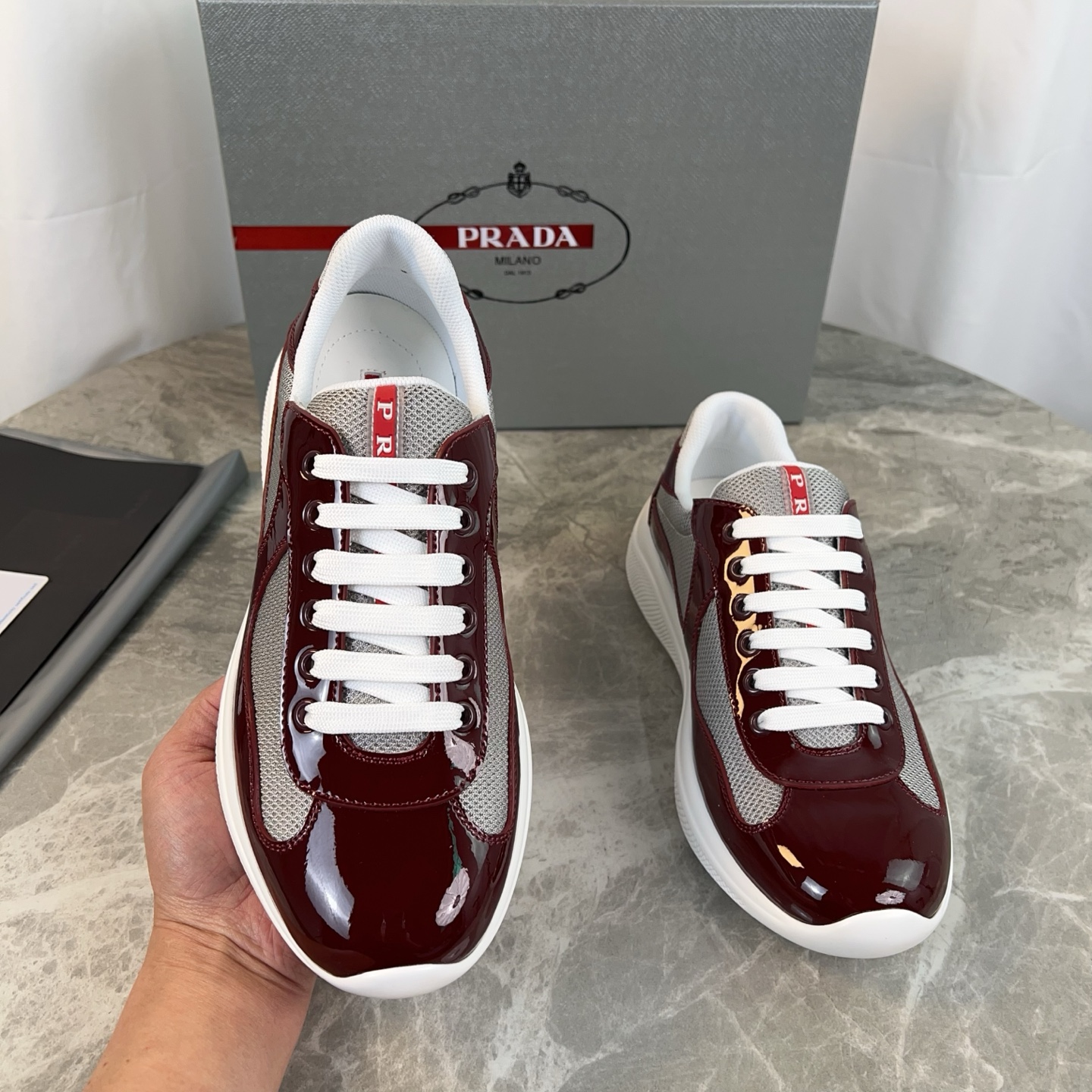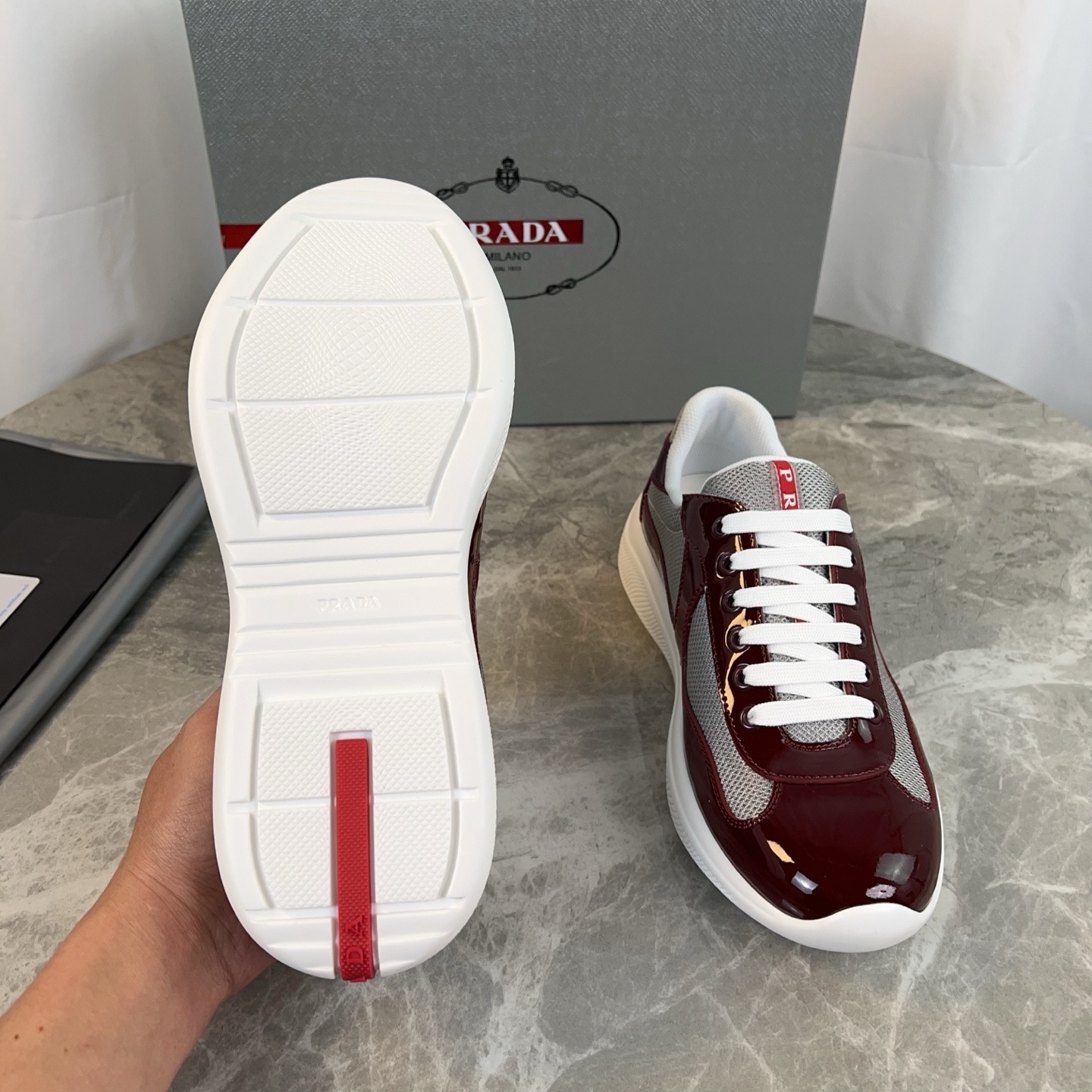 這款鞋子是AAAAA 1:1 質量(非常棒). 使用了和原版一模一樣的材料. 商標部分也保持了和普拉達/Prada一樣. 圖片拍攝是實物鞋子拍攝, 您所收到的實物保證和我們圖片一模一樣.