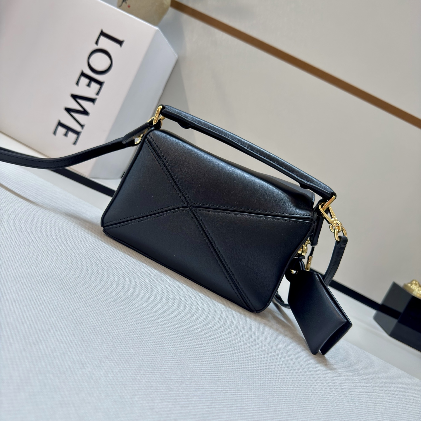 這款包包是AAAAA 1:1 質量(非常棒). 使用了和原版一模一樣的材料. 商標部分也保持了和Loewe一樣. 圖片拍攝是實物包包拍攝, 您所收到的實物保證和我們圖片一模一樣.