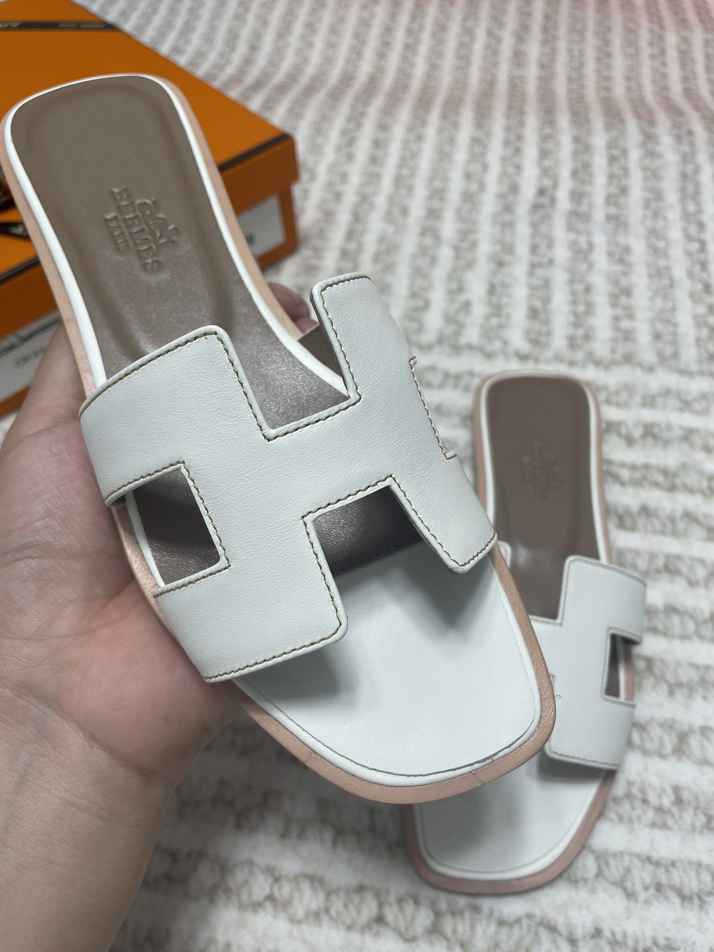 這款鞋子是AAAAA 1:1 質量(非常棒). 使用了和原版一模一樣的材料. 商標部分也保持了和愛馬仕/Hermes一樣. 圖片拍攝是實物鞋子拍攝, 您所收到的實物保證和我們圖片一模一樣.