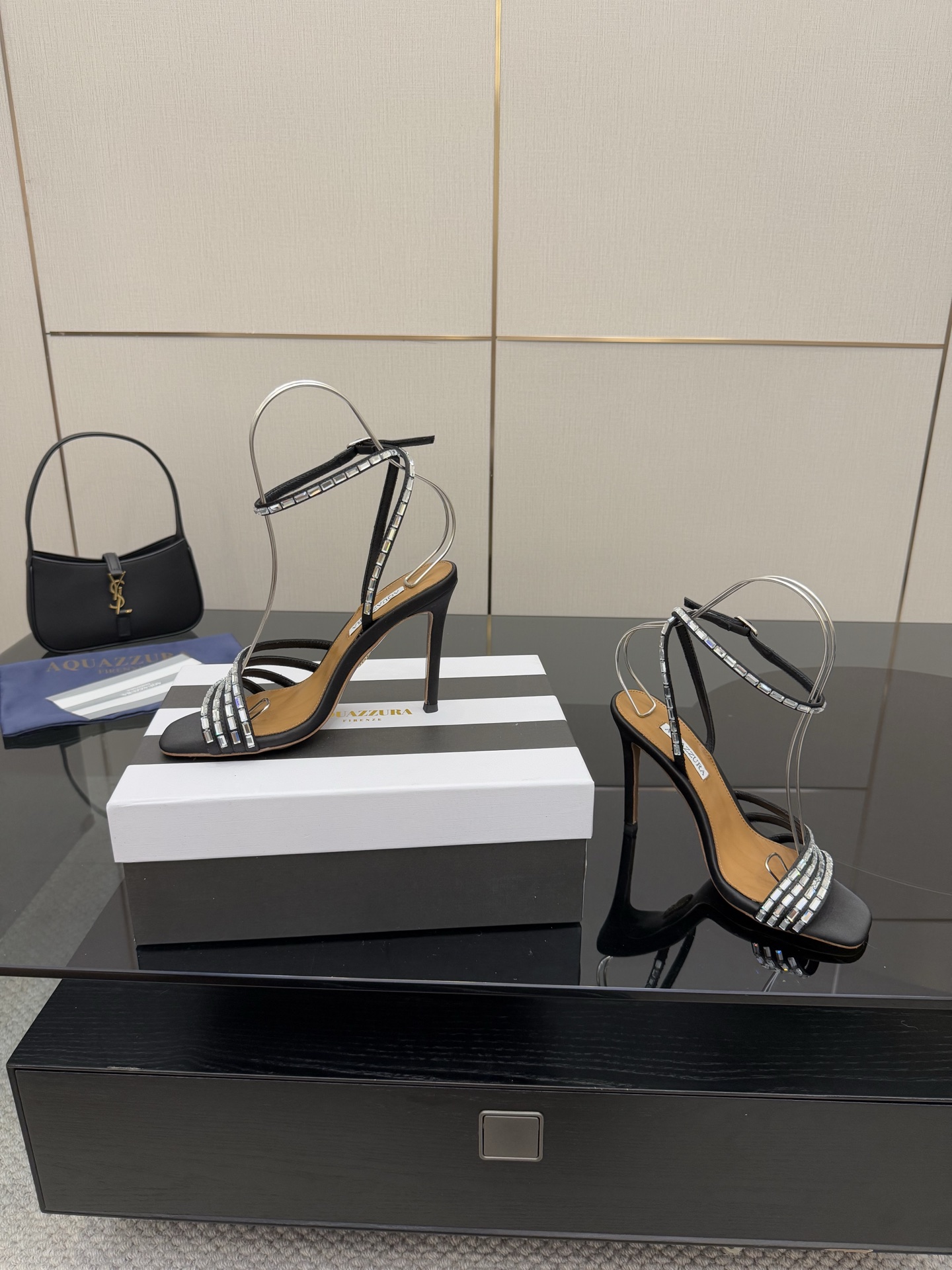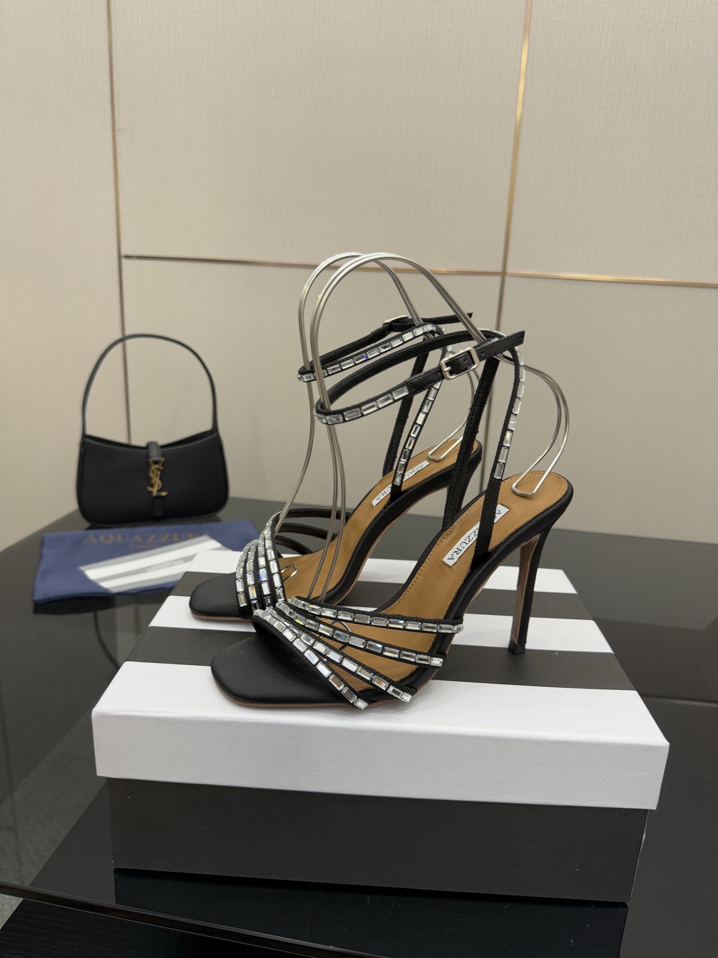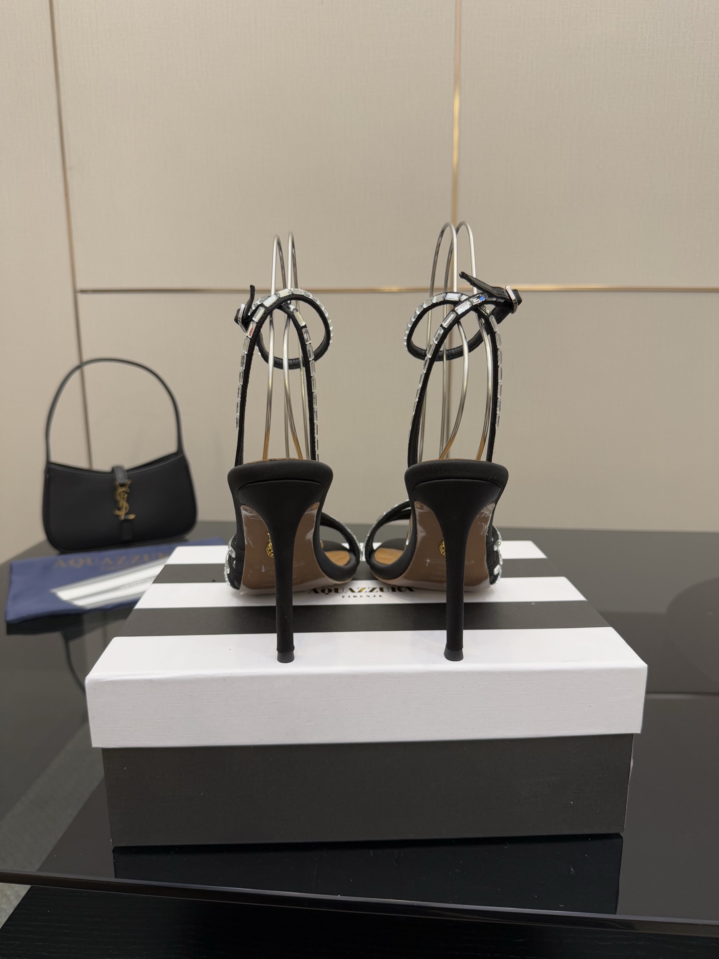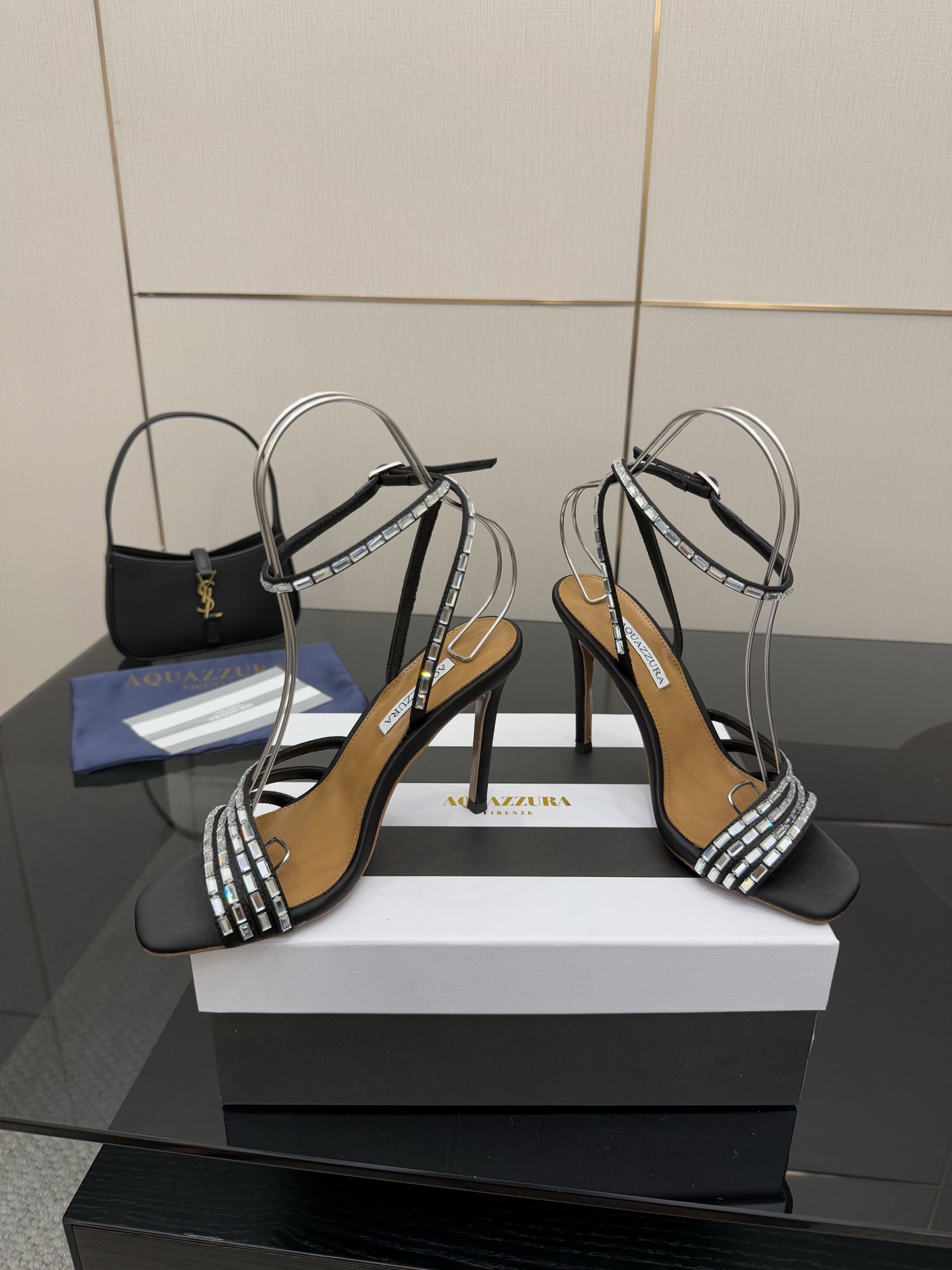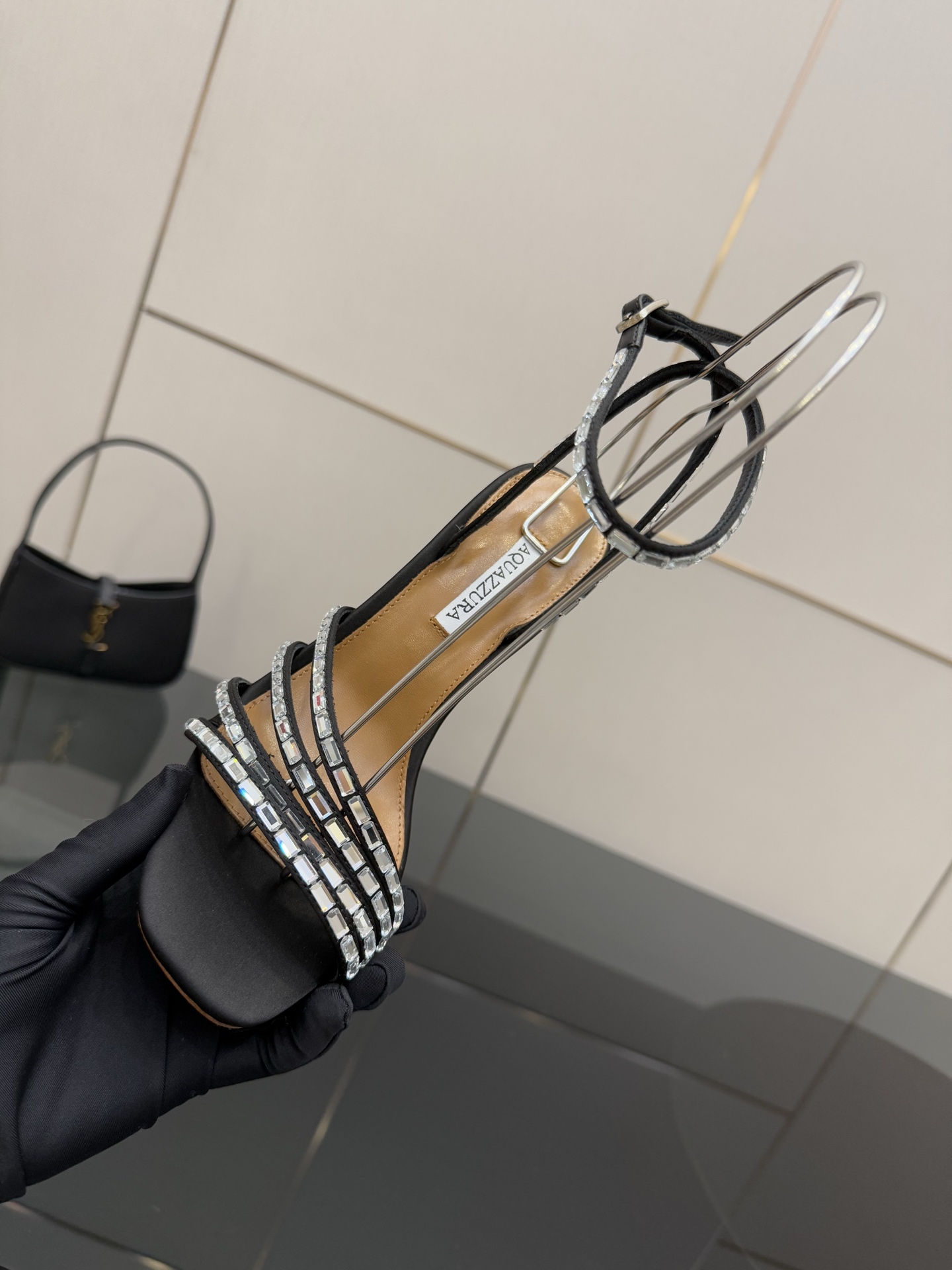 這款鞋子是AAAAA 1:1 質量(非常棒). 使用了和原版一模一樣的材料. 商標部分也保持了和Aquazzura一樣. 圖片拍攝是實物鞋子拍攝, 您所收到的實物保證和我們圖片一模一樣.