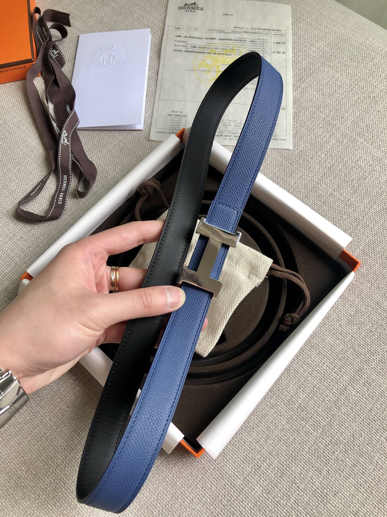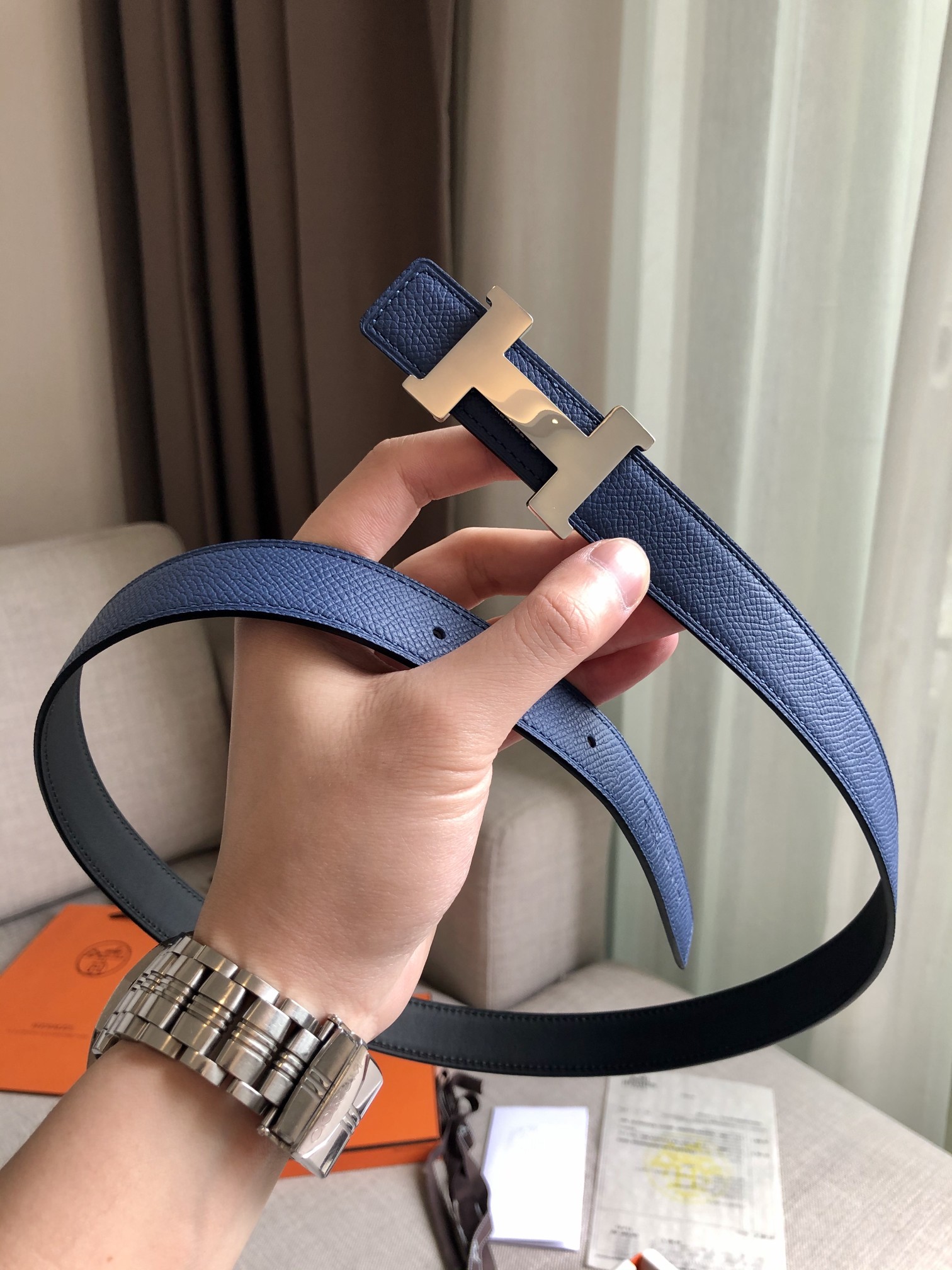 這款皮帶是AAAAA 1:1 質量(非常棒). 使用了和原版一模一樣的材料. 商標部分也保持了和愛馬仕/Hermes一樣. 圖片拍攝是實物皮帶拍攝, 您所收到的實物保證和我們圖片一模一樣.