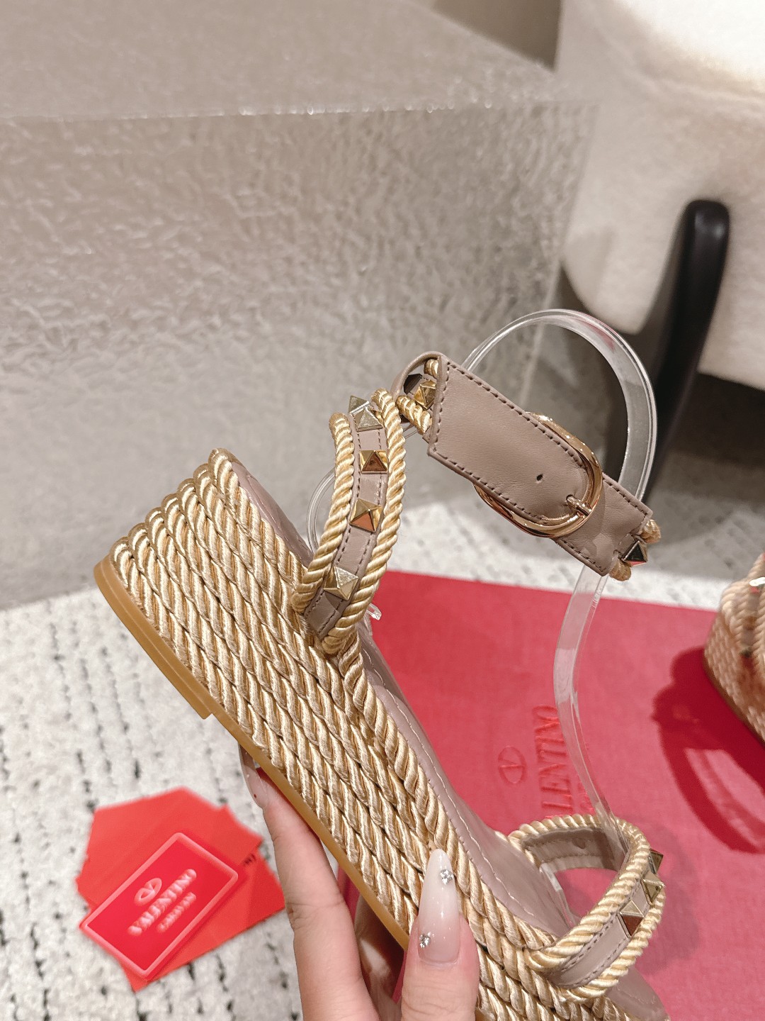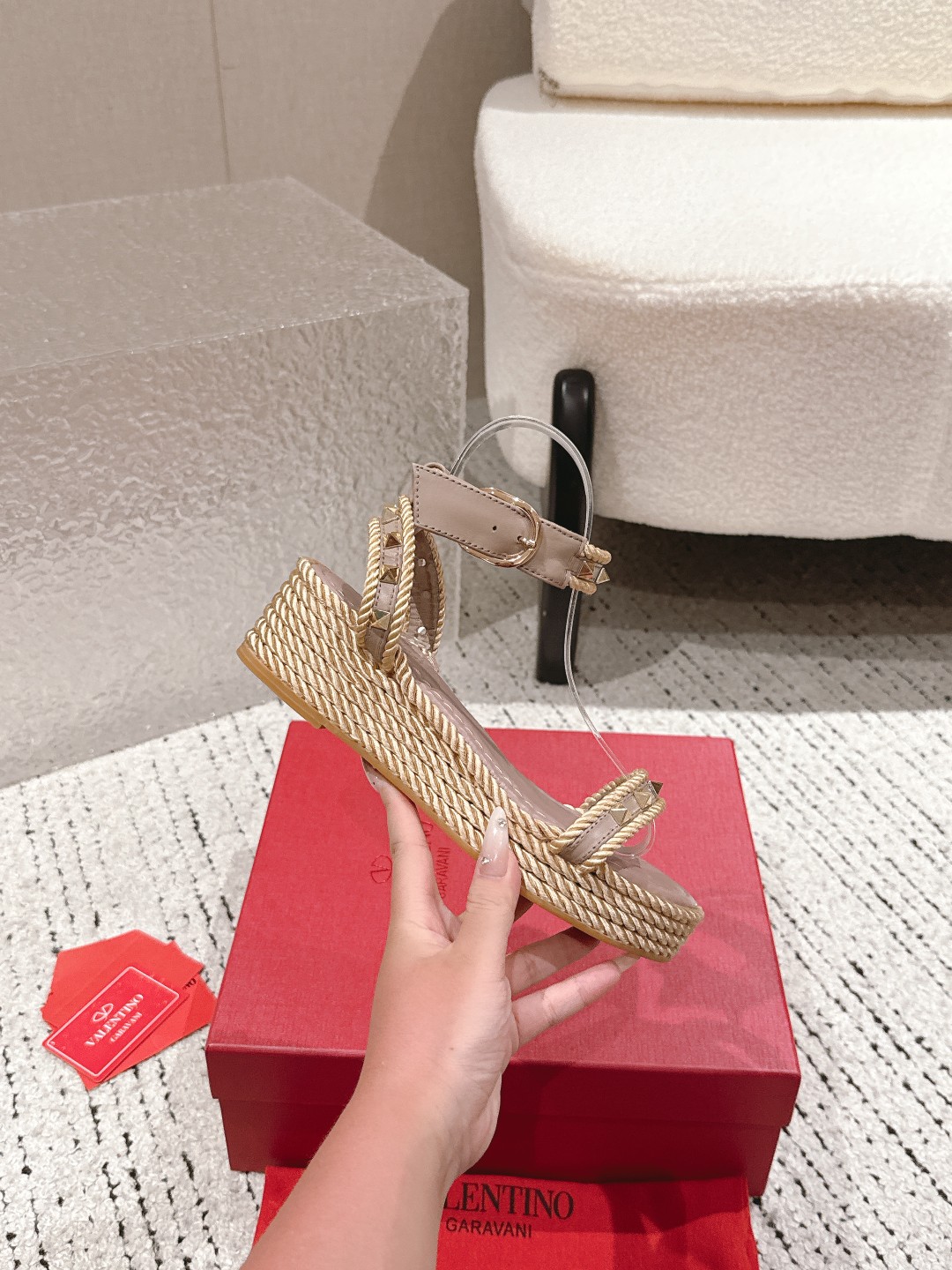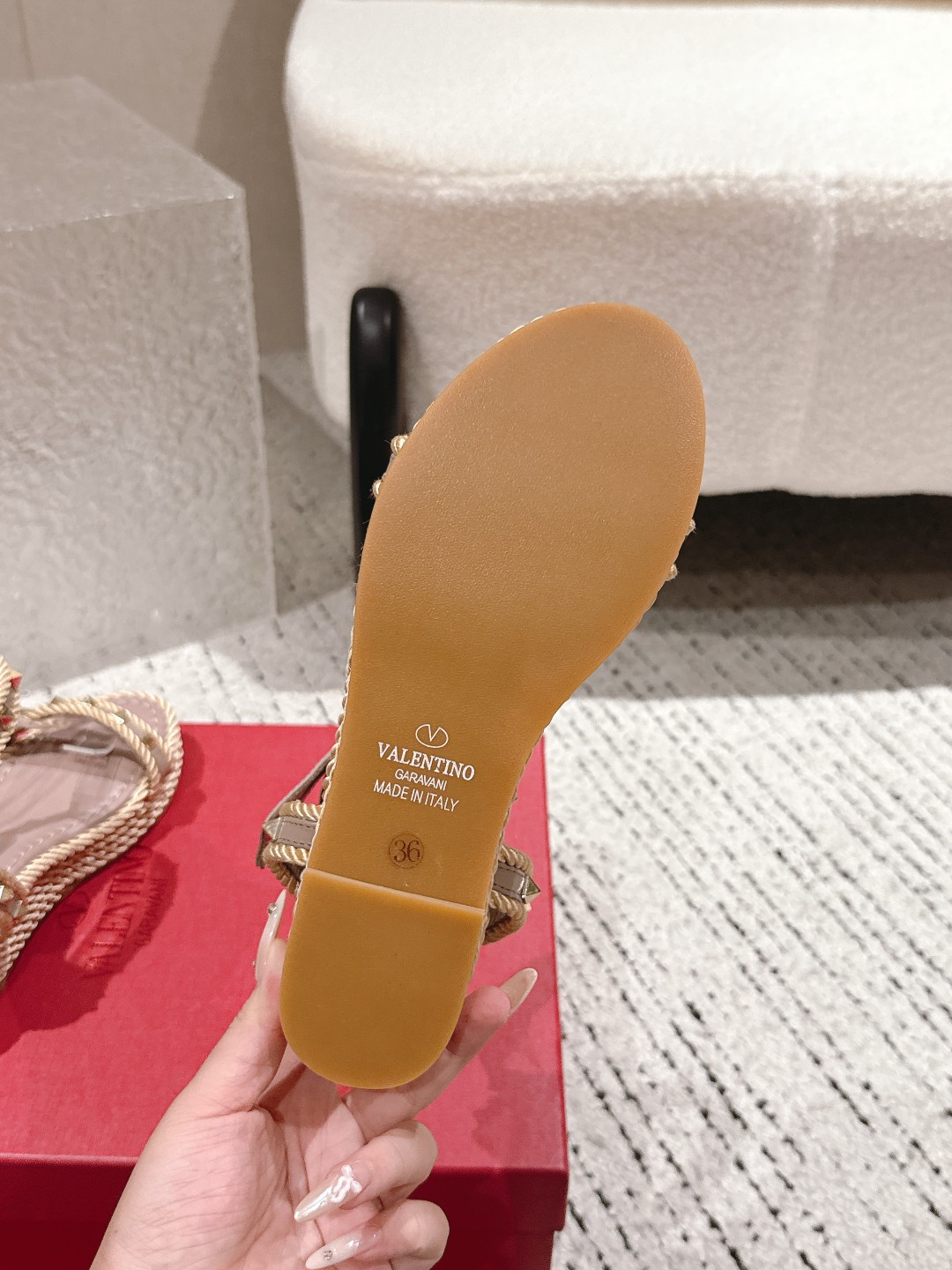 這款鞋子是AAAAA 1:1 質量(非常棒). 使用了和原版一模一樣的材料. 商標部分也保持了和瓦倫蒂諾/Valentino一樣. 圖片拍攝是實物鞋子拍攝, 您所收到的實物保證和我們圖片一模一樣.