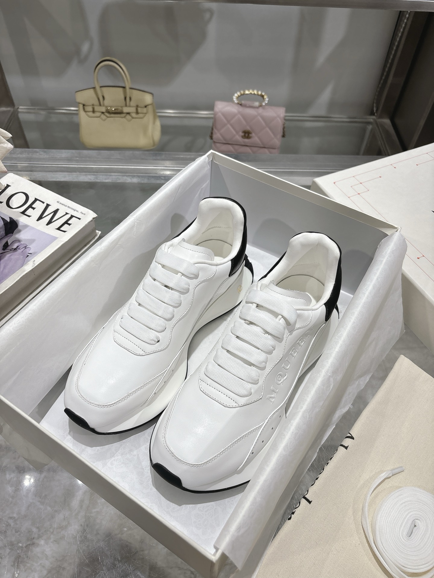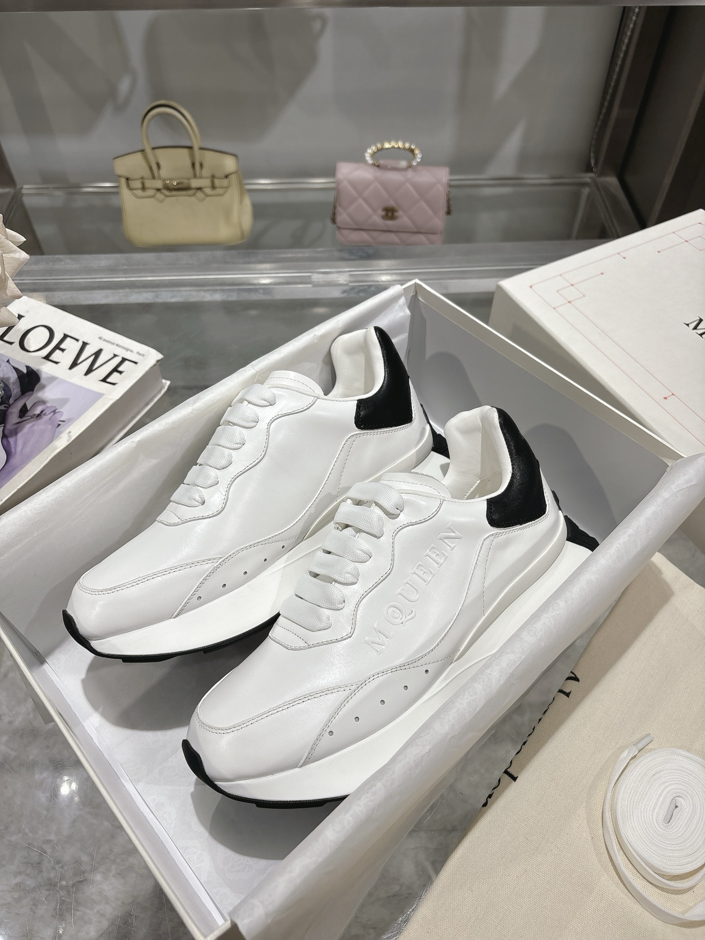 這款鞋子是AAAAA 1:1 質量(非常棒). 使用了和原版一模一樣的材料. 商標部分也保持了和麥奎恩/McQueen一樣. 圖片拍攝是實物鞋子拍攝, 您所收到的實物保證和我們圖片一模一樣.