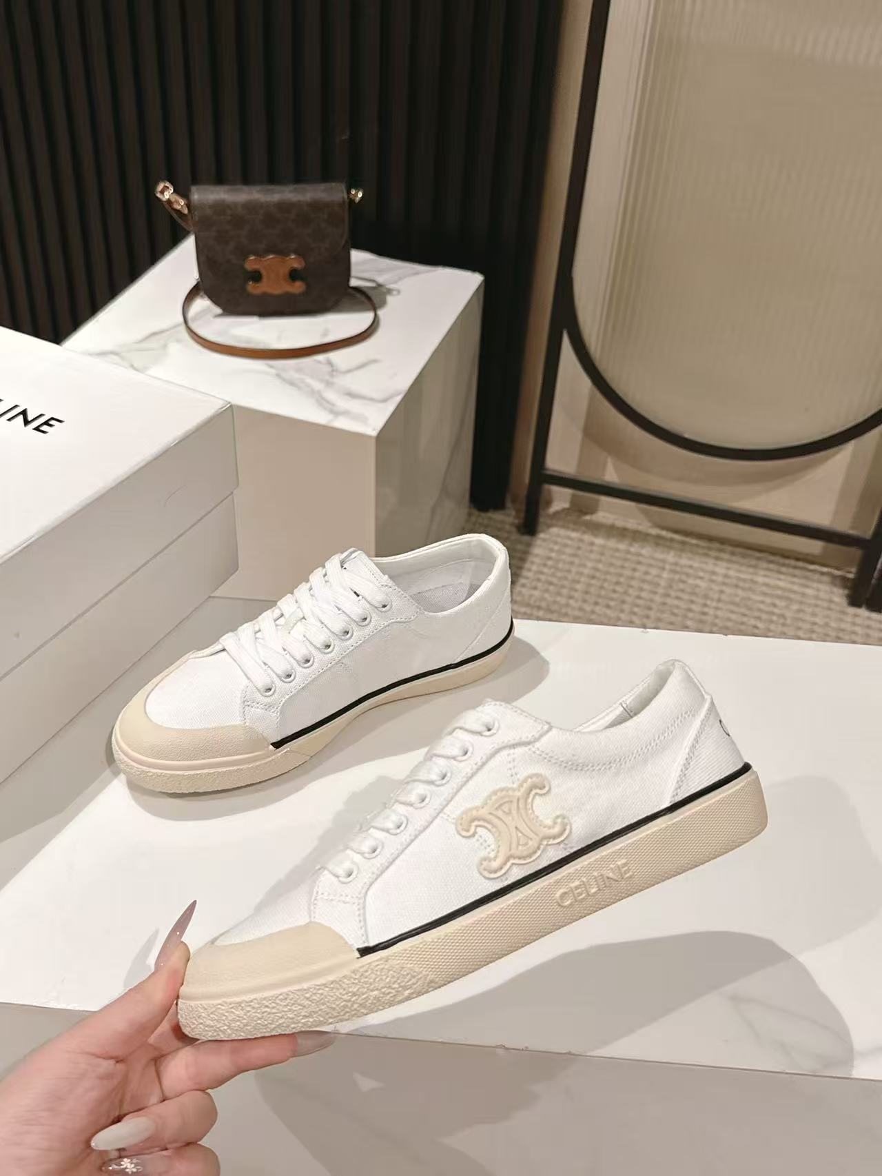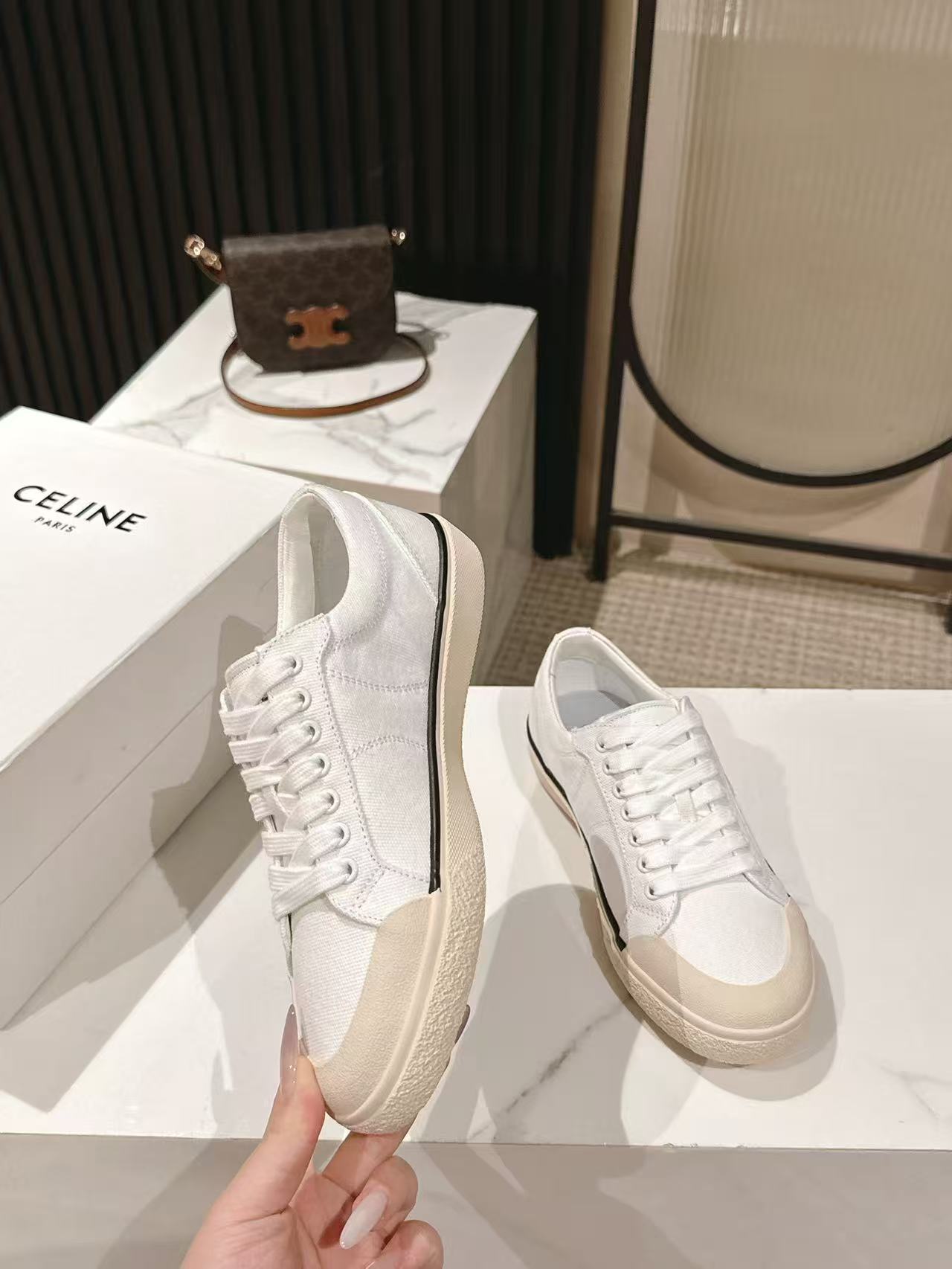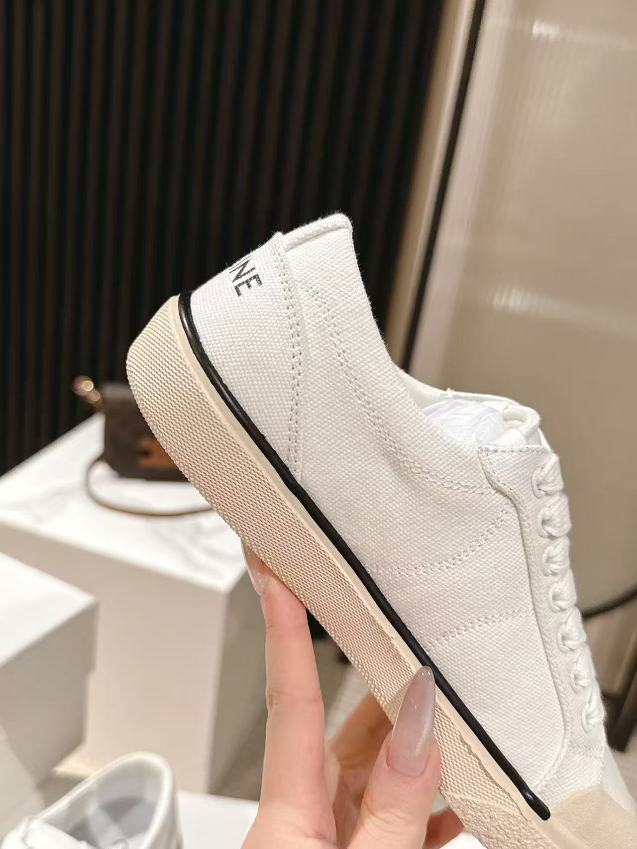 這款鞋子是AAAAA 1:1 質量(非常棒). 使用了和原版一模一樣的材料. 商標部分也保持了和思琳/赛琳/Celine一樣. 圖片拍攝是實物鞋子拍攝, 您所收到的實物保證和我們圖片一模一樣.