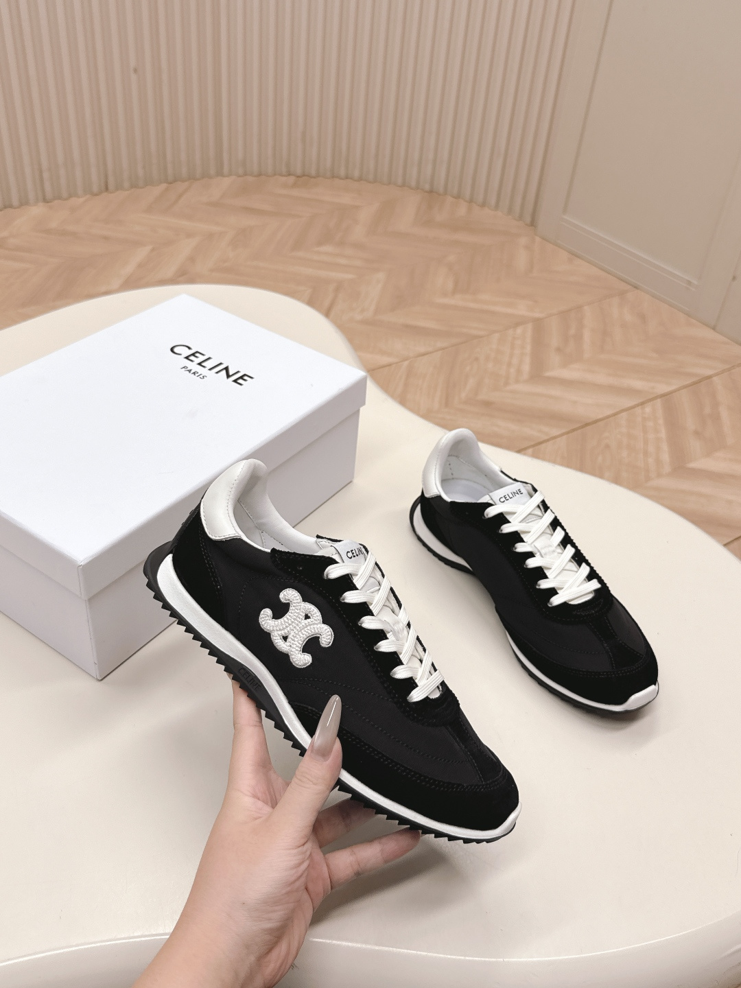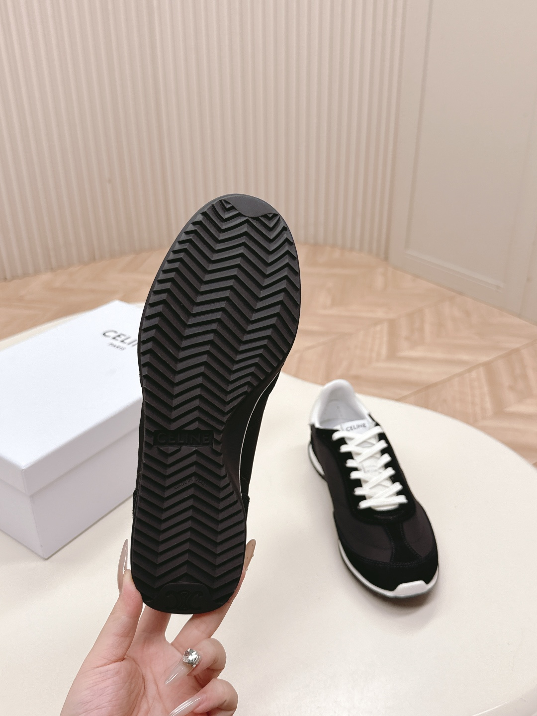 這款鞋子是AAAAA 1:1 質量(非常棒). 使用了和原版一模一樣的材料. 商標部分也保持了和思琳/赛琳/Celine一樣. 圖片拍攝是實物鞋子拍攝, 您所收到的實物保證和我們圖片一模一樣.