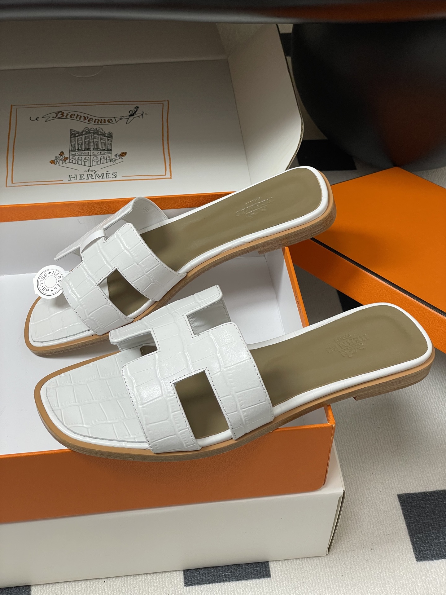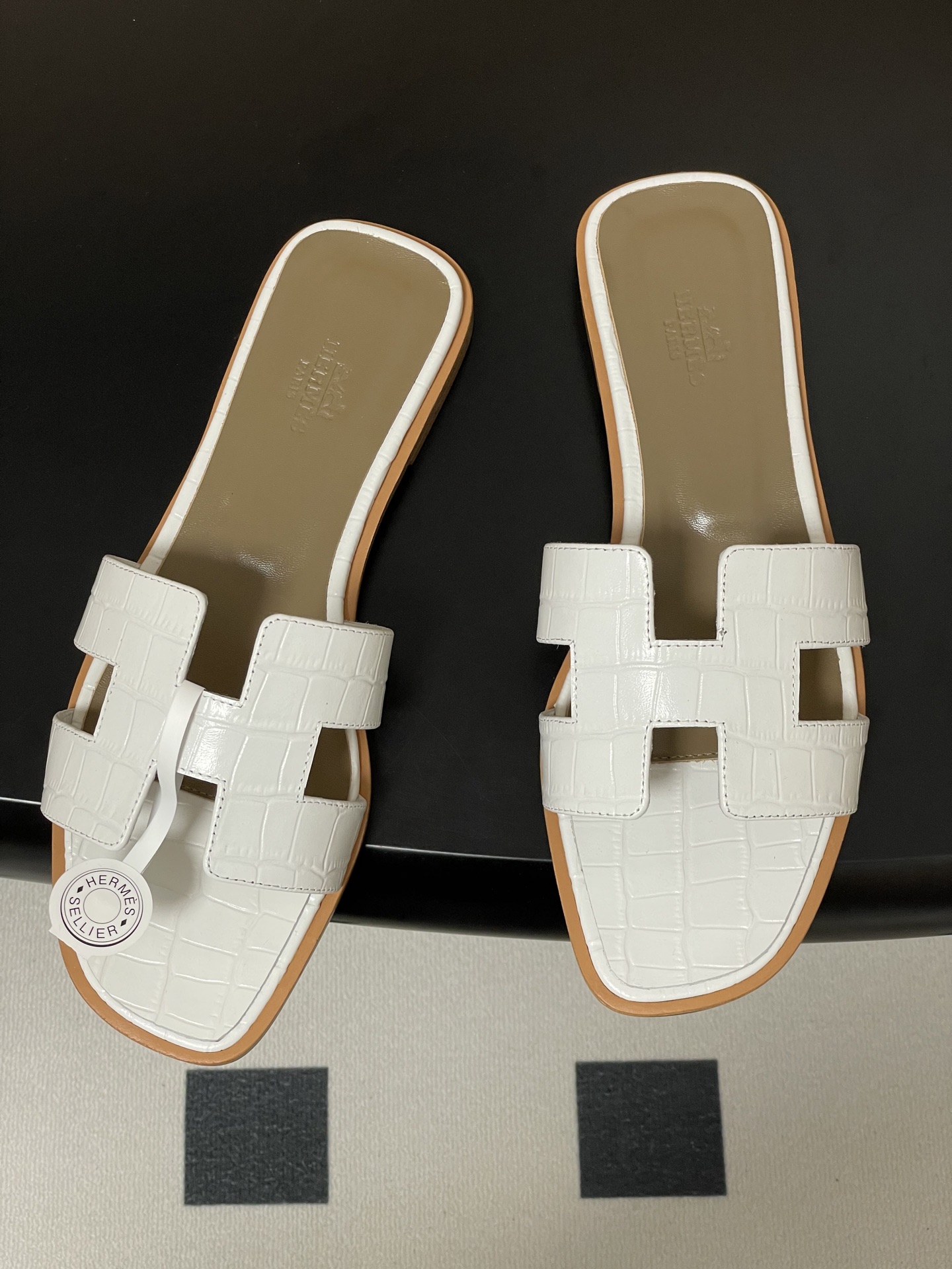這款鞋子是AAAAA 1:1 質量(非常棒). 使用了和原版一模一樣的材料. 商標部分也保持了和愛馬仕/Hermes一樣. 圖片拍攝是實物鞋子拍攝, 您所收到的實物保證和我們圖片一模一樣.
