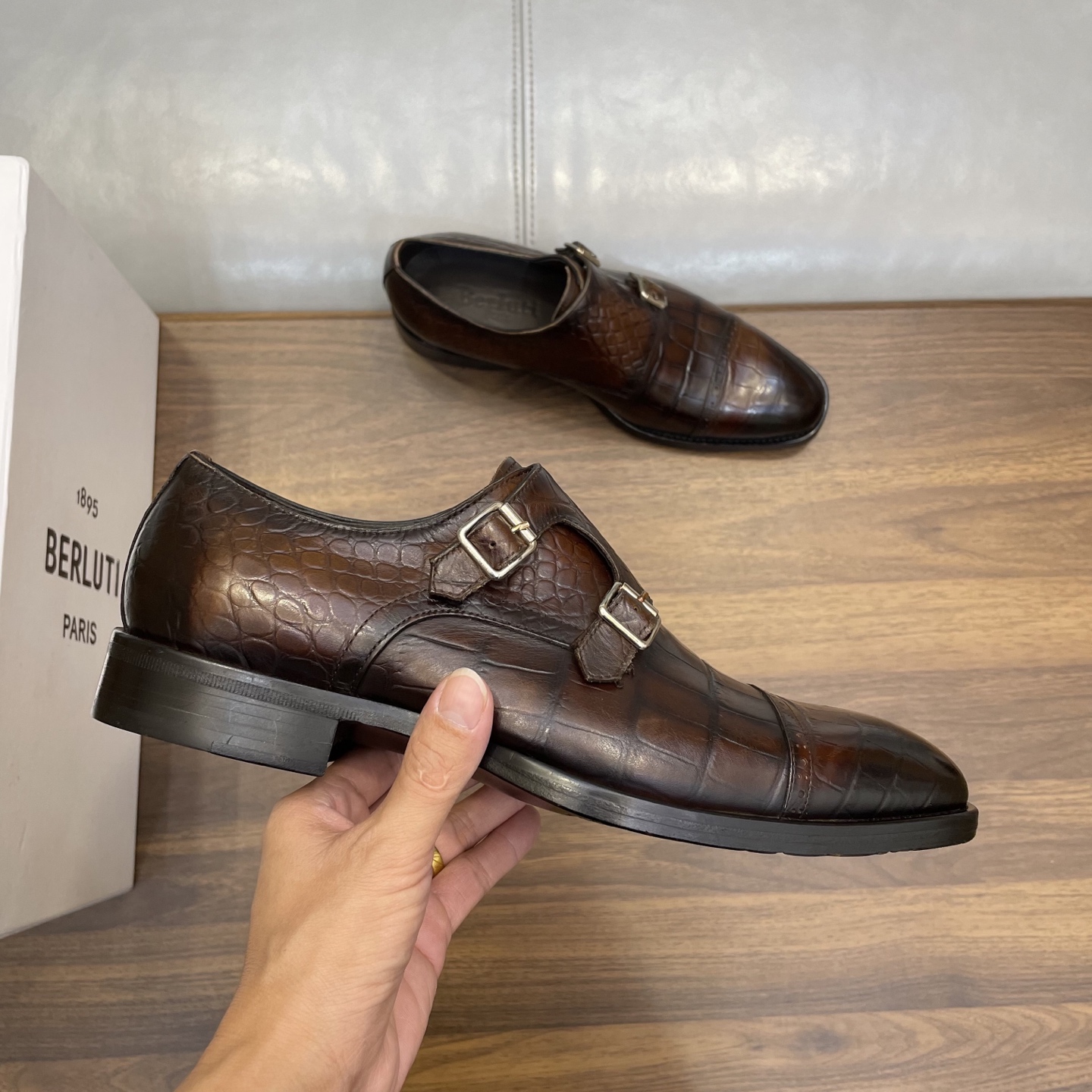 這款鞋子是AAAAA 1:1 質量(非常棒). 使用了和原版一模一樣的材料. 商標部分也保持了和Berluti一樣. 圖片拍攝是實物鞋子拍攝, 您所收到的實物保證和我們圖片一模一樣.