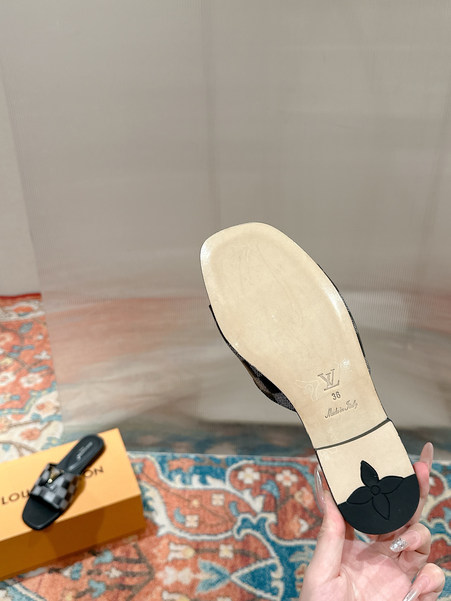 這款鞋子是AAAAA 1:1 質量(非常棒). 使用了和原版一模一樣的材料. 商標部分也保持了和路易威登/Louis Vuitton一樣. 圖片拍攝是實物鞋子拍攝, 您所收到的實物保證和我們圖片一模一樣.