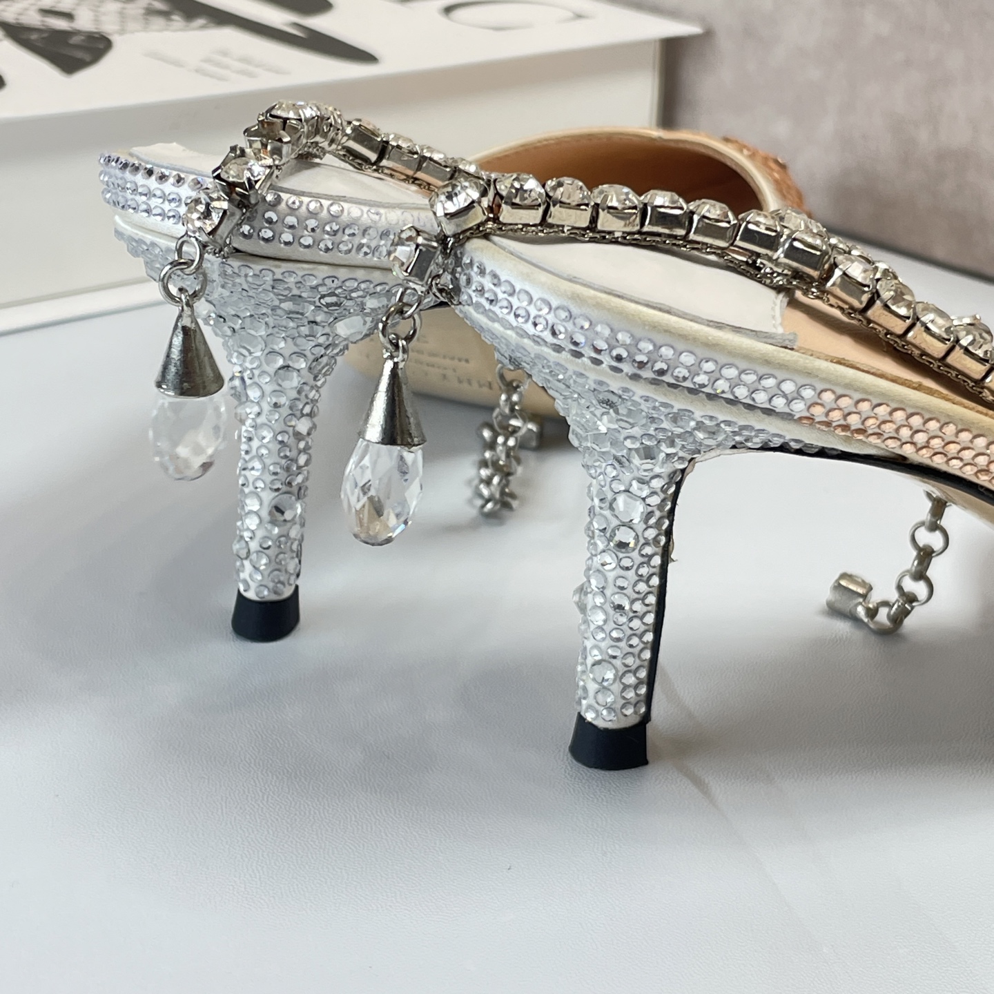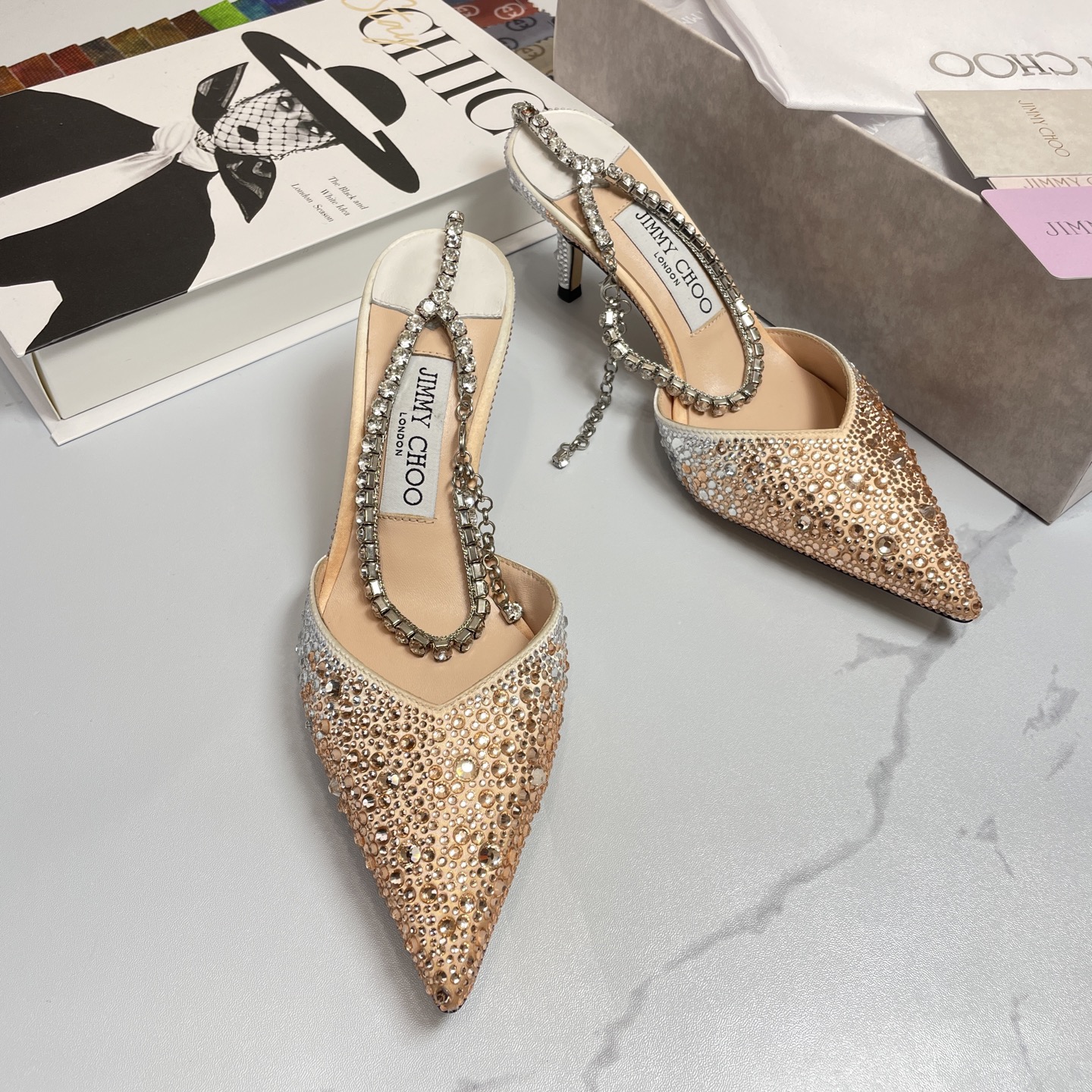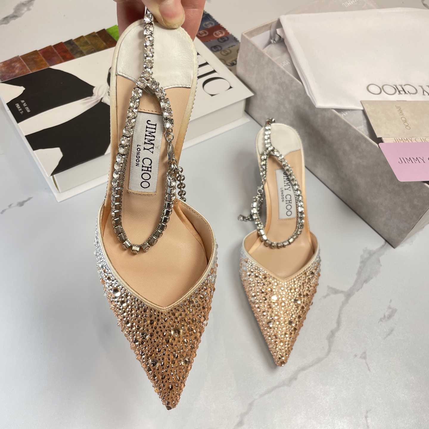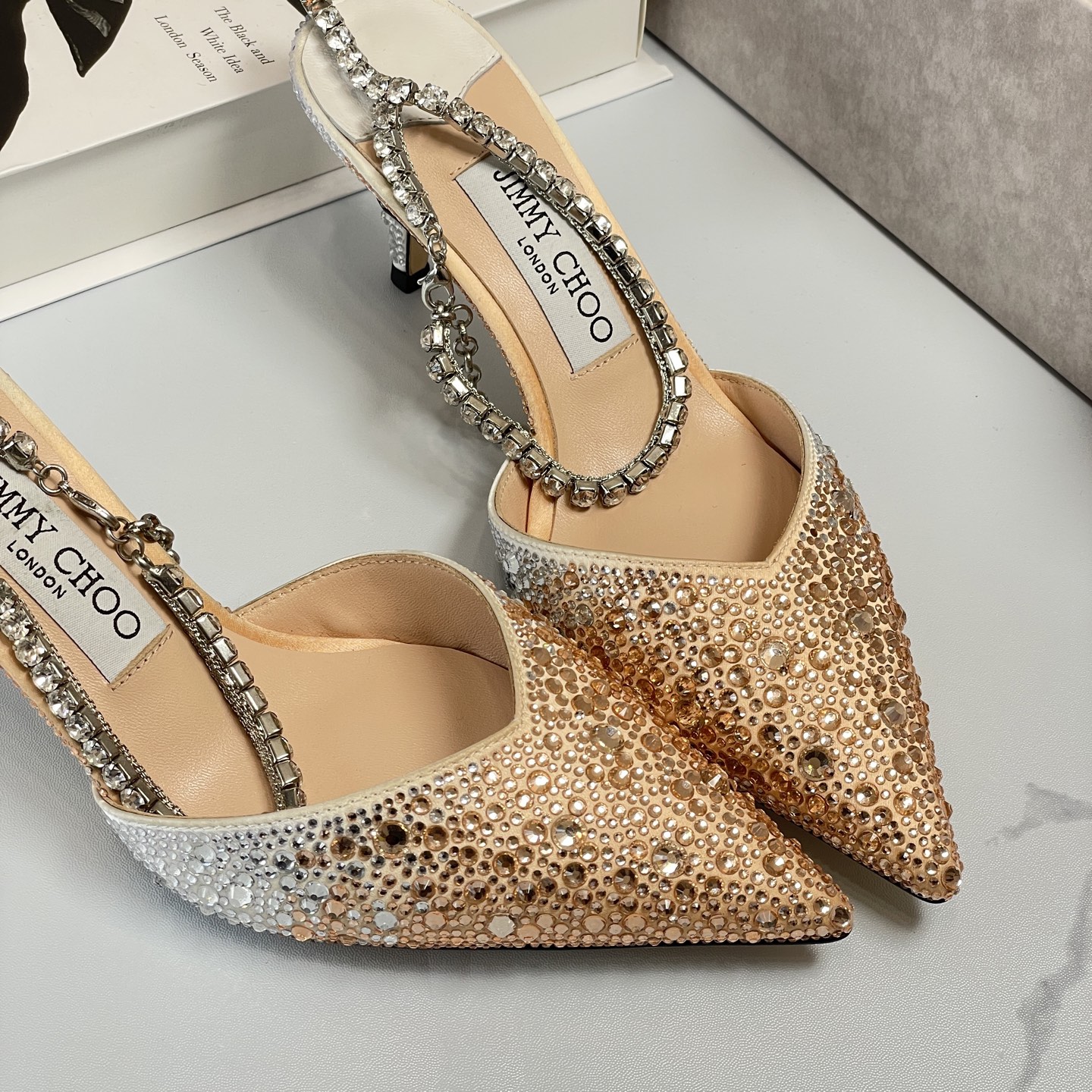 這款鞋子是AAAAA 1:1 質量(非常棒). 使用了和原版一模一樣的材料. 商標部分也保持了和吉米喬/JIMMY CHOO一樣. 圖片拍攝是實物鞋子拍攝, 您所收到的實物保證和我們圖片一模一樣.