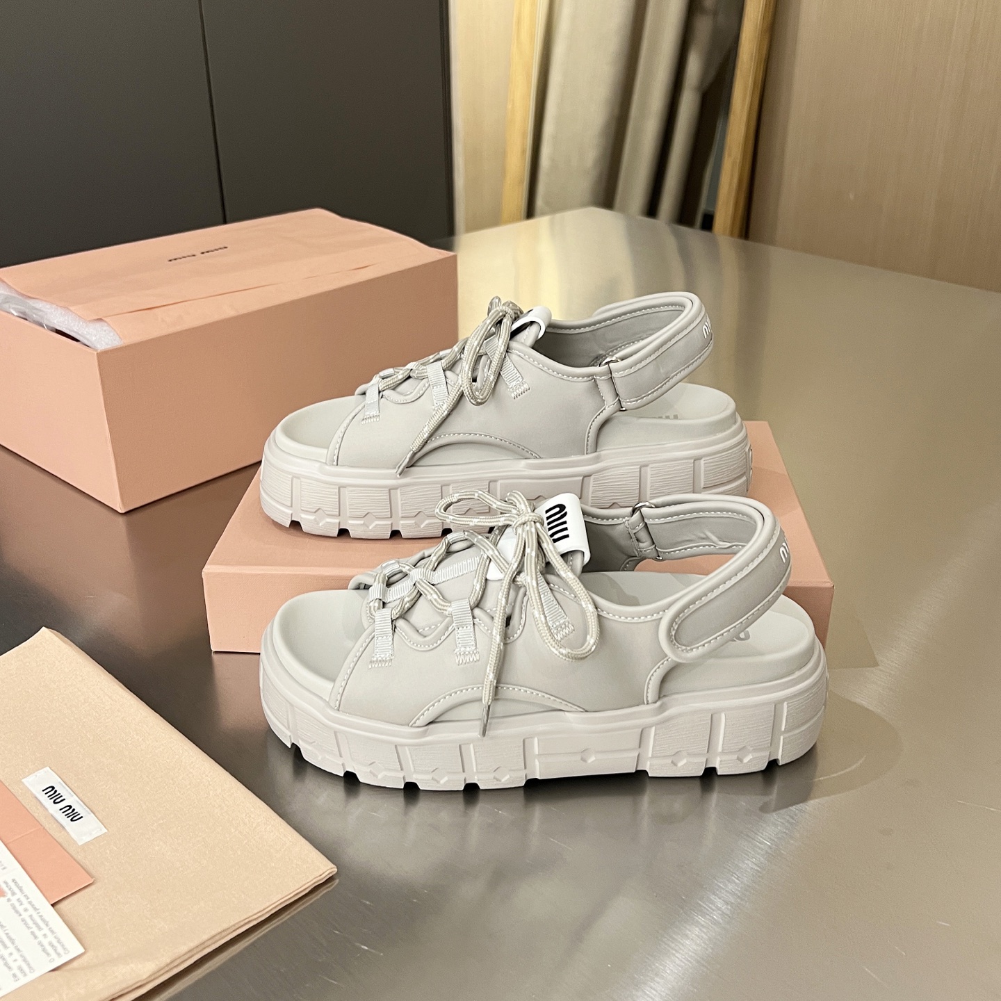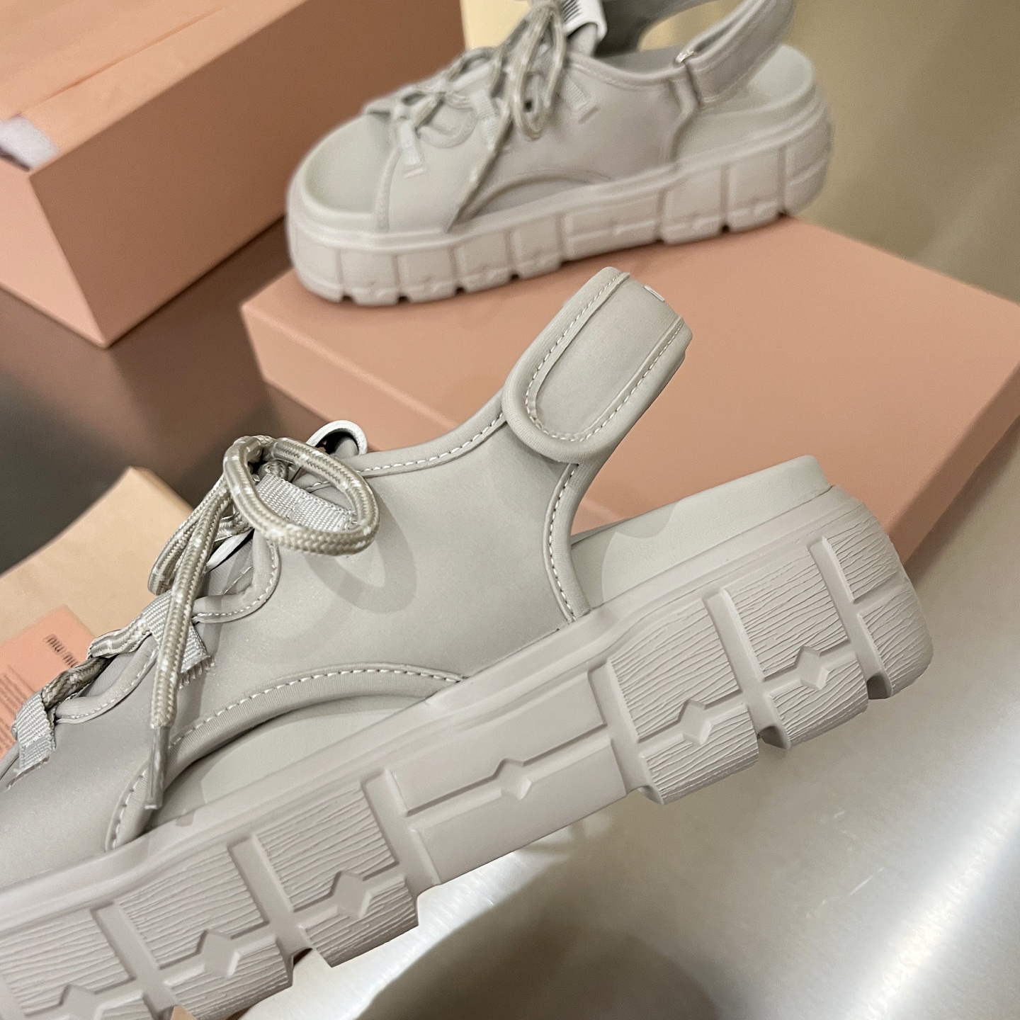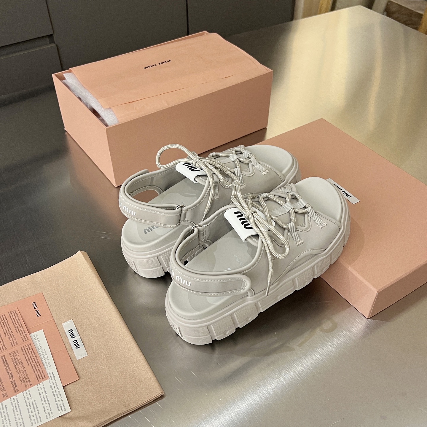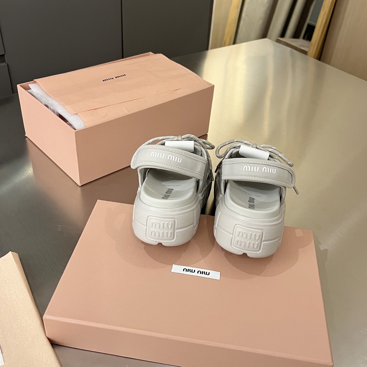 這款鞋子是AAAAA 1:1 質量(非常棒). 使用了和原版一模一樣的材料. 商標部分也保持了和繆繆/Miu Miu一樣. 圖片拍攝是實物鞋子拍攝, 您所收到的實物保證和我們圖片一模一樣.
