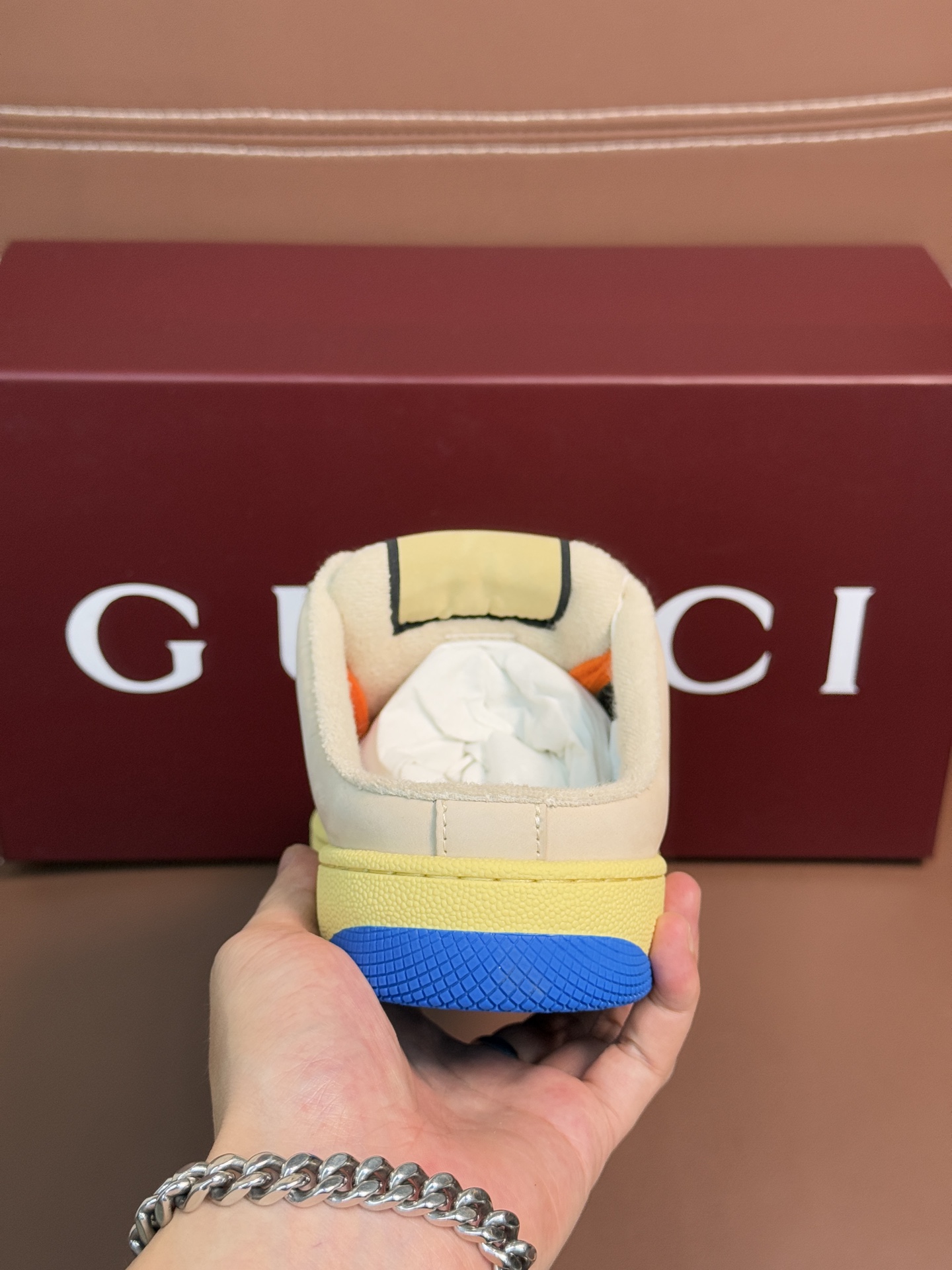 這款鞋子是AAAAA 1:1 質量(非常棒). 使用了和原版一模一樣的材料. 商標部分也保持了和古奇/Gucci一樣. 圖片拍攝是實物鞋子拍攝, 您所收到的實物保證和我們圖片一模一樣.