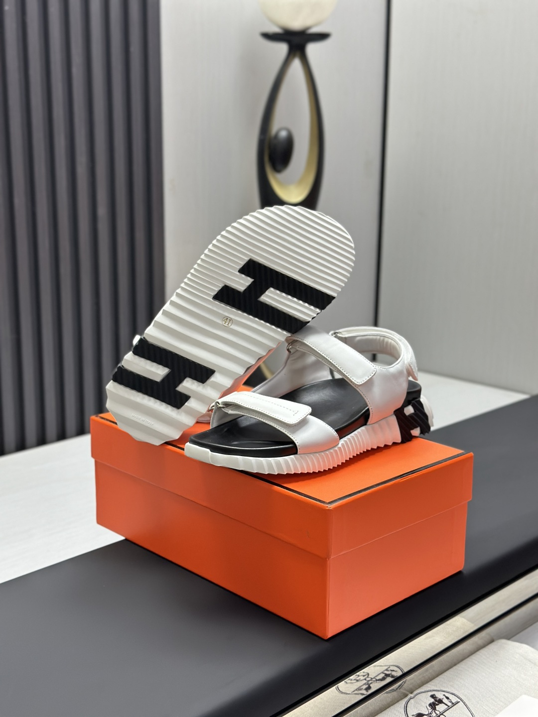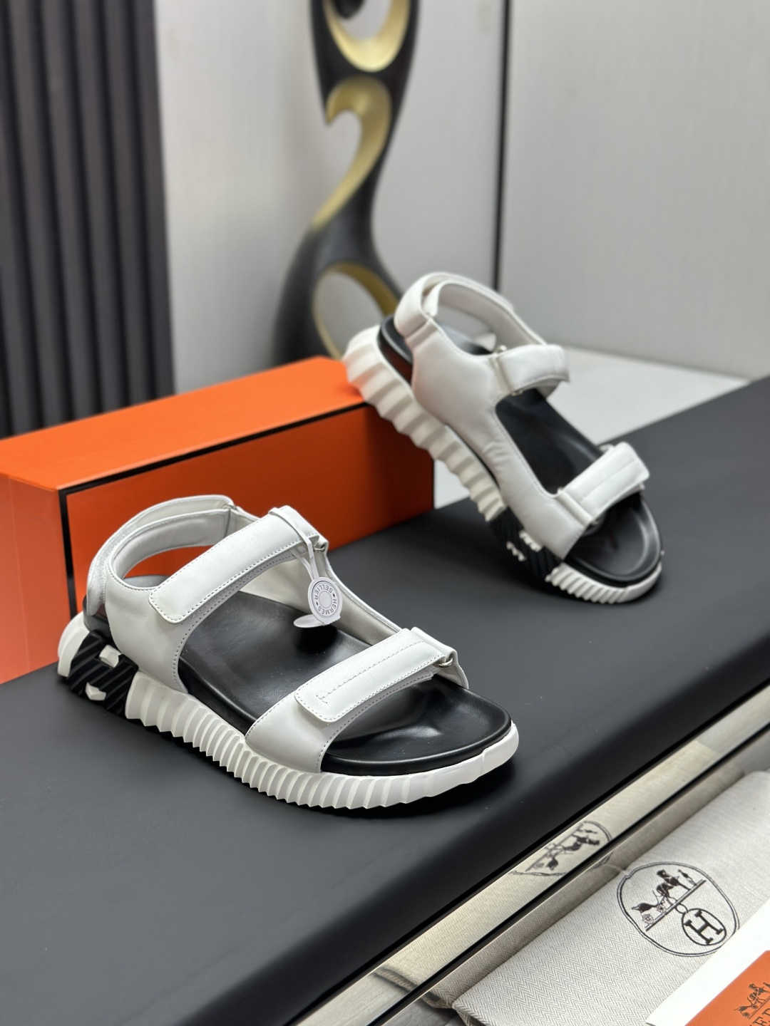 這款鞋子是AAAAA 1:1 質量(非常棒). 使用了和原版一模一樣的材料. 商標部分也保持了和愛馬仕/Hermes一樣. 圖片拍攝是實物鞋子拍攝, 您所收到的實物保證和我們圖片一模一樣.