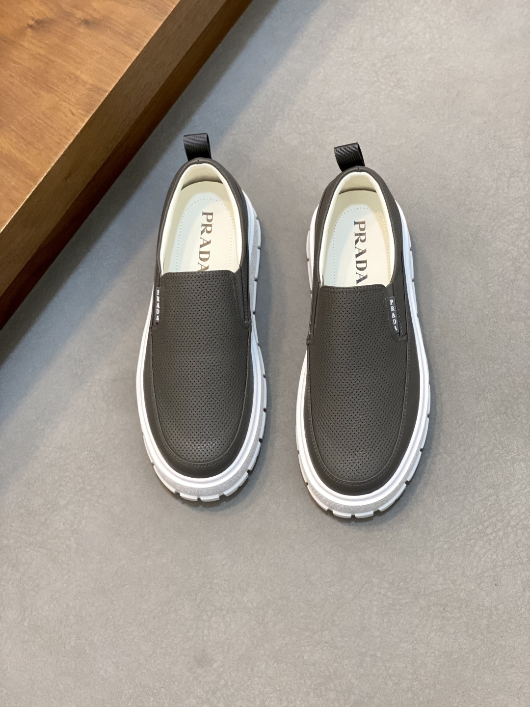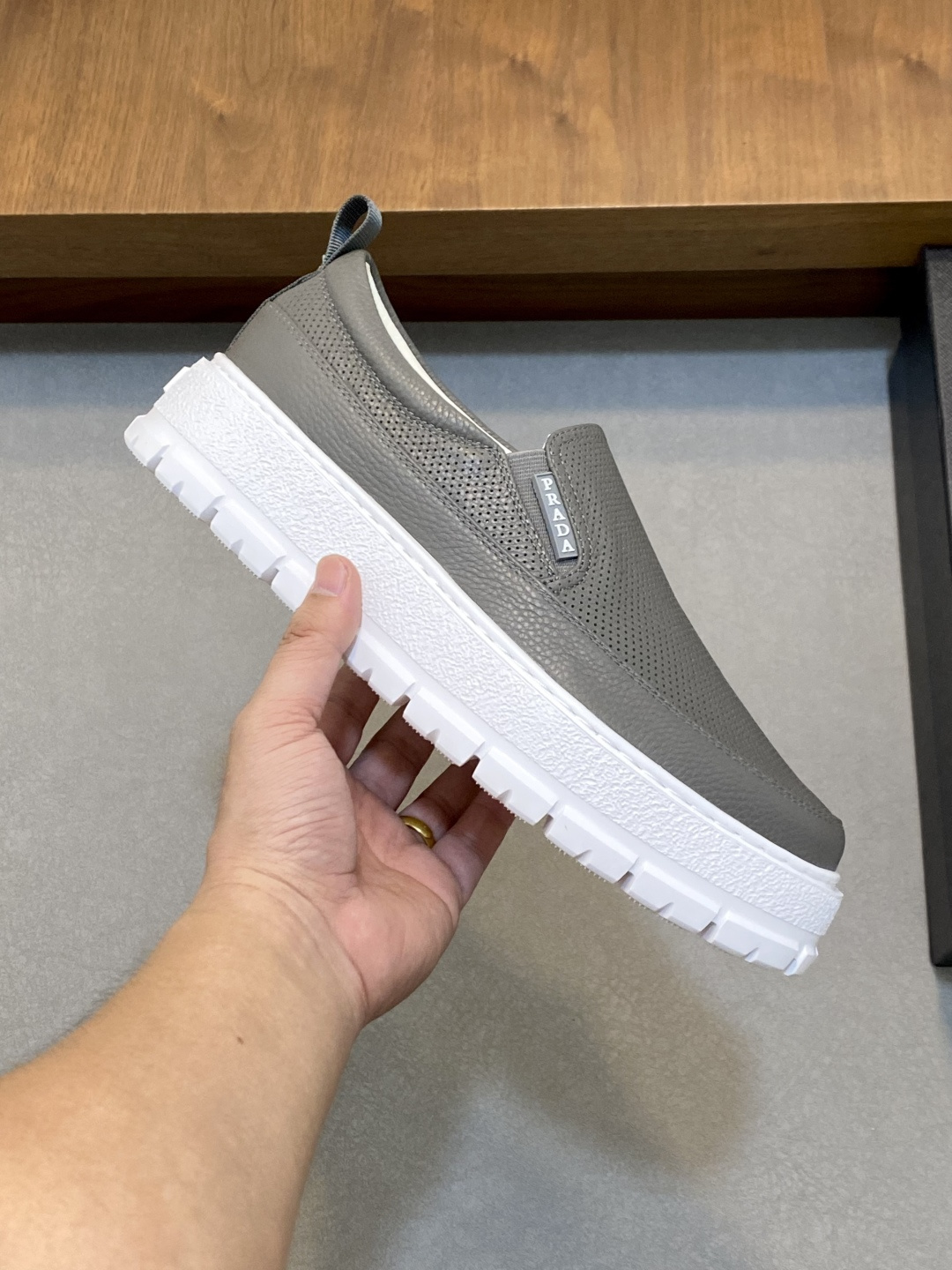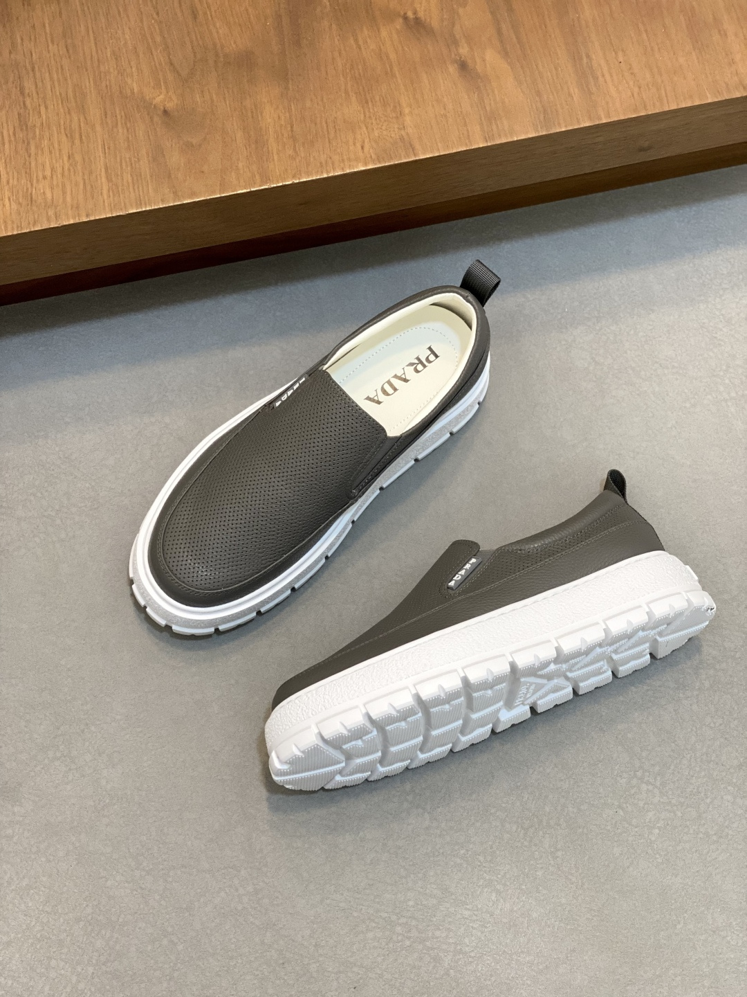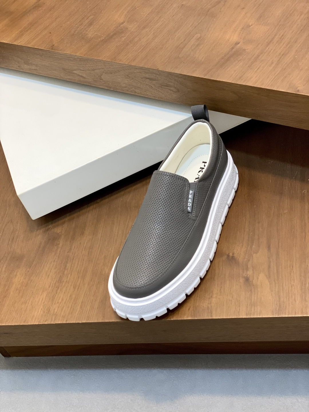 這款鞋子是AAAAA 1:1 質量(非常棒). 使用了和原版一模一樣的材料. 商標部分也保持了和普拉達/Prada一樣. 圖片拍攝是實物鞋子拍攝, 您所收到的實物保證和我們圖片一模一樣.