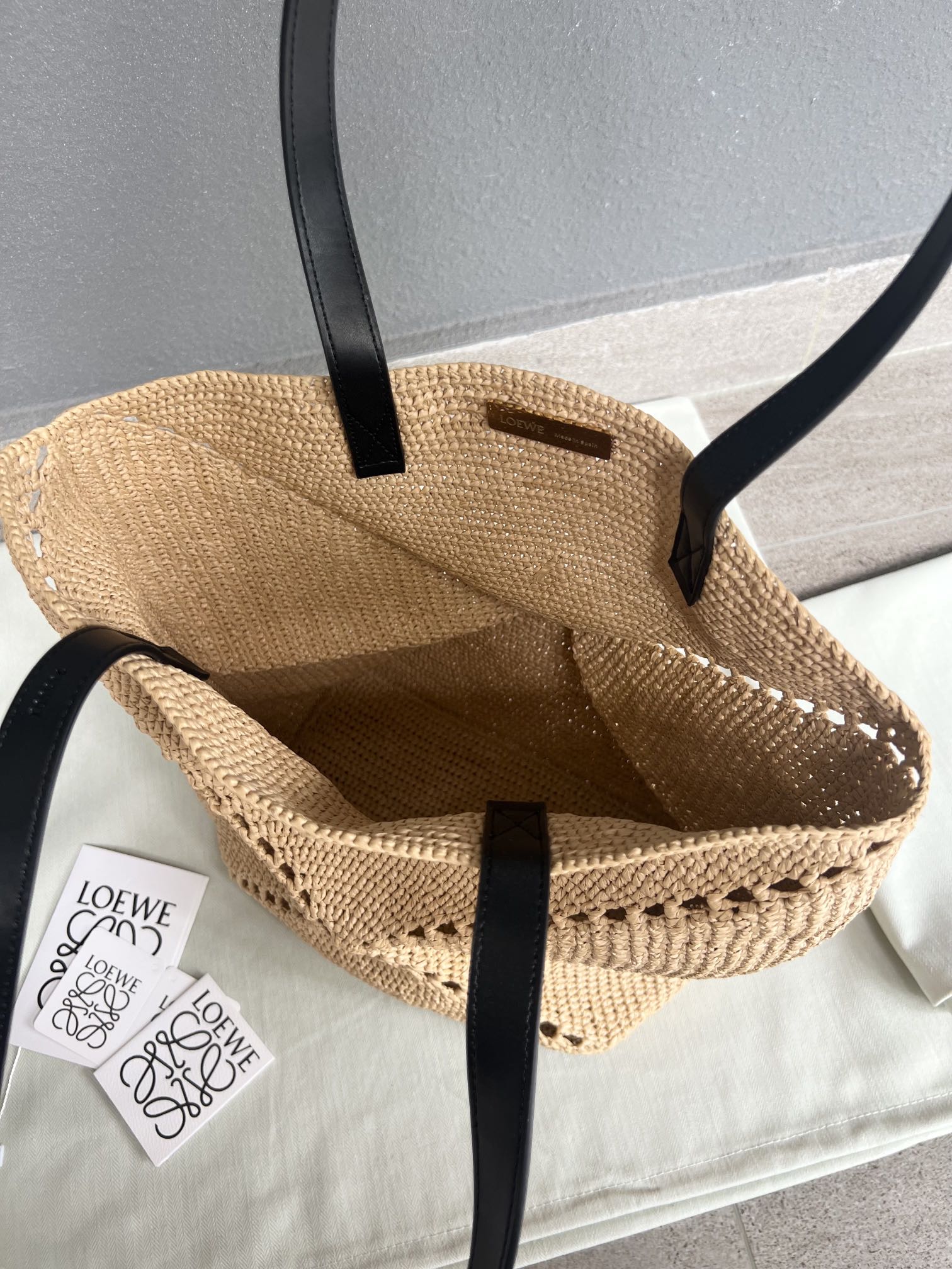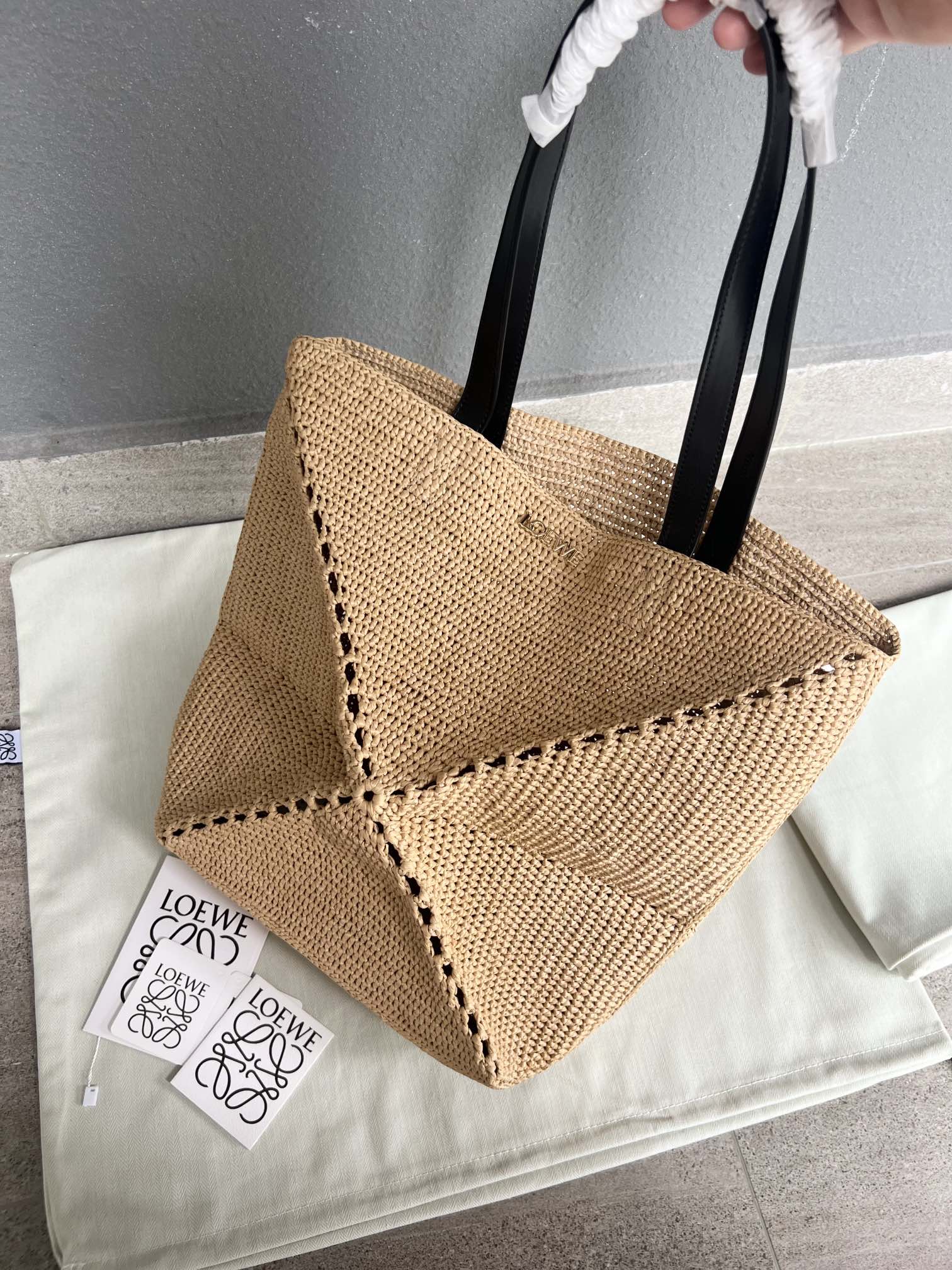 這款包包是AAAAA 1:1 質量(非常棒). 使用了和原版一模一樣的材料. 商標部分也保持了和Loewe一樣. 圖片拍攝是實物包包拍攝, 您所收到的實物保證和我們圖片一模一樣.