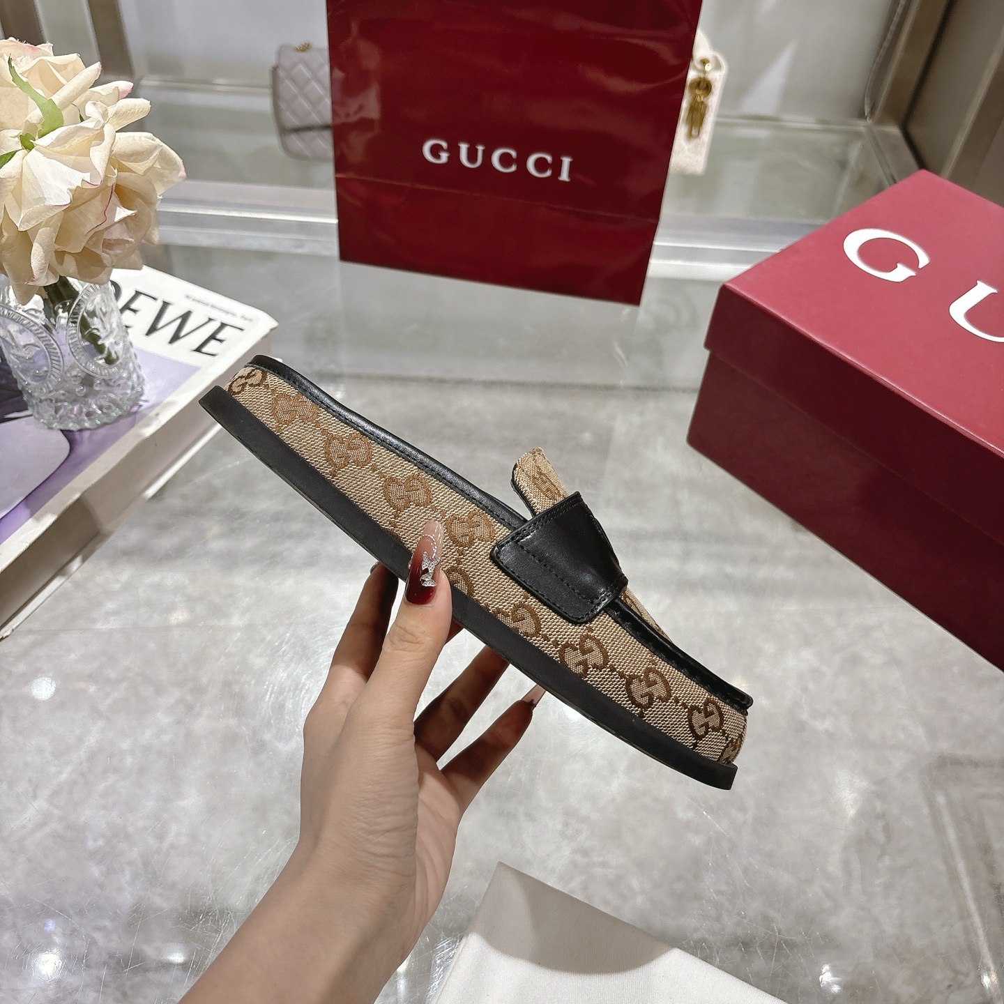 這款鞋子是AAAAA 1:1 質量(非常棒). 使用了和原版一模一樣的材料. 商標部分也保持了和古奇/Gucci一樣. 圖片拍攝是實物鞋子拍攝, 您所收到的實物保證和我們圖片一模一樣.