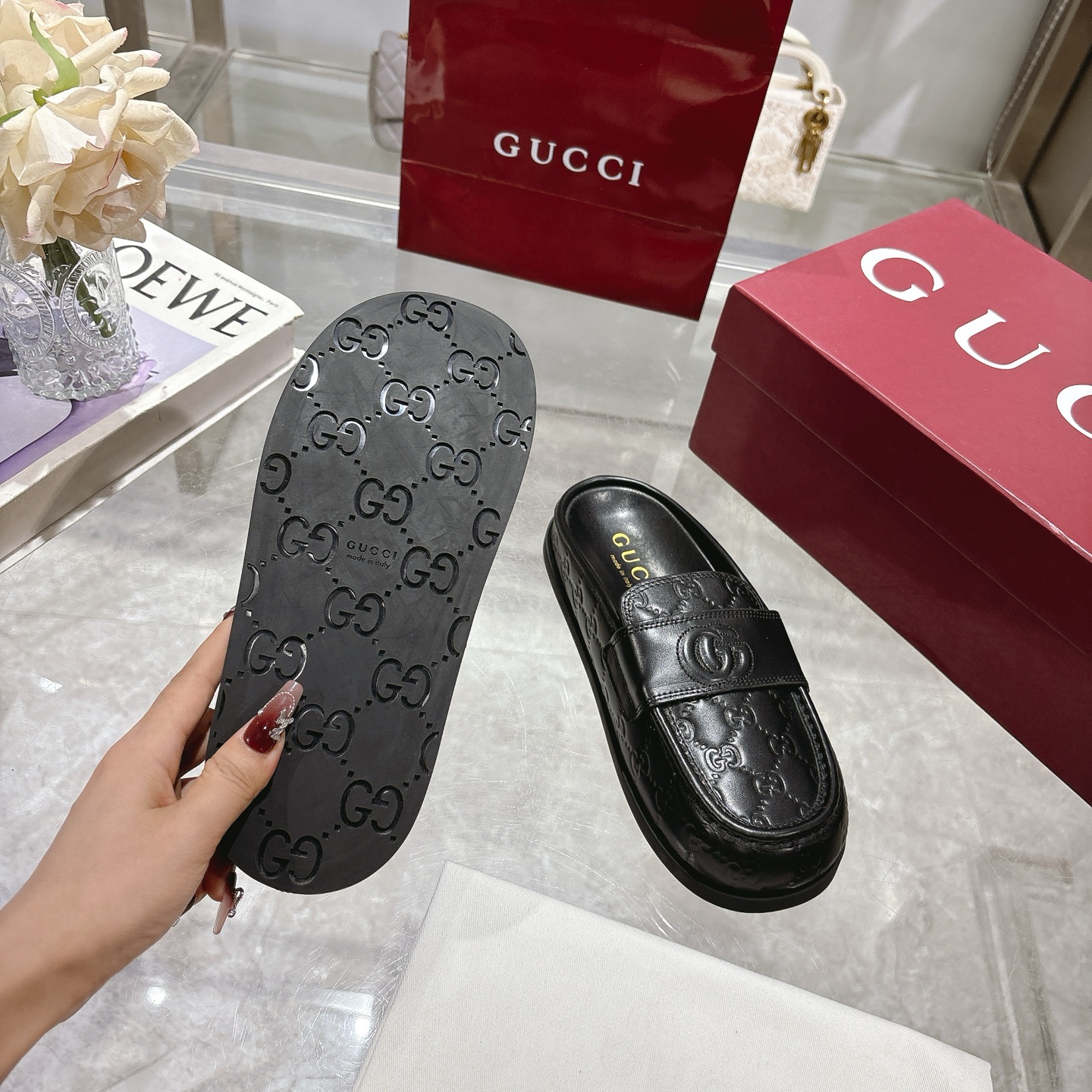 這款鞋子是AAAAA 1:1 質量(非常棒). 使用了和原版一模一樣的材料. 商標部分也保持了和古奇/Gucci一樣. 圖片拍攝是實物鞋子拍攝, 您所收到的實物保證和我們圖片一模一樣.