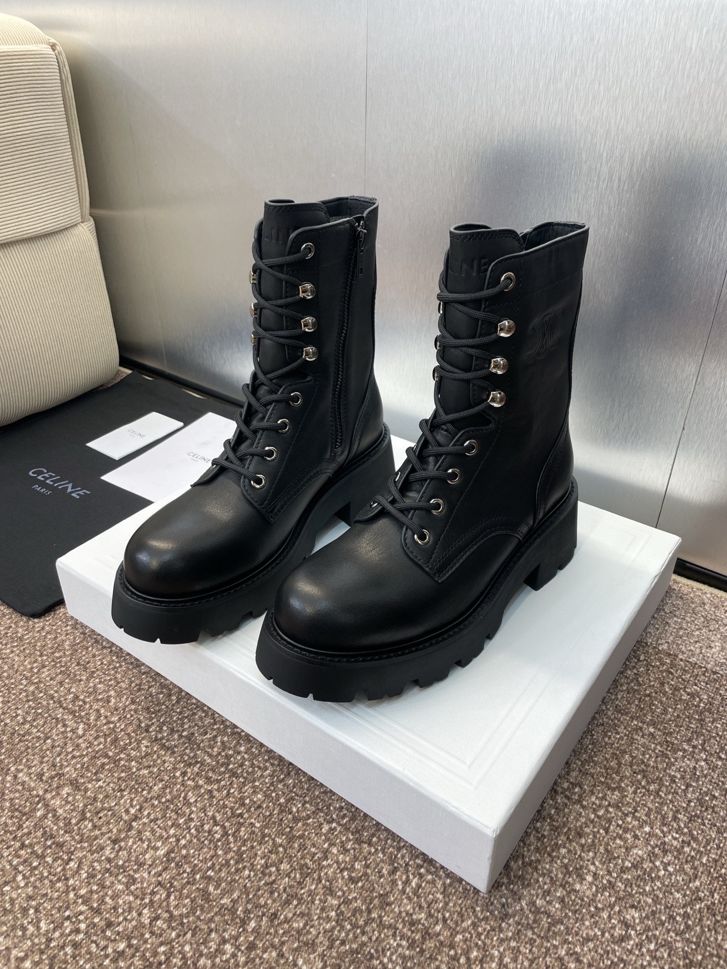 這款鞋子是AAAAA 1:1 質量(非常棒). 使用了和原版一模一樣的材料. 商標部分也保持了和思琳/赛琳/Celine一樣. 圖片拍攝是實物鞋子拍攝, 您所收到的實物保證和我們圖片一模一樣.