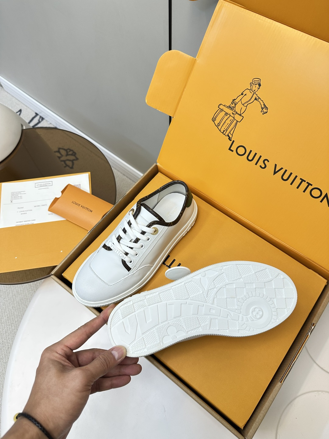 這款鞋子是AAAAA 1:1 質量(非常棒). 使用了和原版一模一樣的材料. 商標部分也保持了和路易威登/Louis Vuitton一樣. 圖片拍攝是實物鞋子拍攝, 您所收到的實物保證和我們圖片一模一樣.