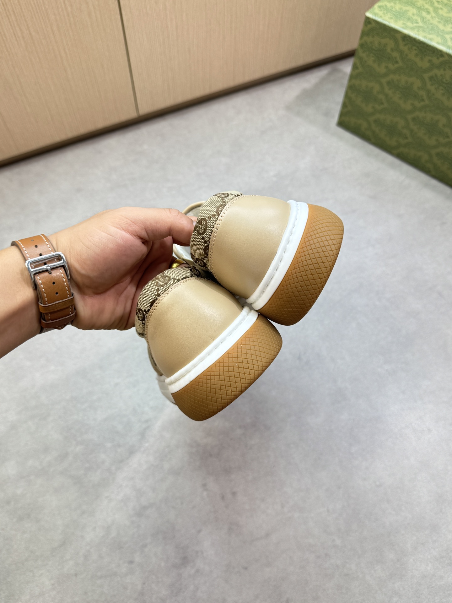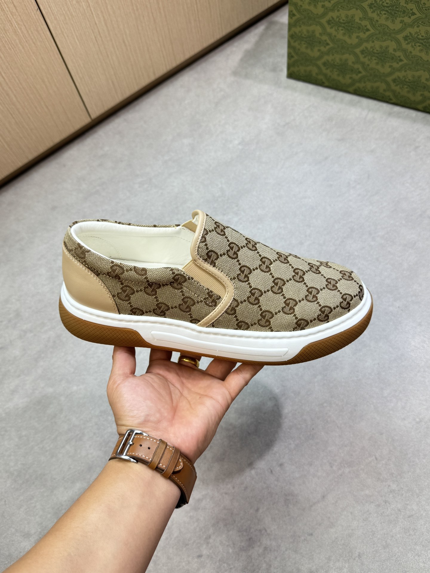 這款鞋子是AAAAA 1:1 質量(非常棒). 使用了和原版一模一樣的材料. 商標部分也保持了和古奇/Gucci一樣. 圖片拍攝是實物鞋子拍攝, 您所收到的實物保證和我們圖片一模一樣.