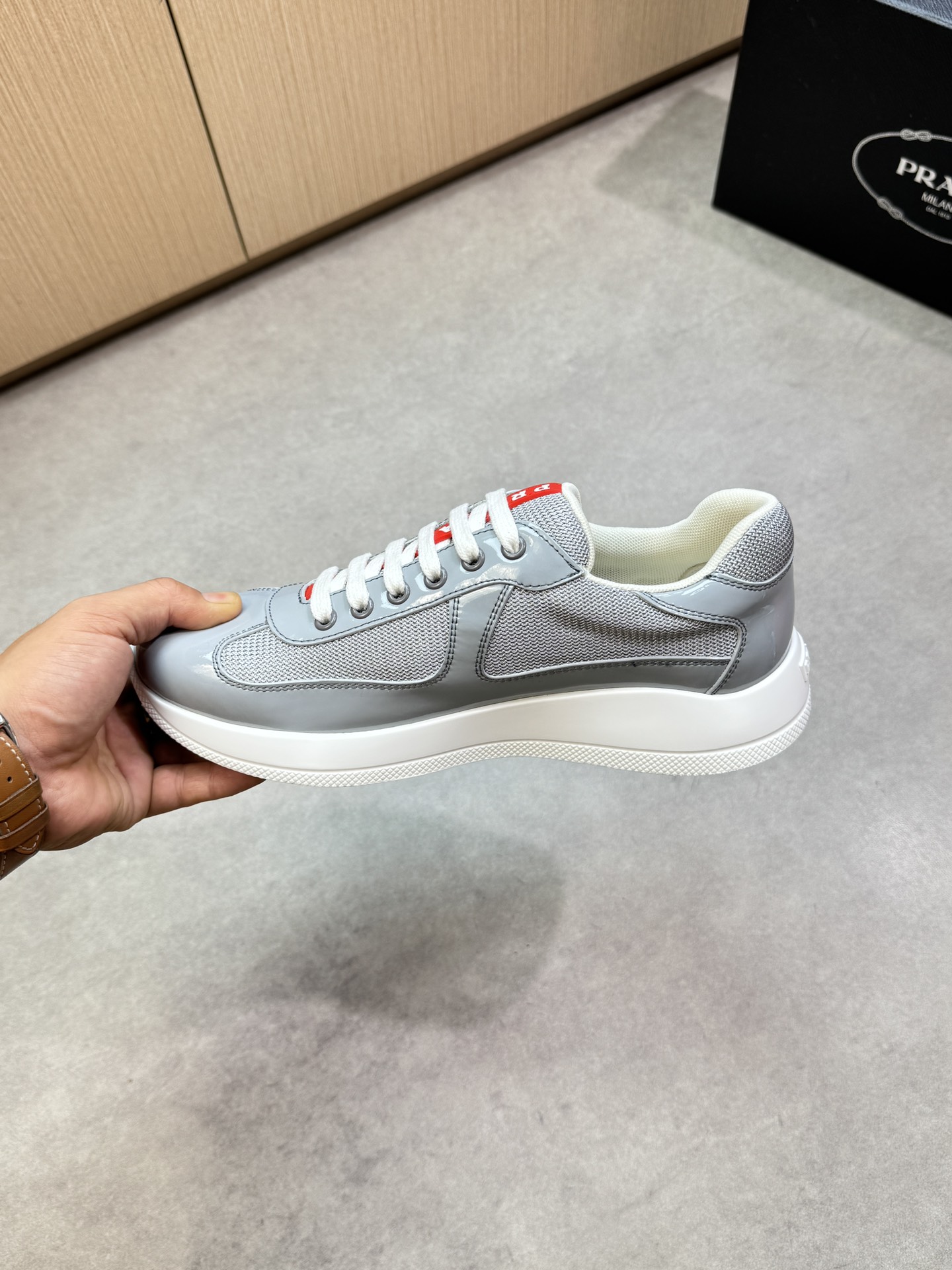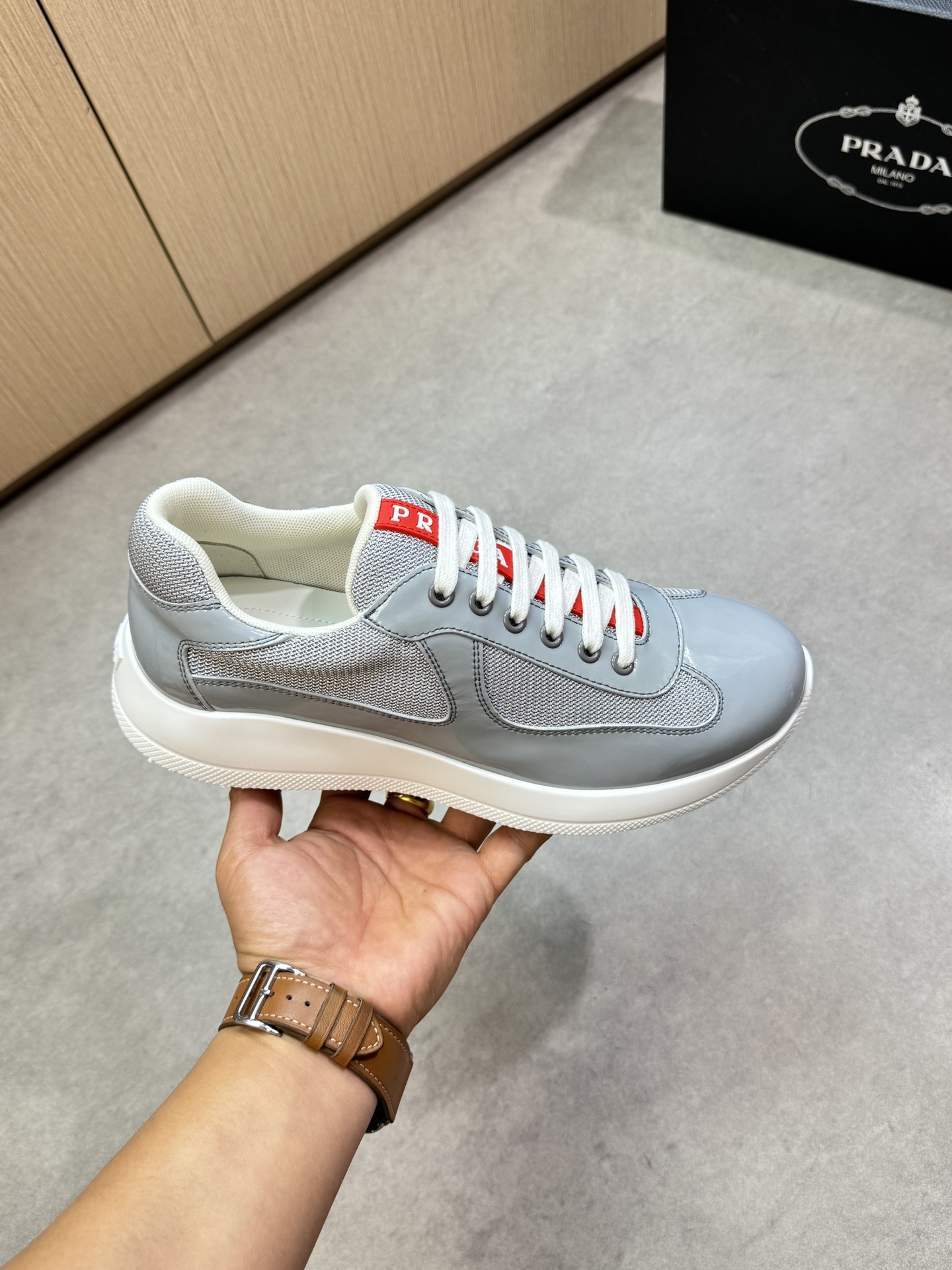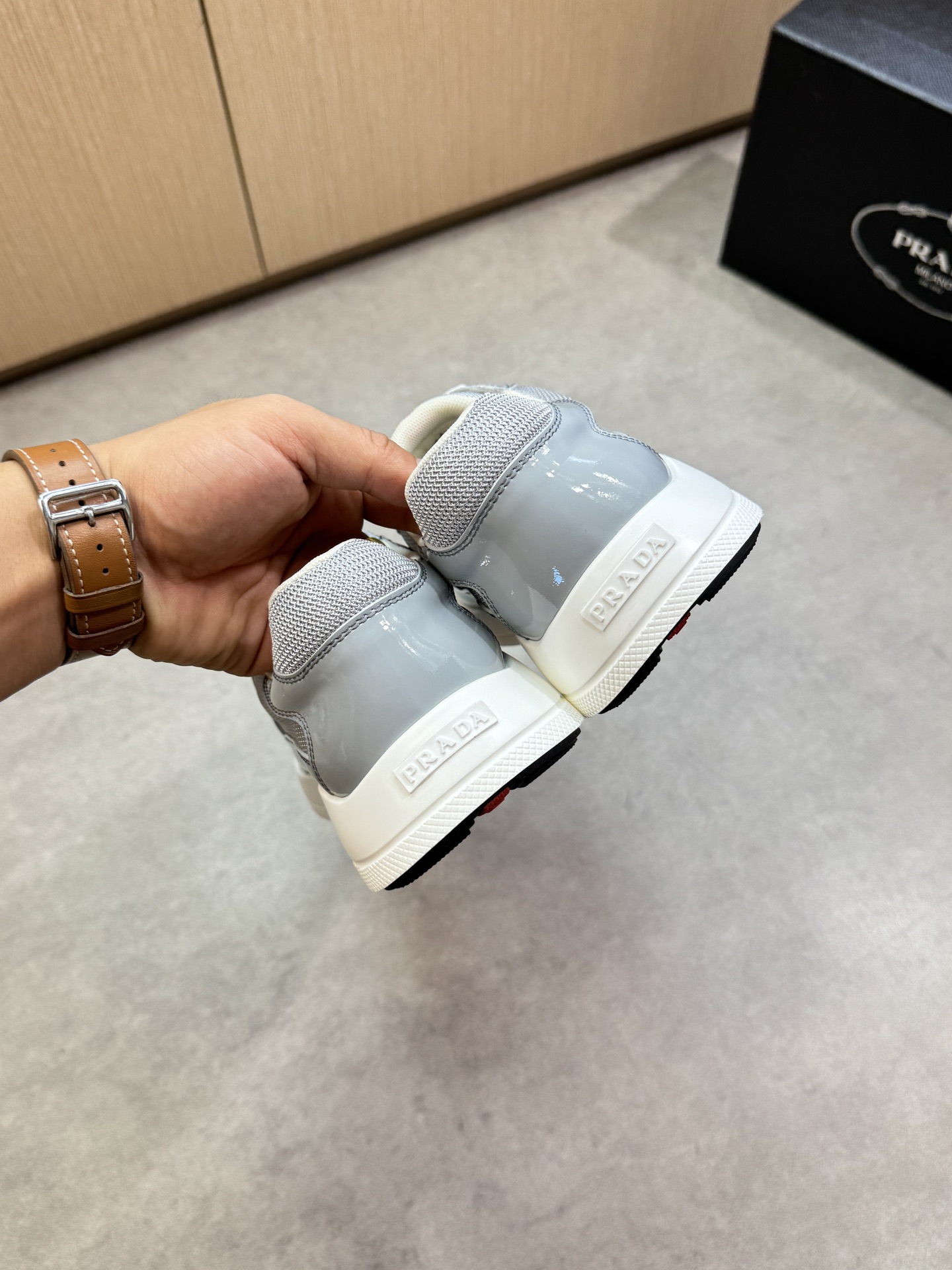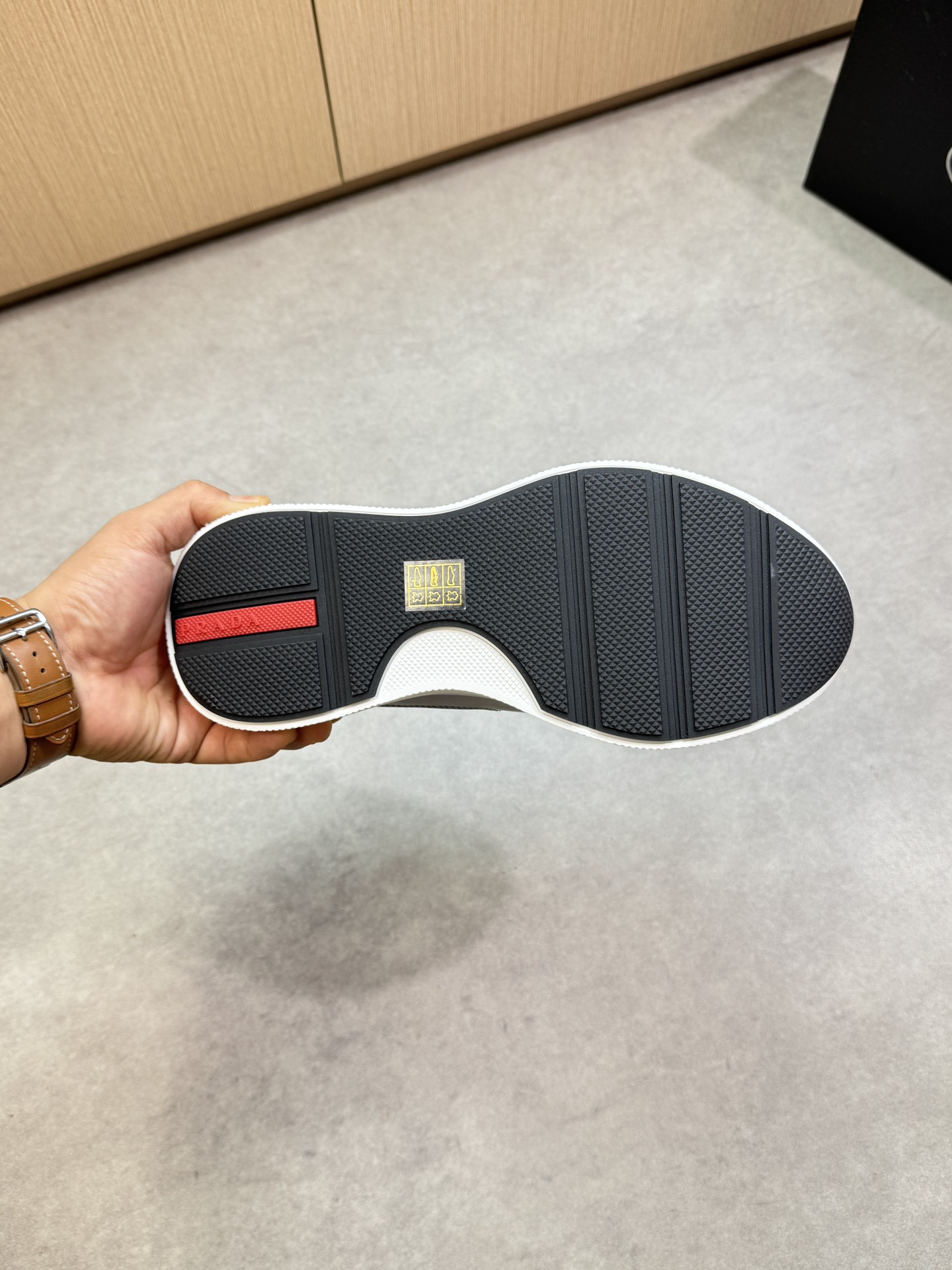 這款鞋子是AAAAA 1:1 質量(非常棒). 使用了和原版一模一樣的材料. 商標部分也保持了和普拉達/Prada一樣. 圖片拍攝是實物鞋子拍攝, 您所收到的實物保證和我們圖片一模一樣.