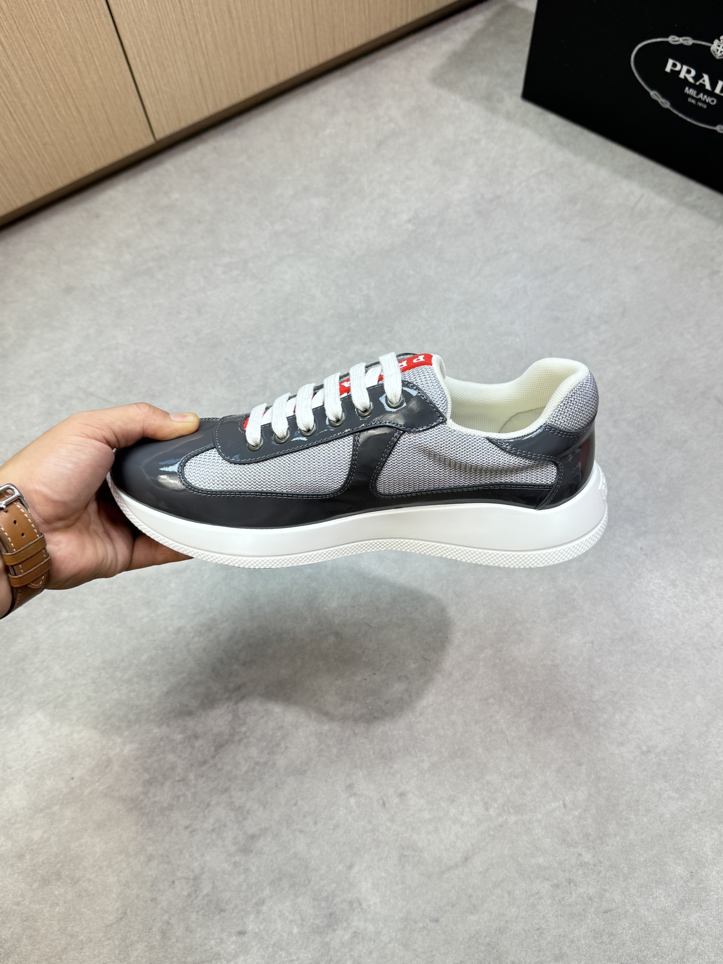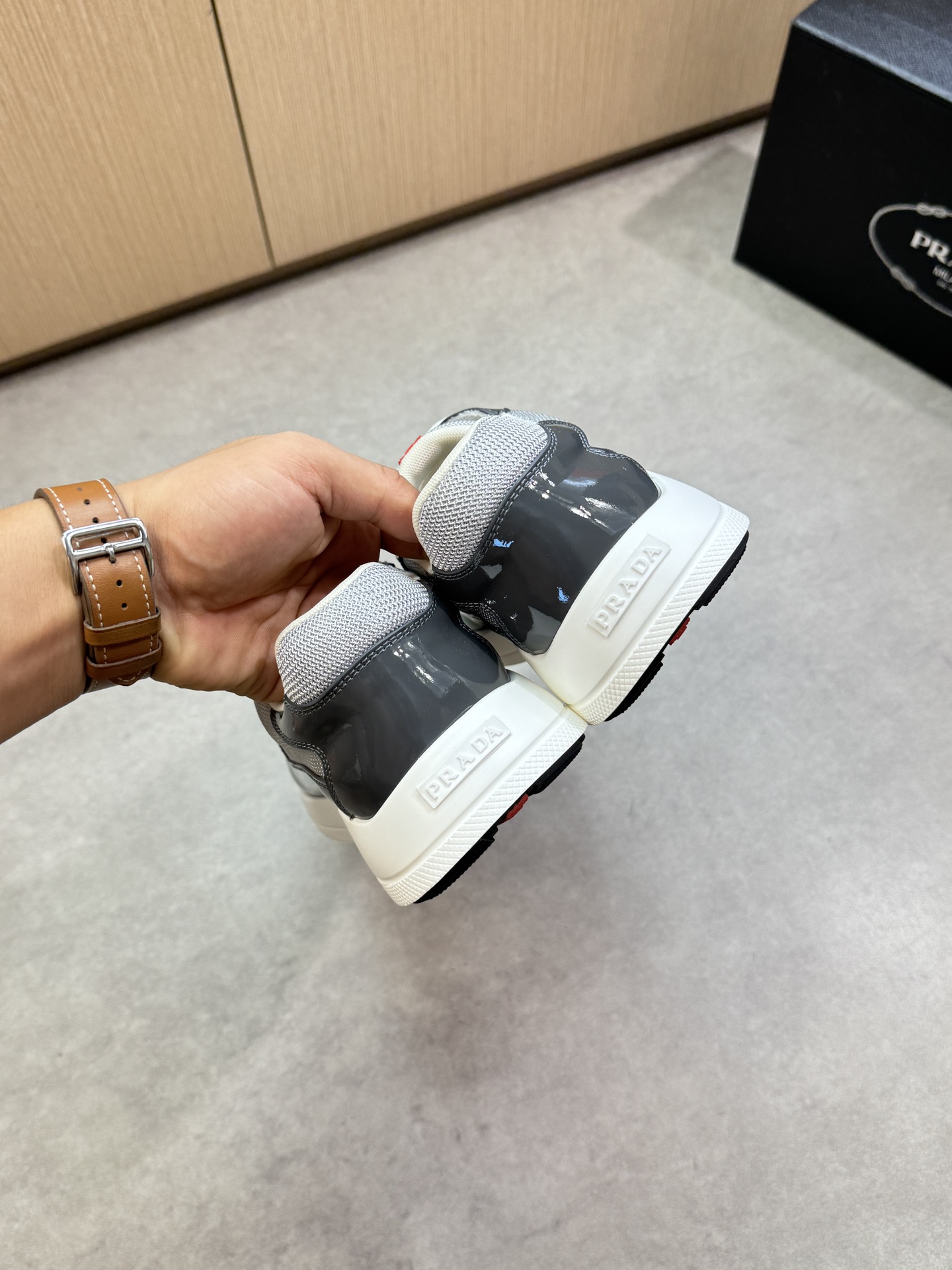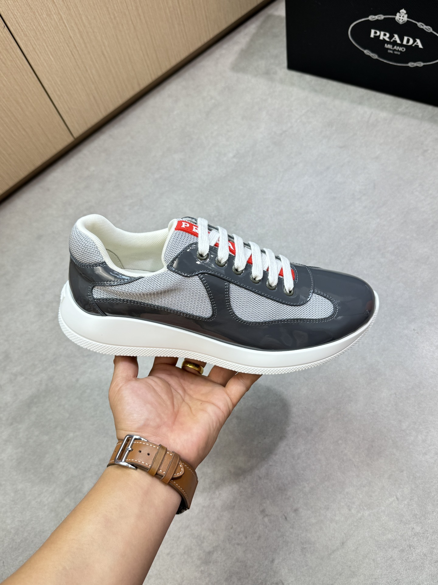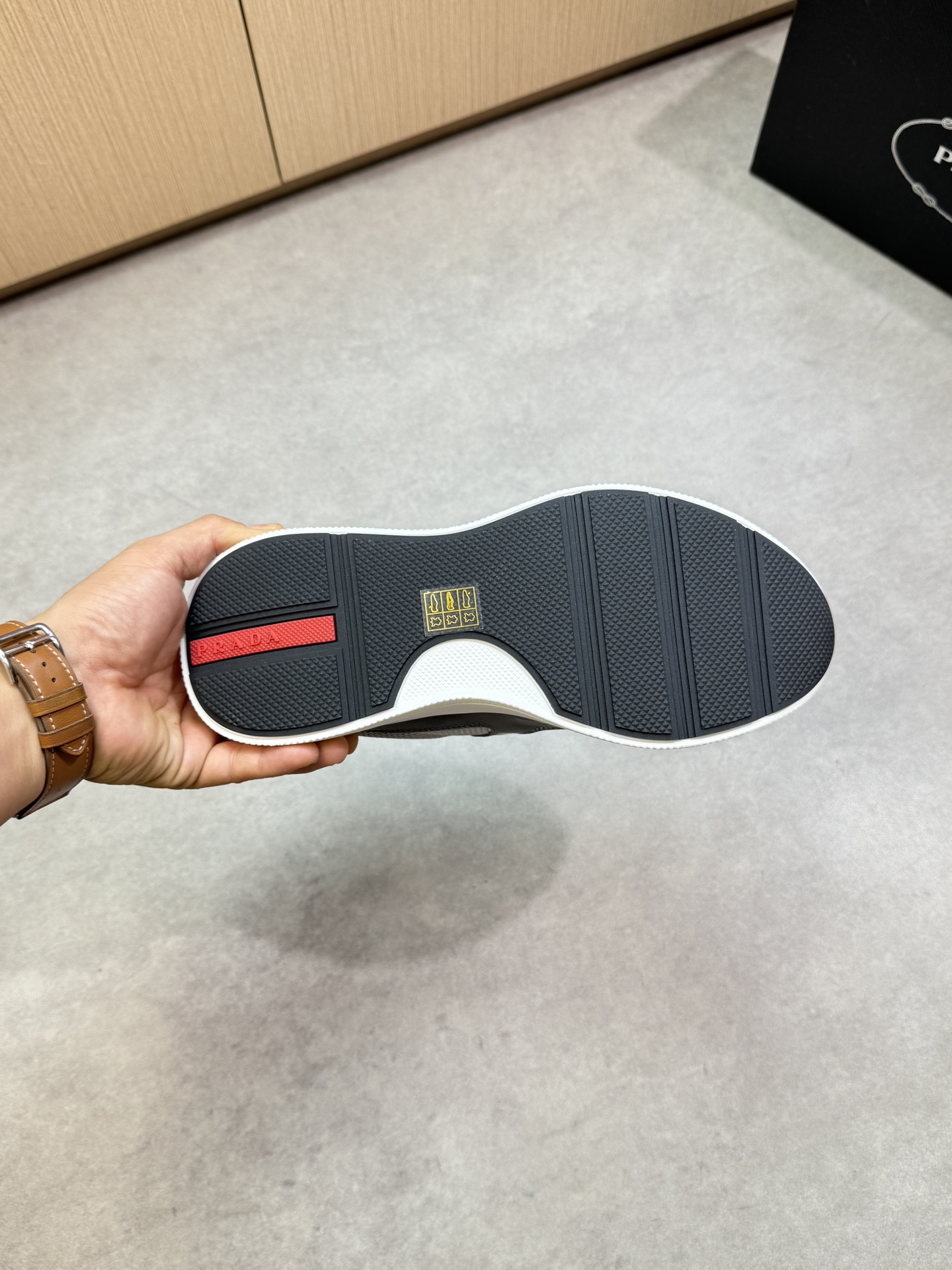 這款鞋子是AAAAA 1:1 質量(非常棒). 使用了和原版一模一樣的材料. 商標部分也保持了和普拉達/Prada一樣. 圖片拍攝是實物鞋子拍攝, 您所收到的實物保證和我們圖片一模一樣.