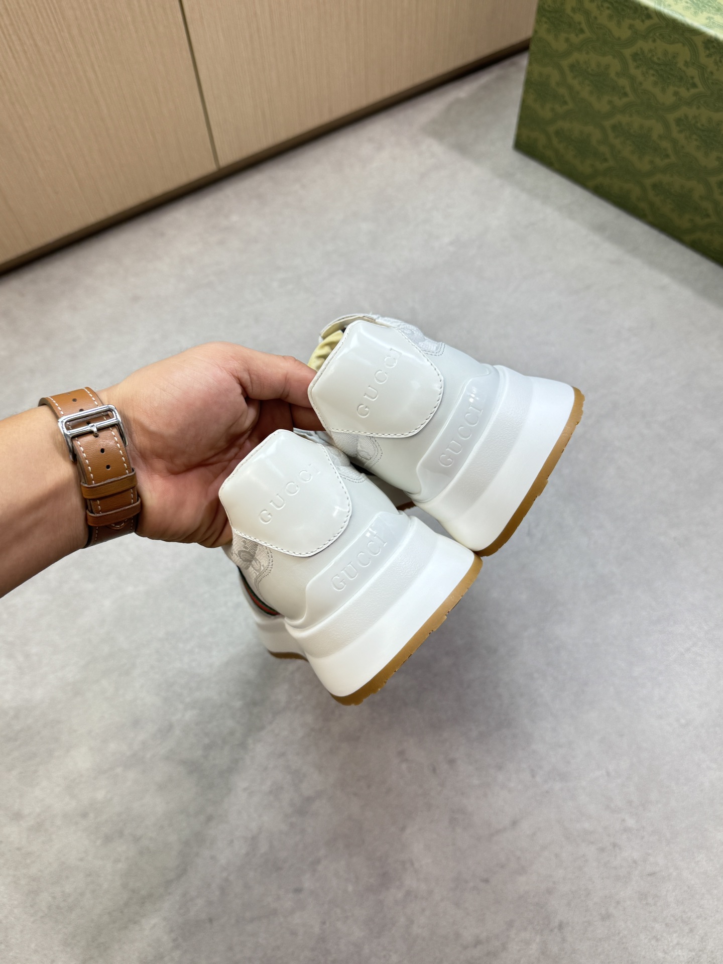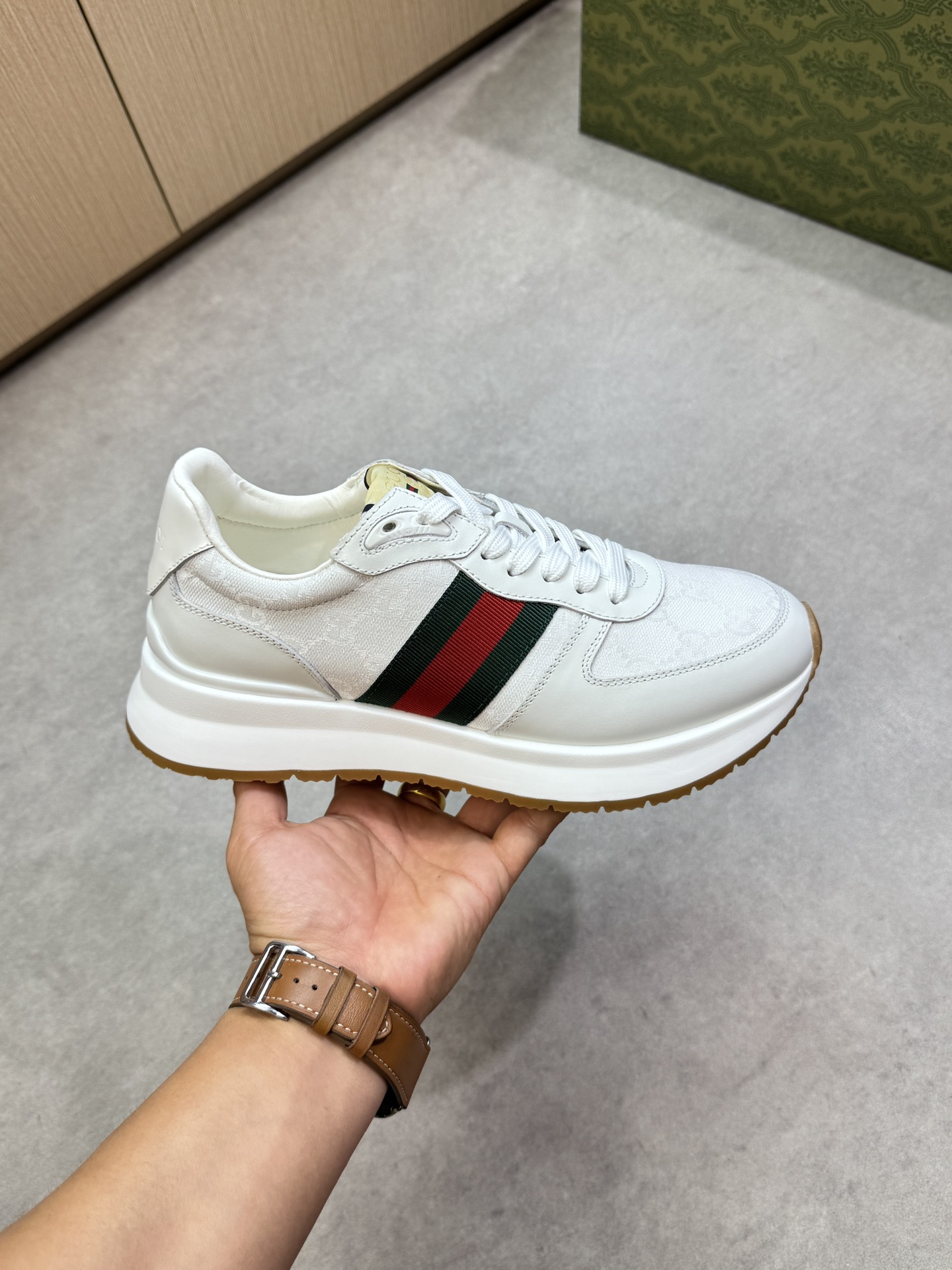 這款鞋子是AAAAA 1:1 質量(非常棒). 使用了和原版一模一樣的材料. 商標部分也保持了和古奇/Gucci一樣. 圖片拍攝是實物鞋子拍攝, 您所收到的實物保證和我們圖片一模一樣.