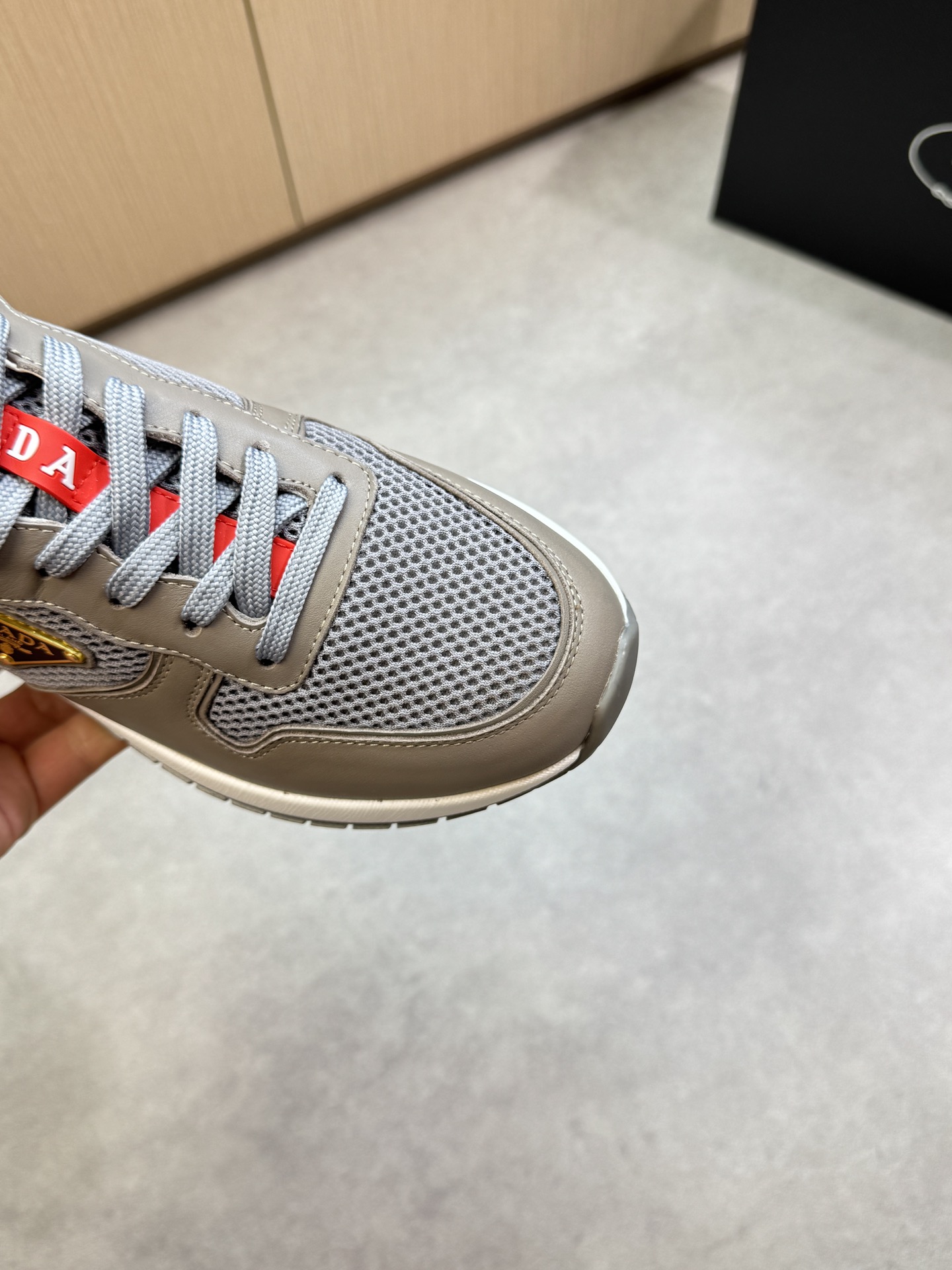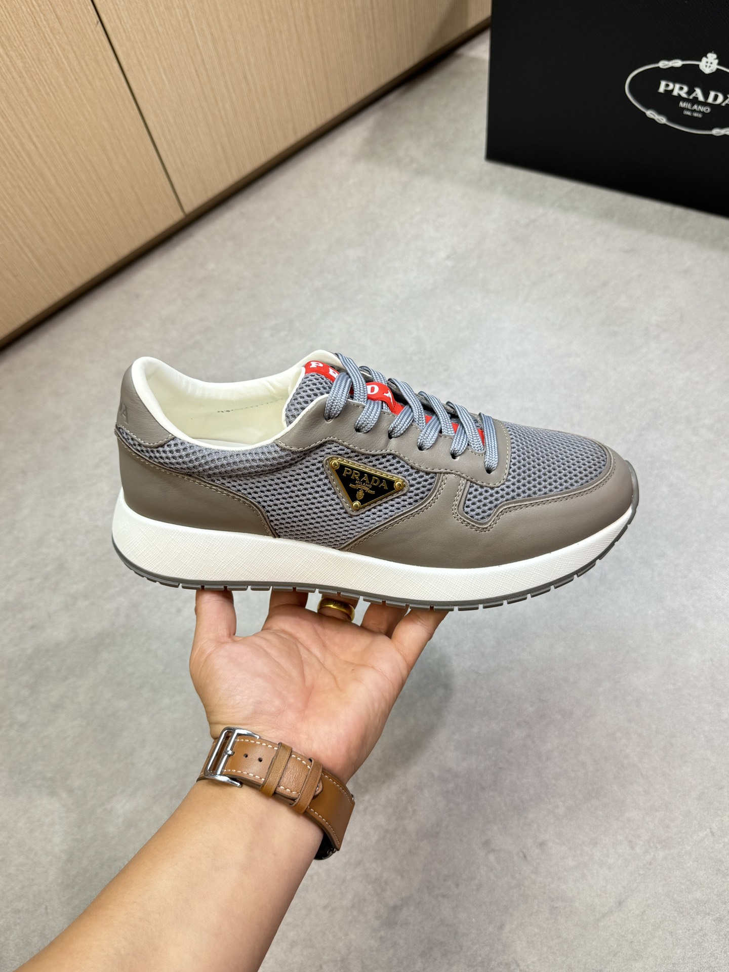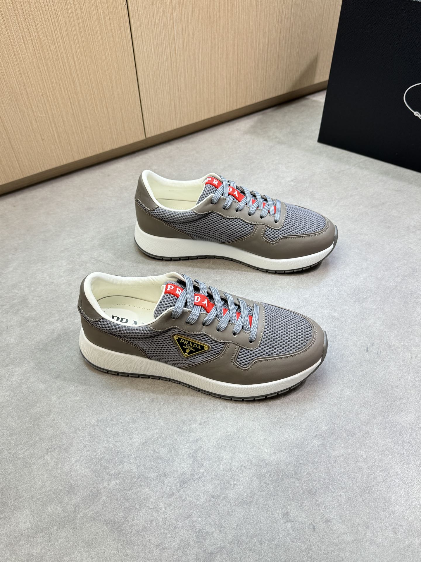 這款鞋子是AAAAA 1:1 質量(非常棒). 使用了和原版一模一樣的材料. 商標部分也保持了和普拉達/Prada一樣. 圖片拍攝是實物鞋子拍攝, 您所收到的實物保證和我們圖片一模一樣.