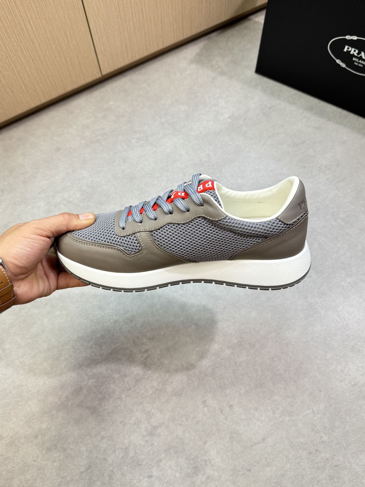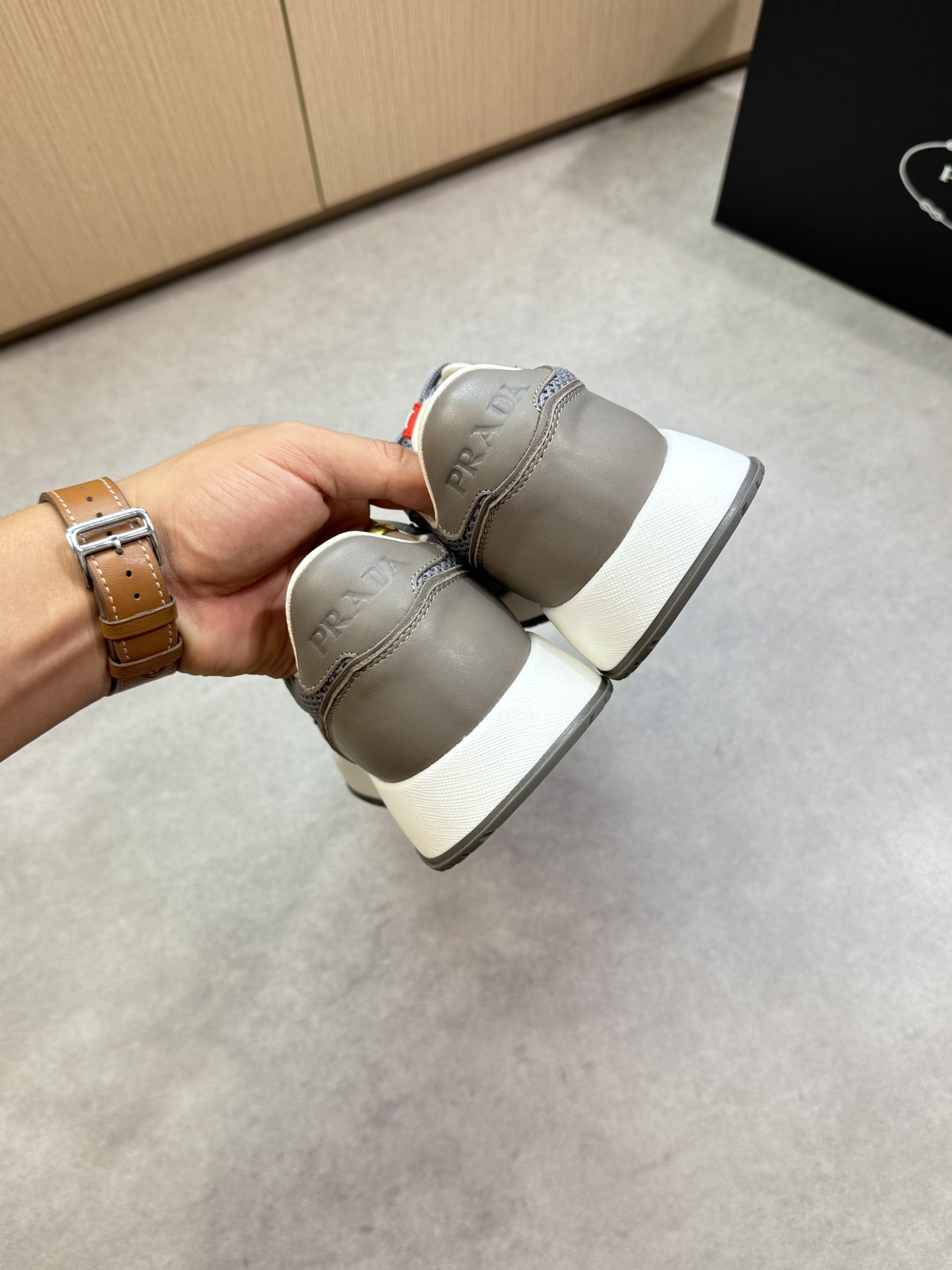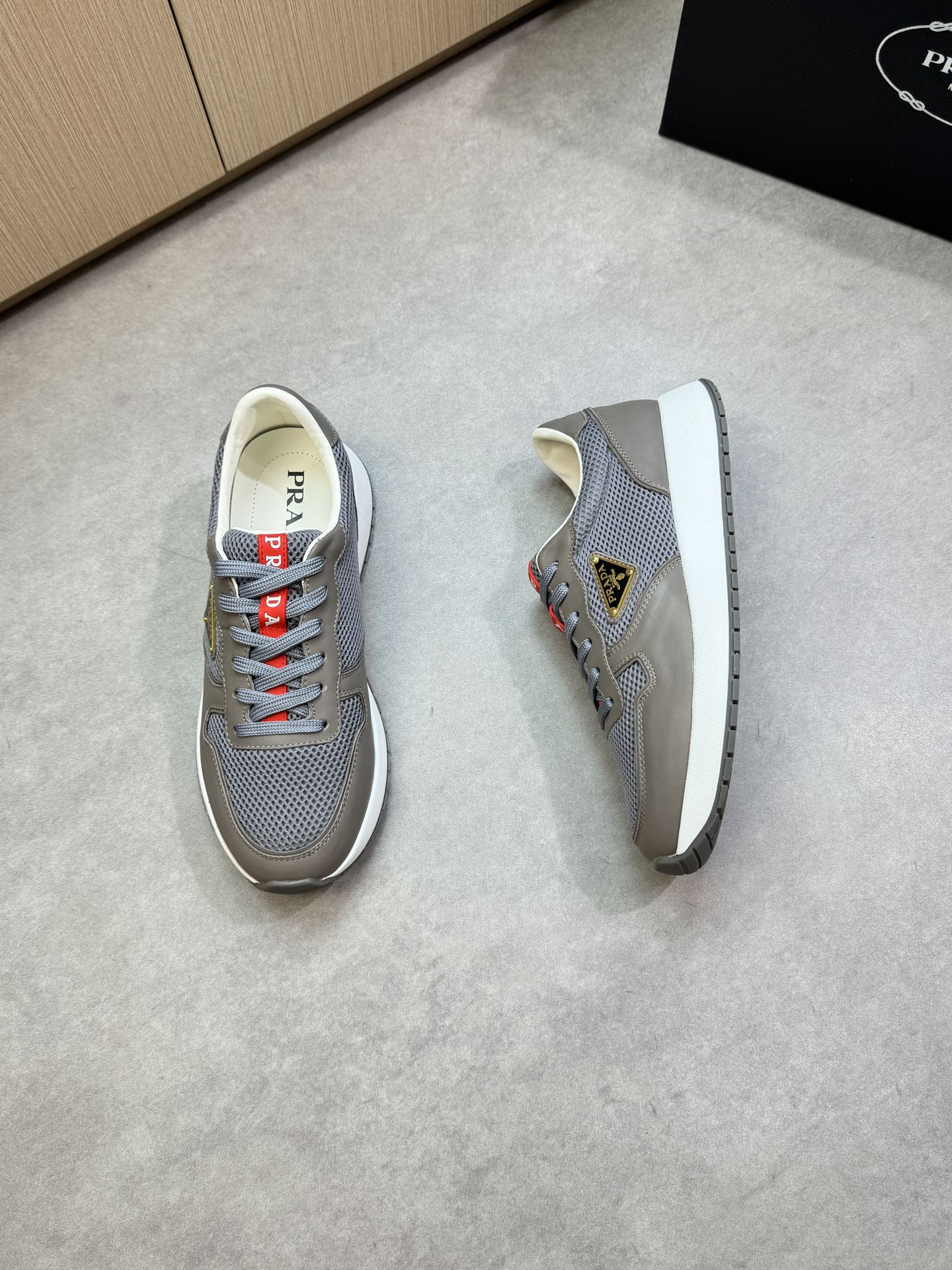 這款鞋子是AAAAA 1:1 質量(非常棒). 使用了和原版一模一樣的材料. 商標部分也保持了和普拉達/Prada一樣. 圖片拍攝是實物鞋子拍攝, 您所收到的實物保證和我們圖片一模一樣.